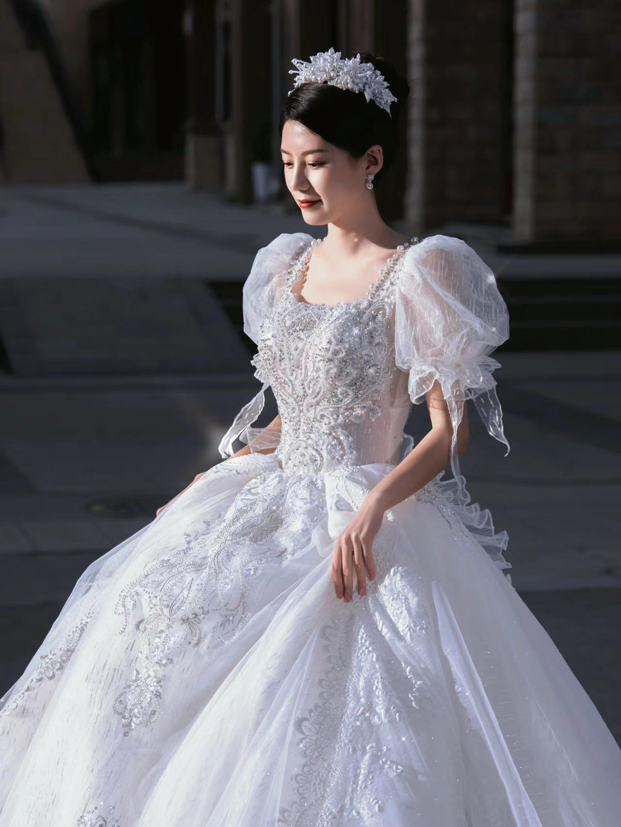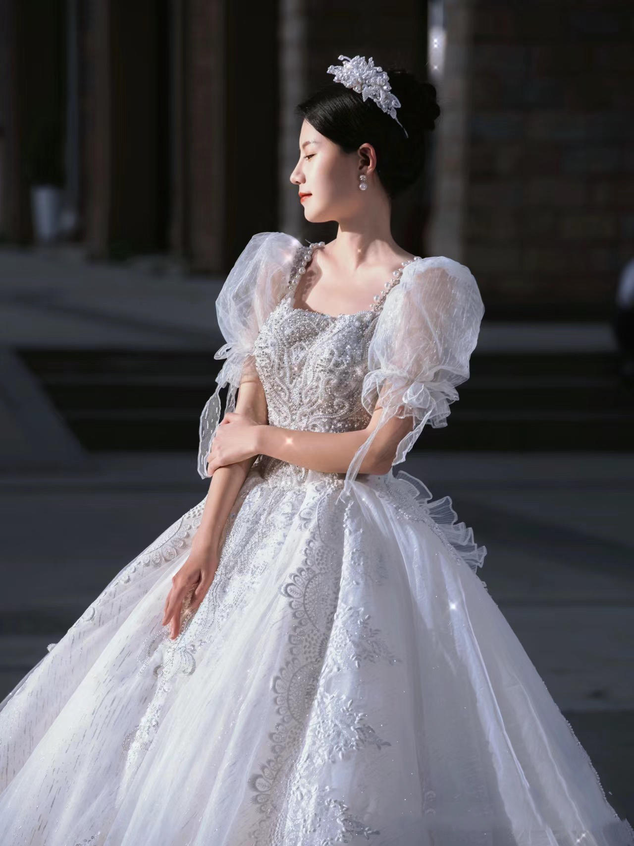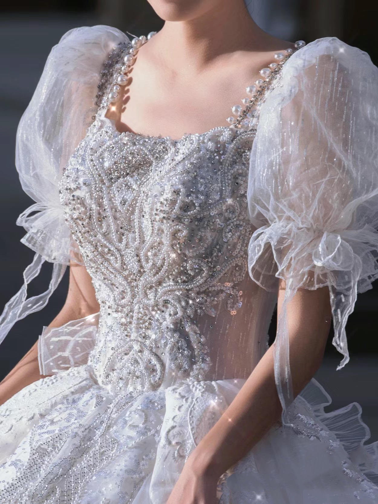 《艺境婚纱》公主袖方领超大拖主纱
