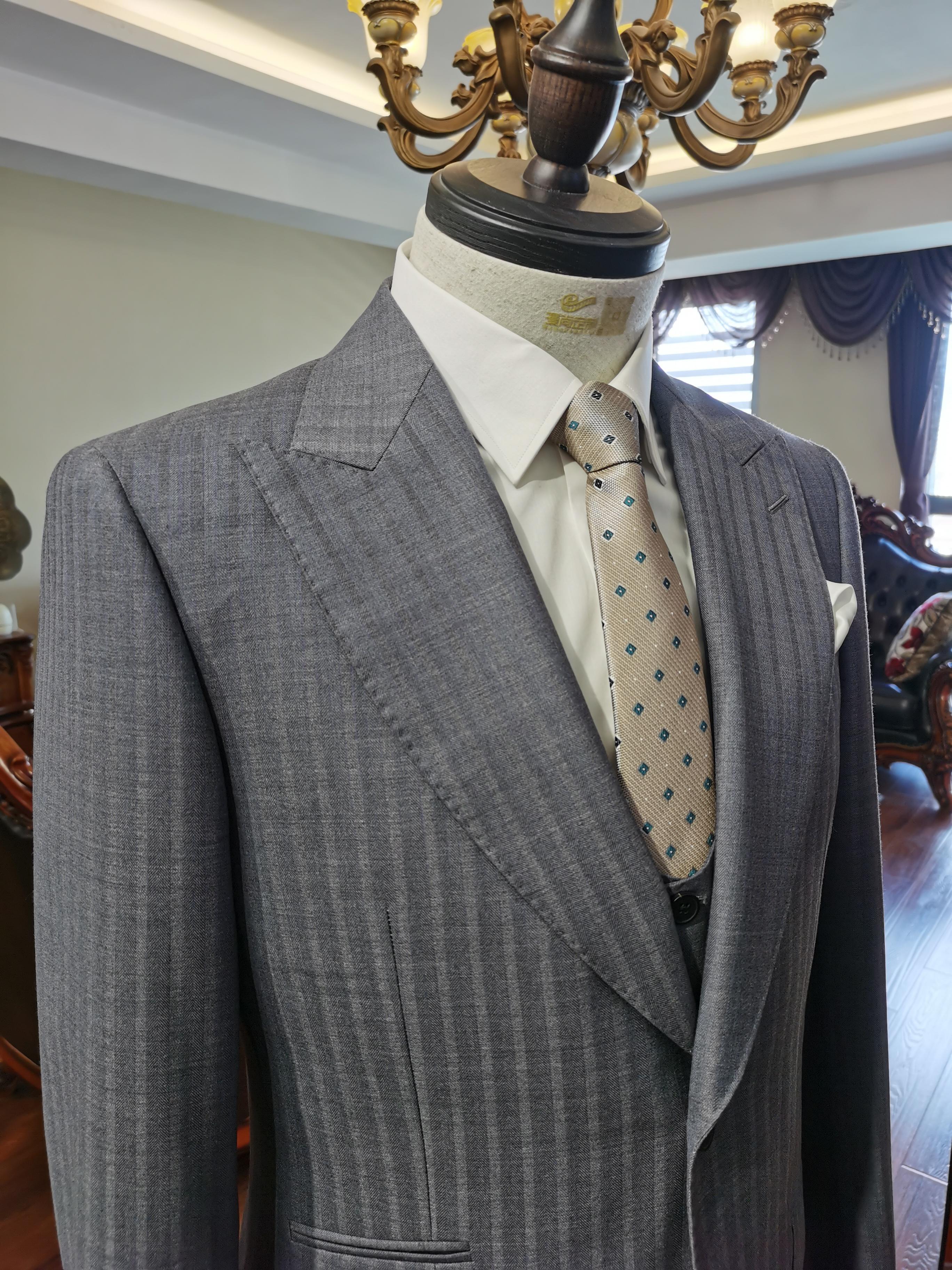 新品深蓝色条纹套西