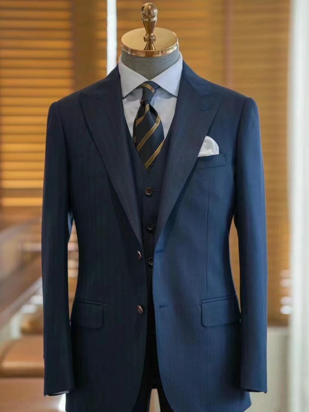 蓝色经典暗条纹西装