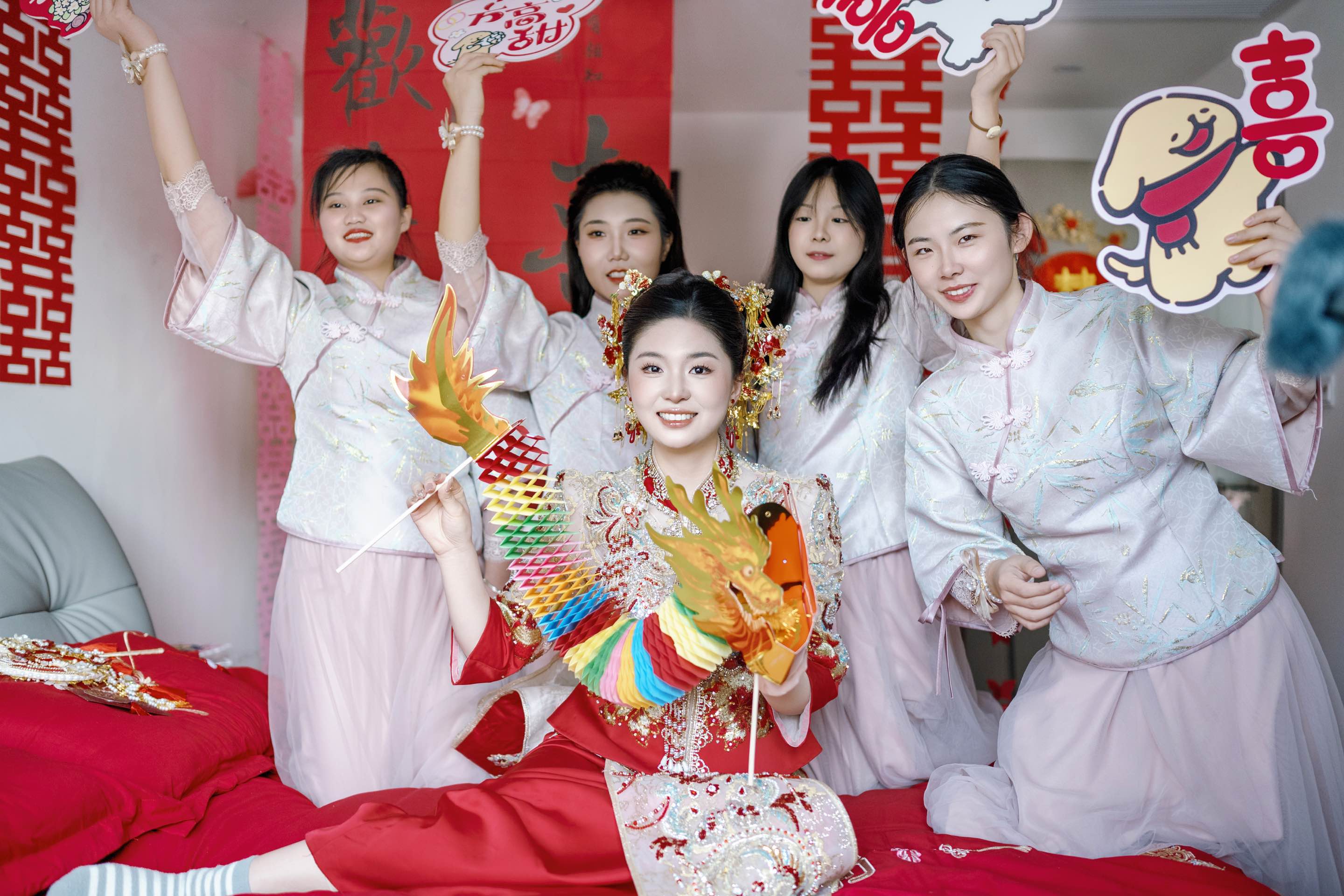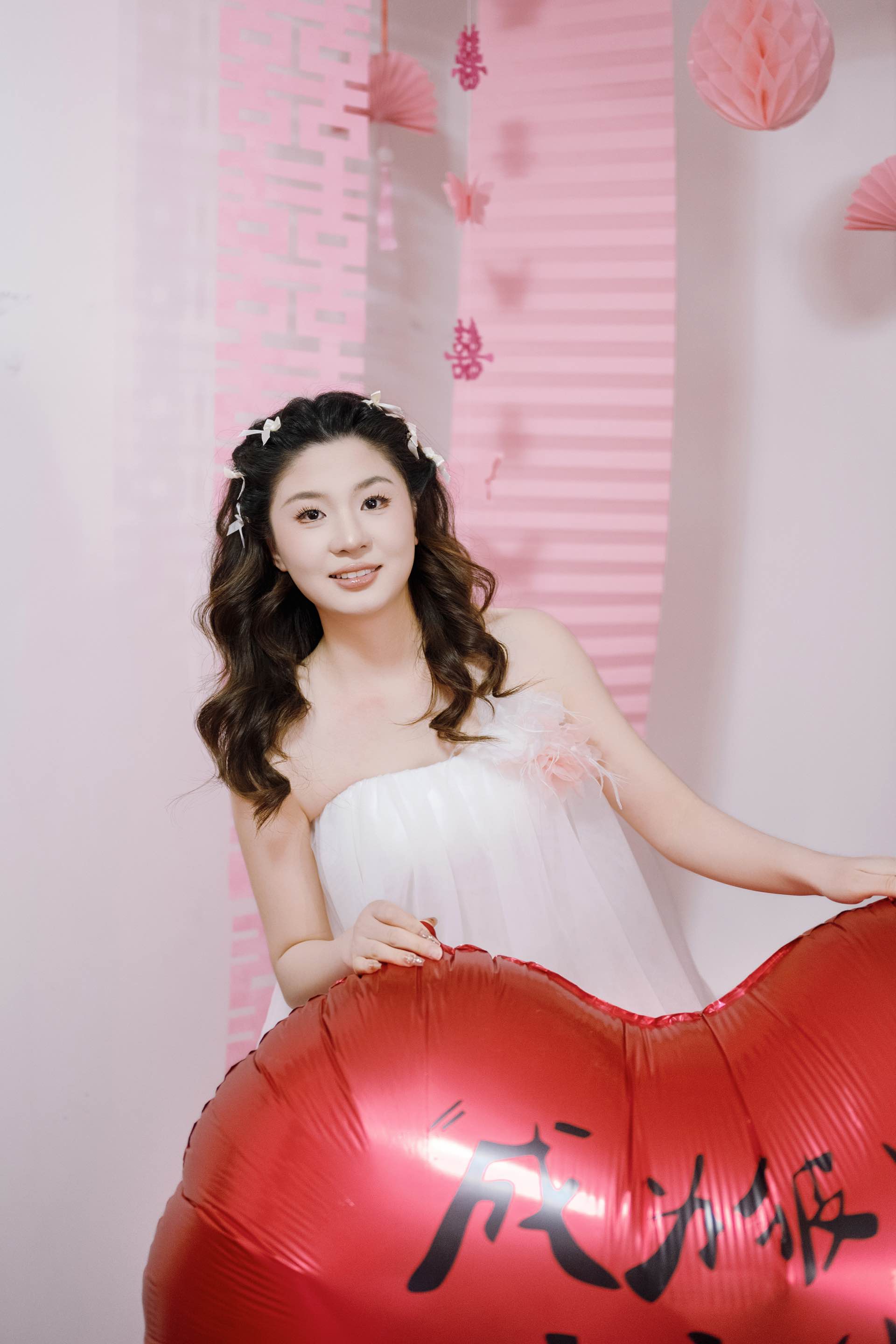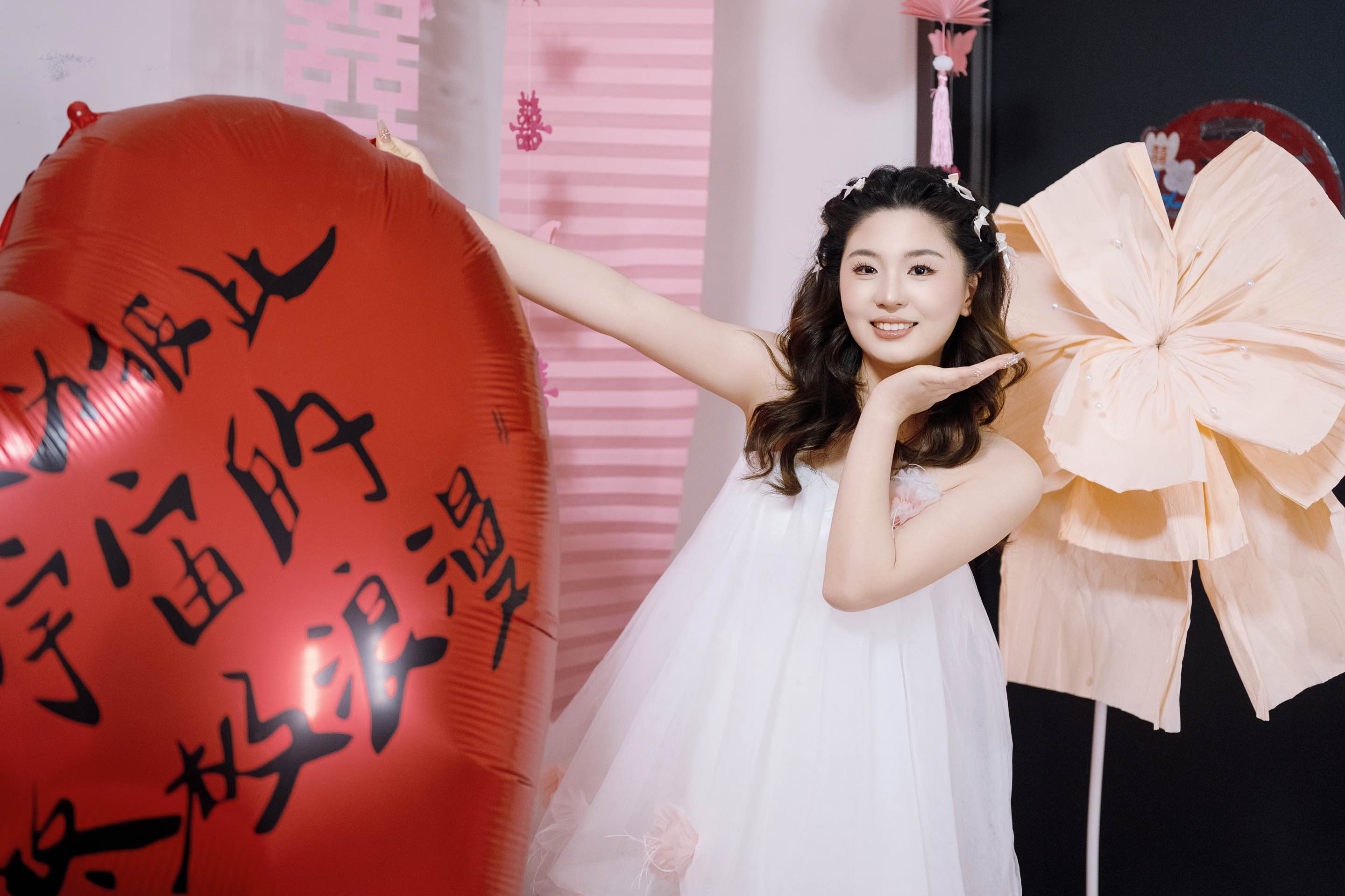 粉色喜字旁,是心动的裙摆/麓白婚礼跟拍