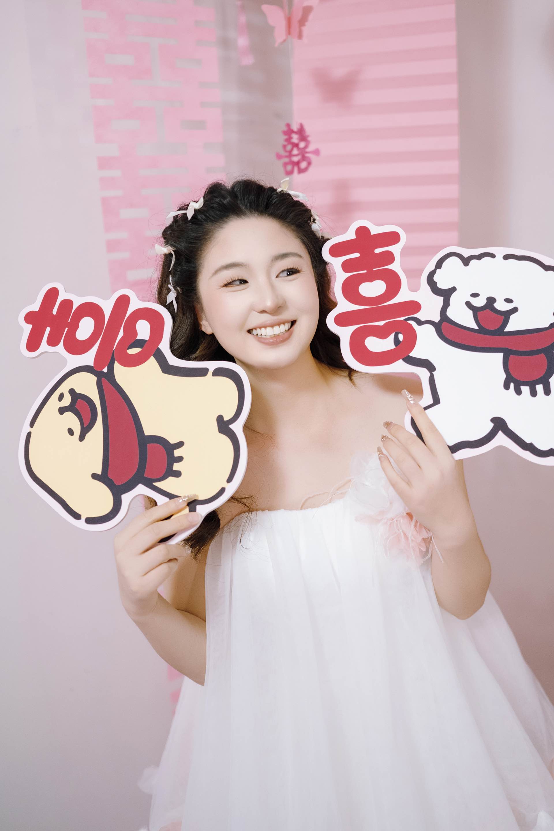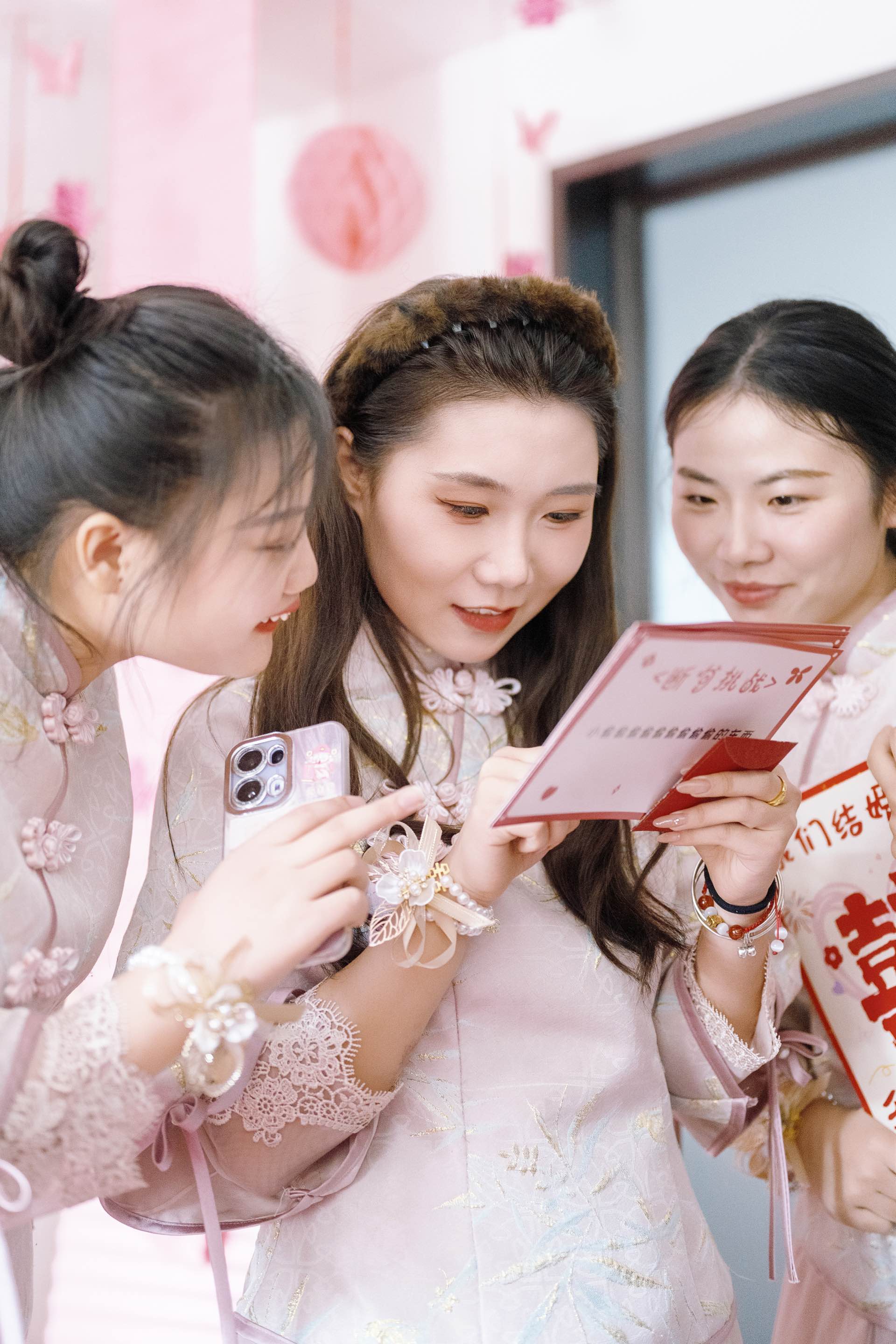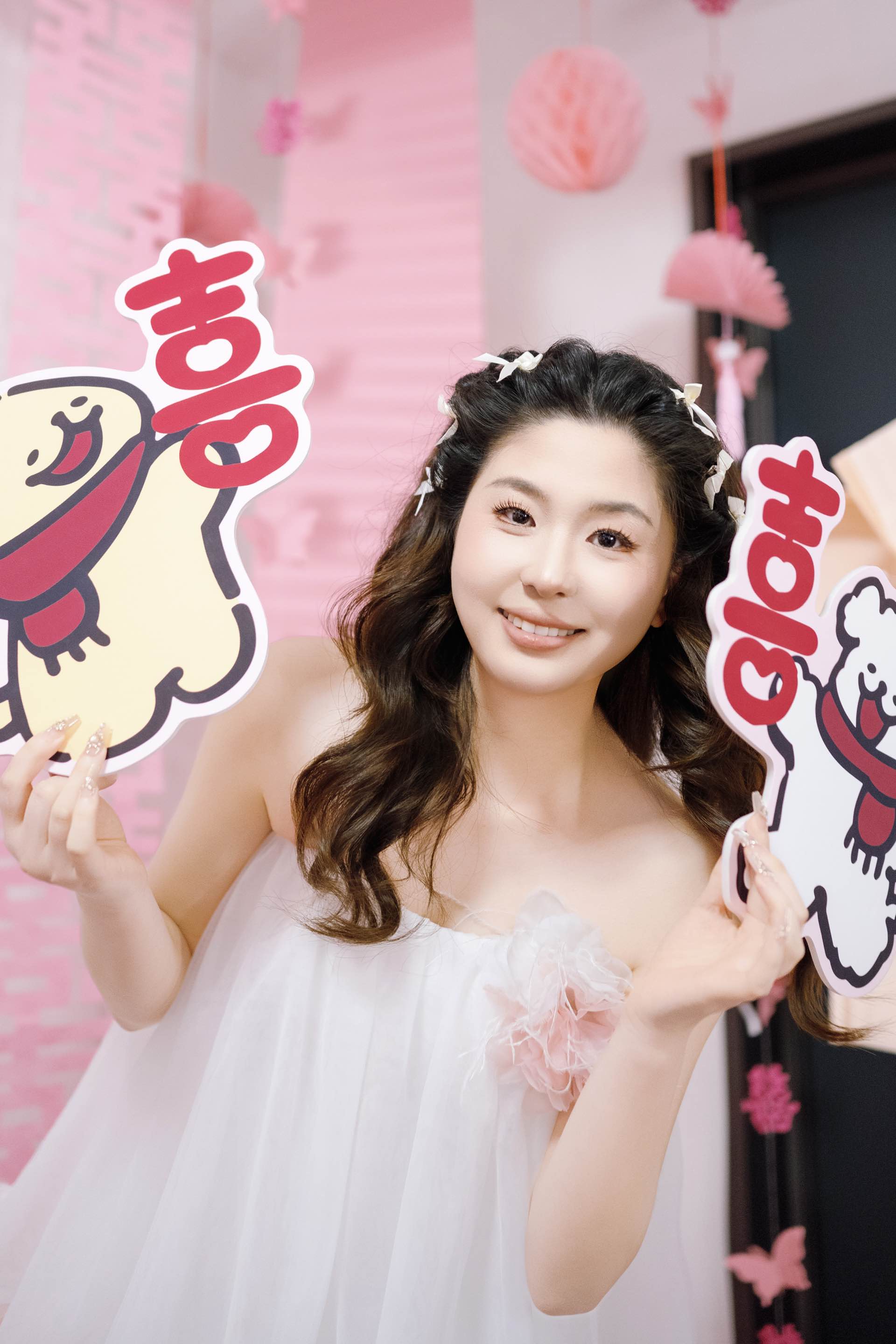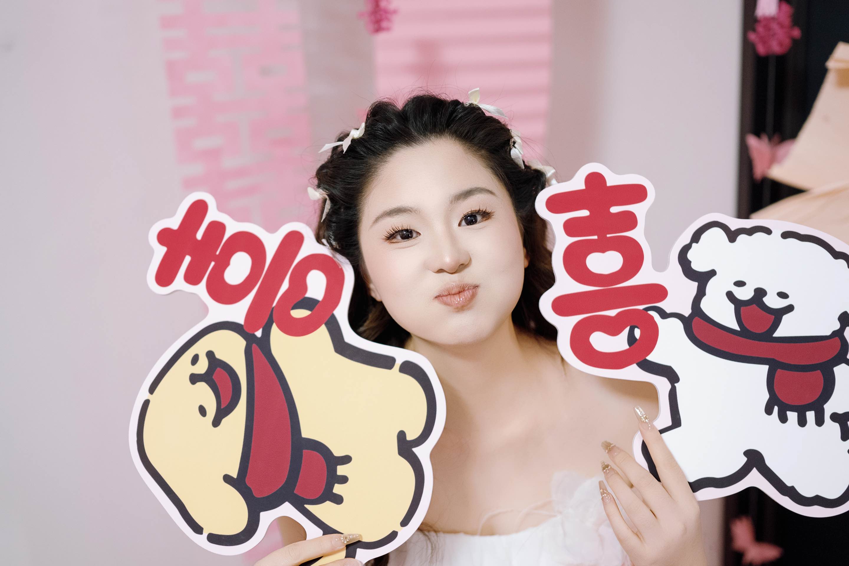 粉色喜字旁,是心动的裙摆/麓白婚礼跟拍