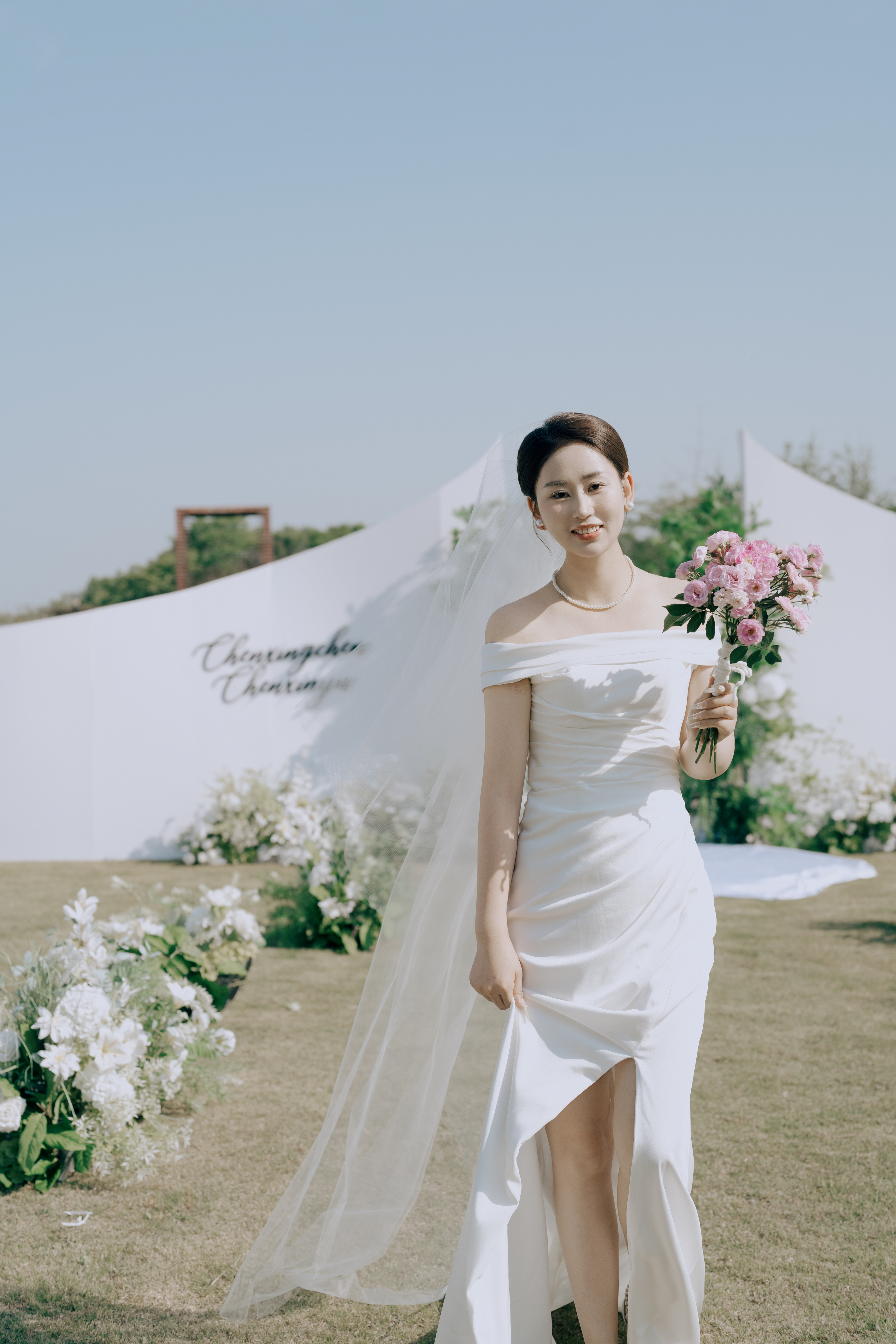 草坪风裹甜,白纱与西装的心动同频/麓白