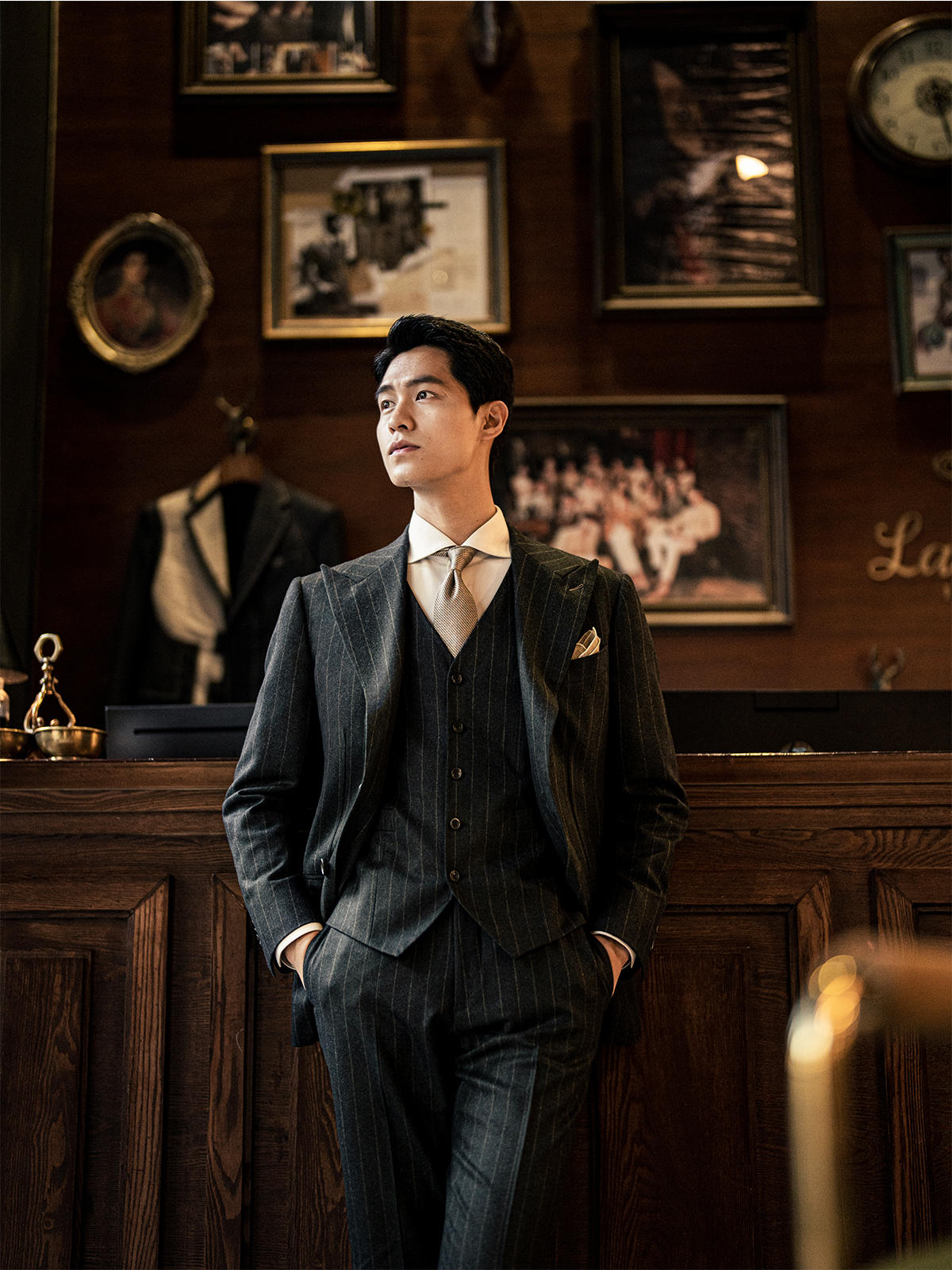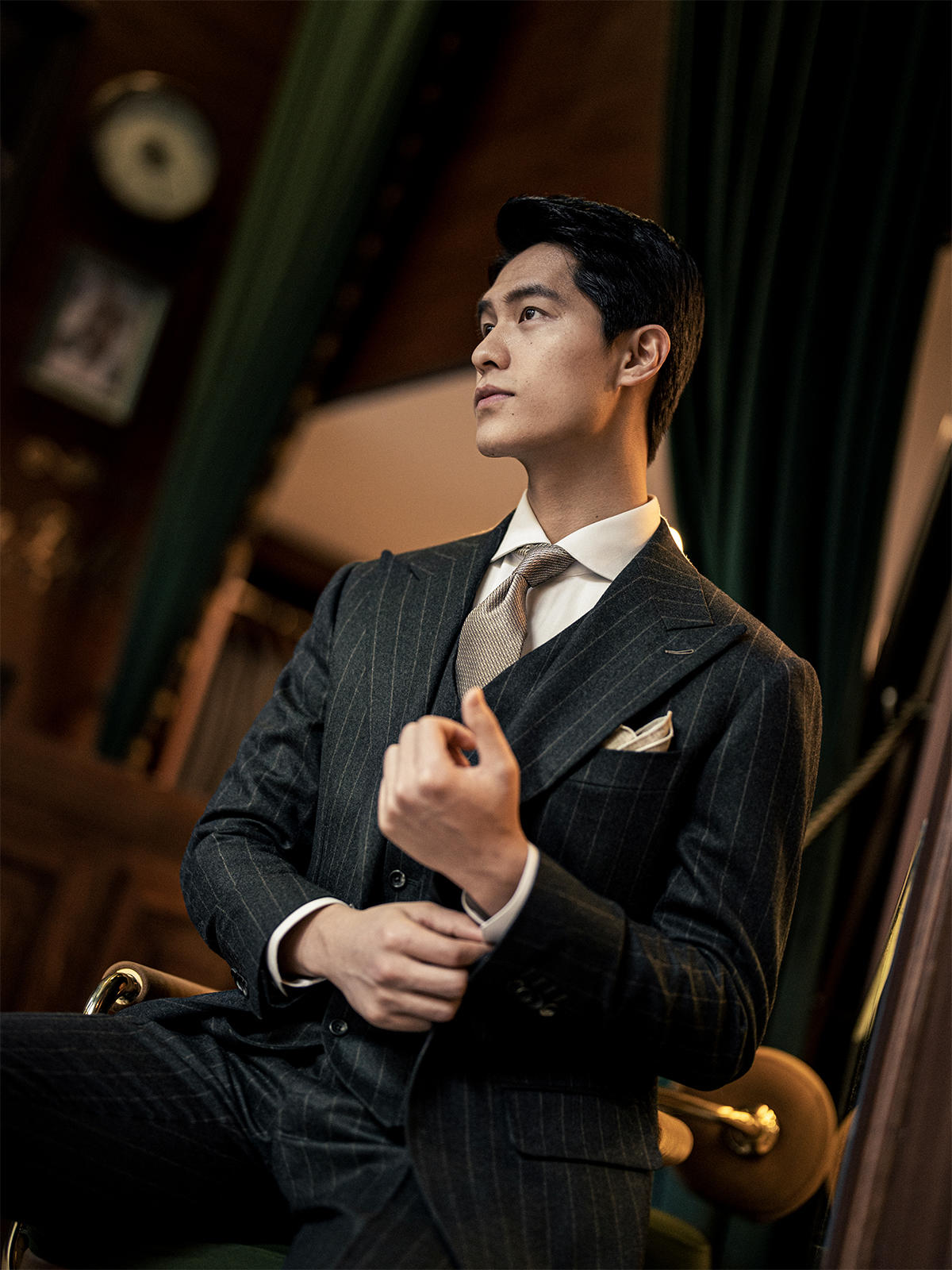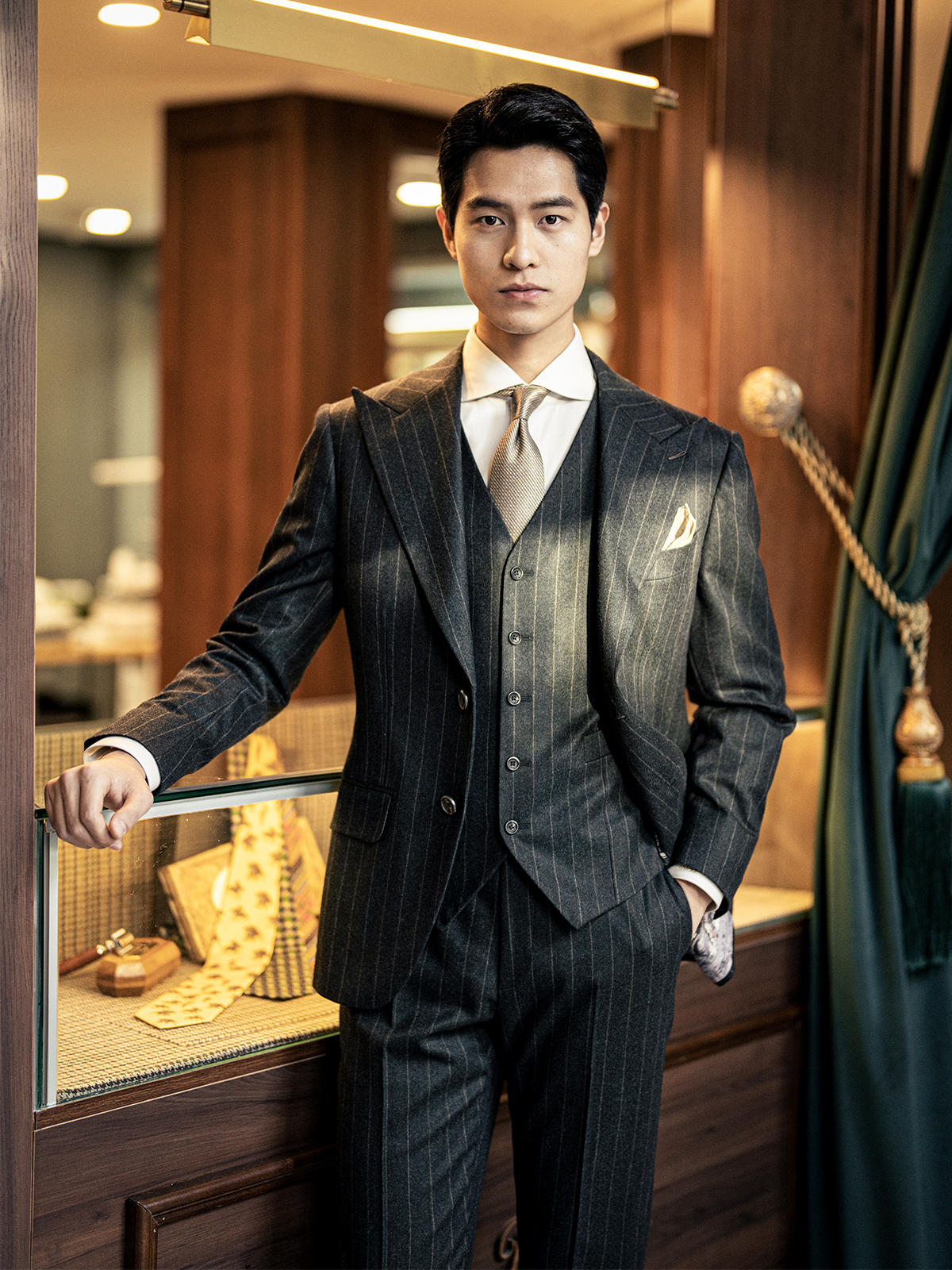 【定制西服】不撞衫的墨绿条纹西装