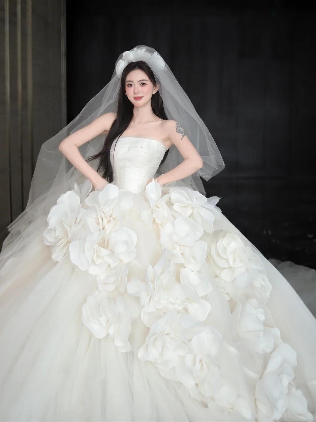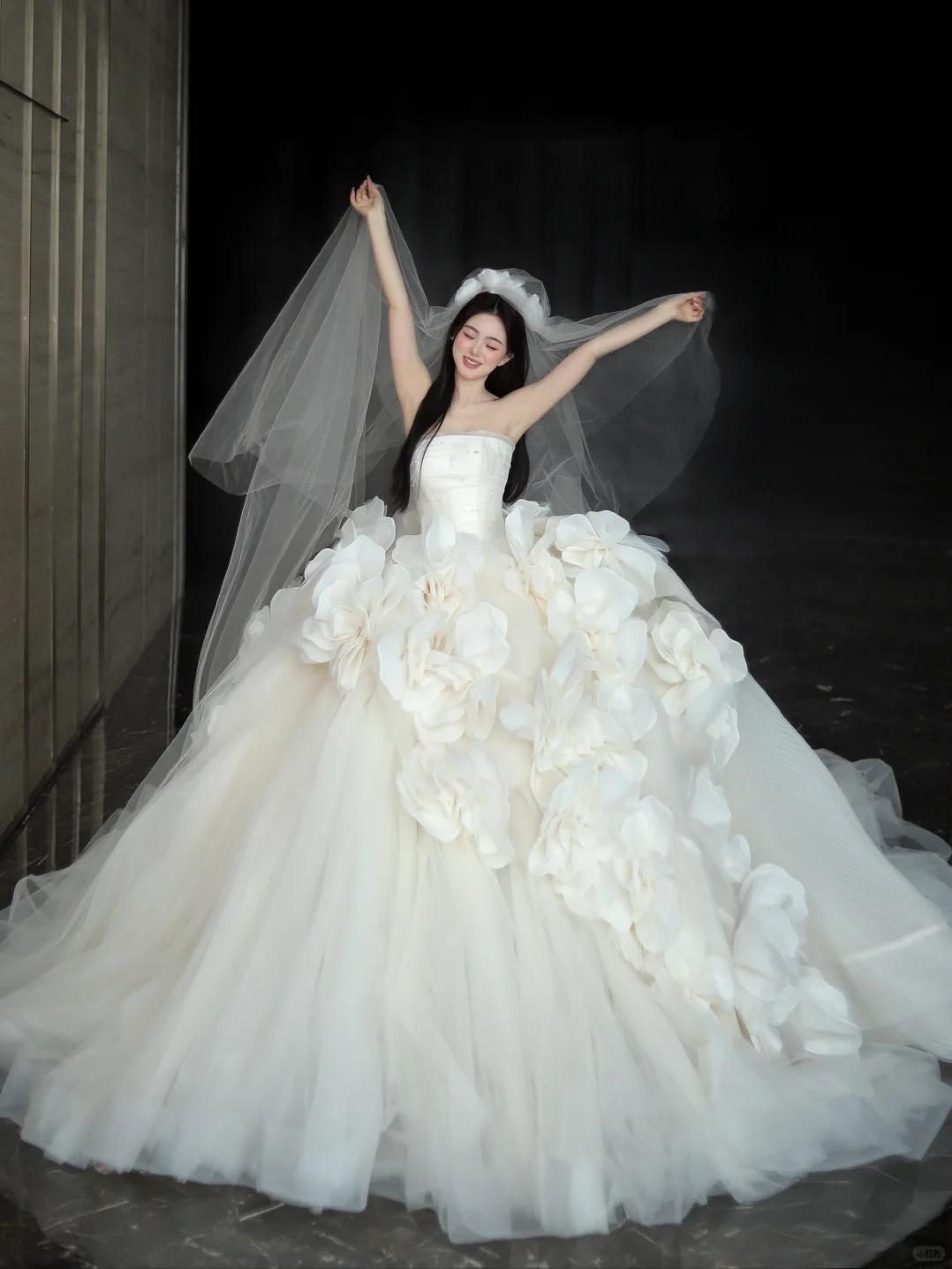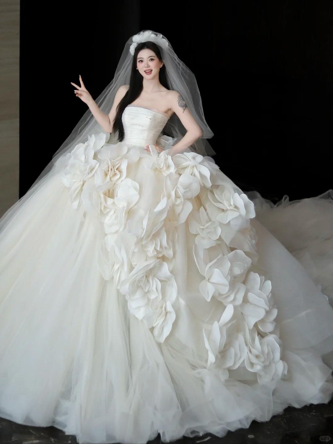 “花海”婚纱大拖尾主纱