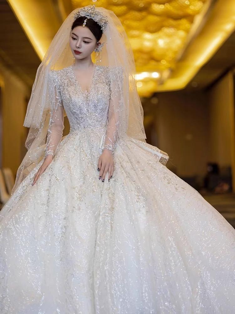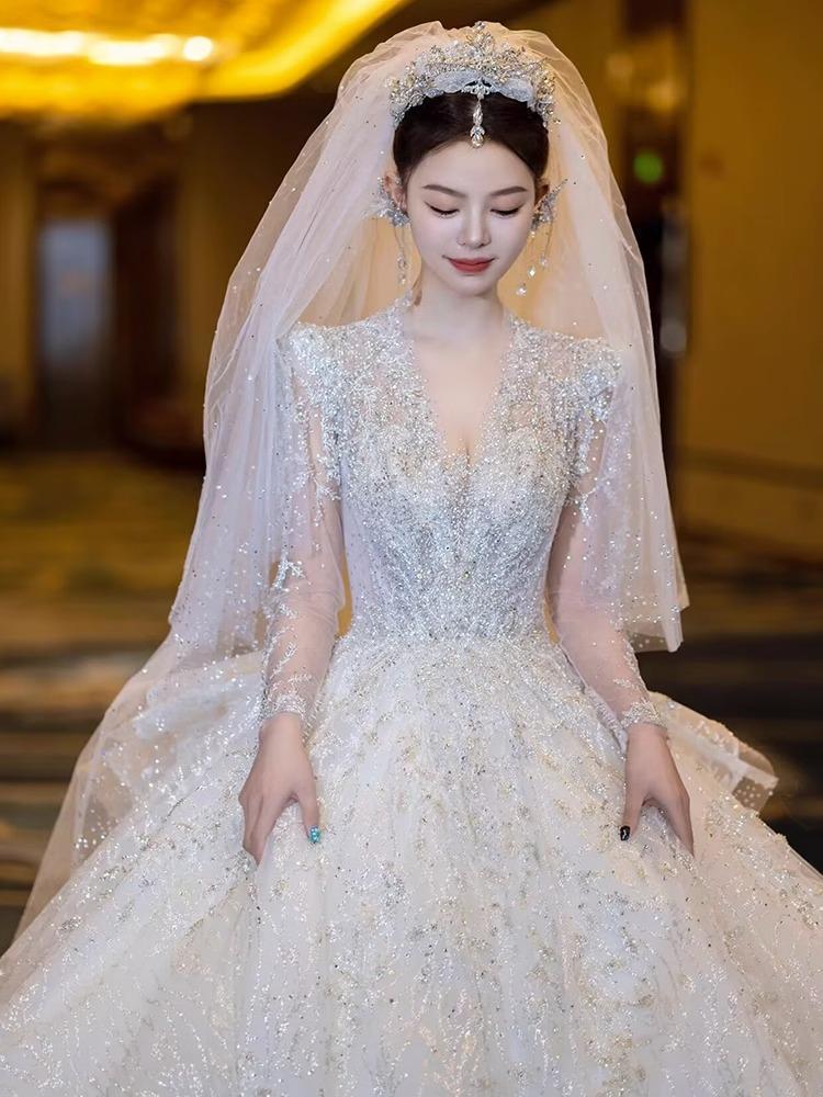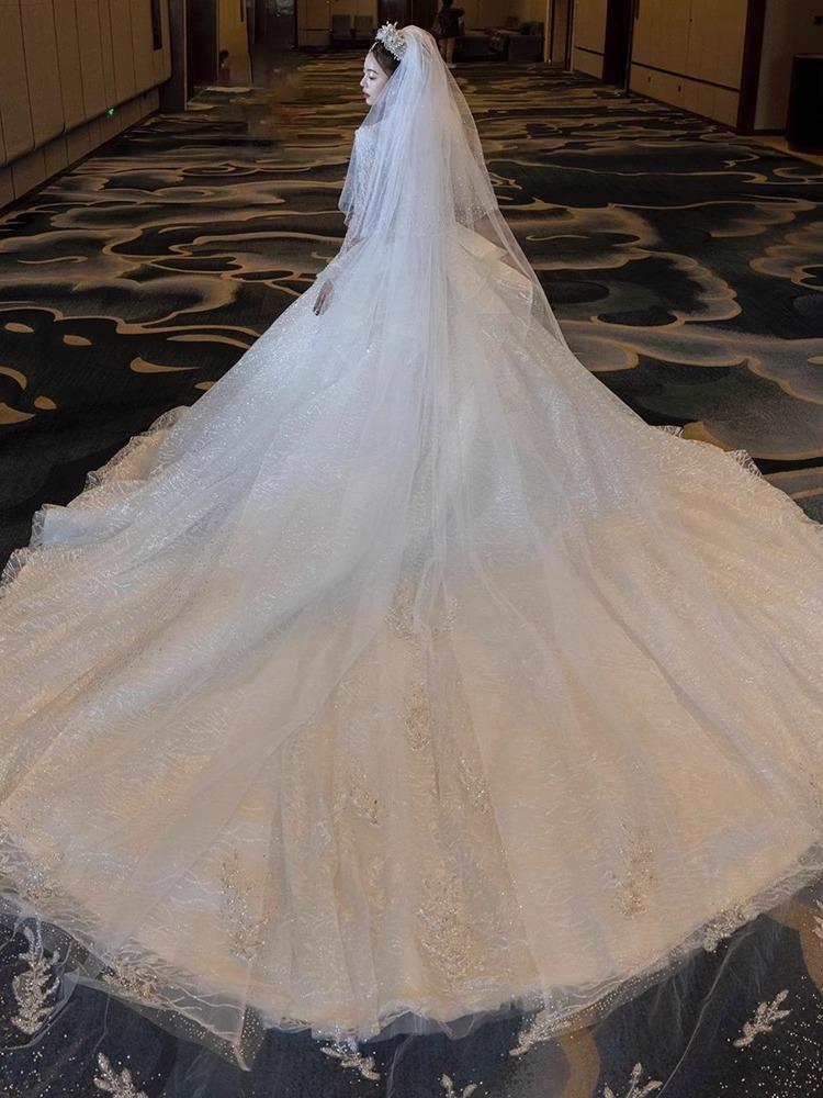 法式在逃公主新款皇后领高级拖尾