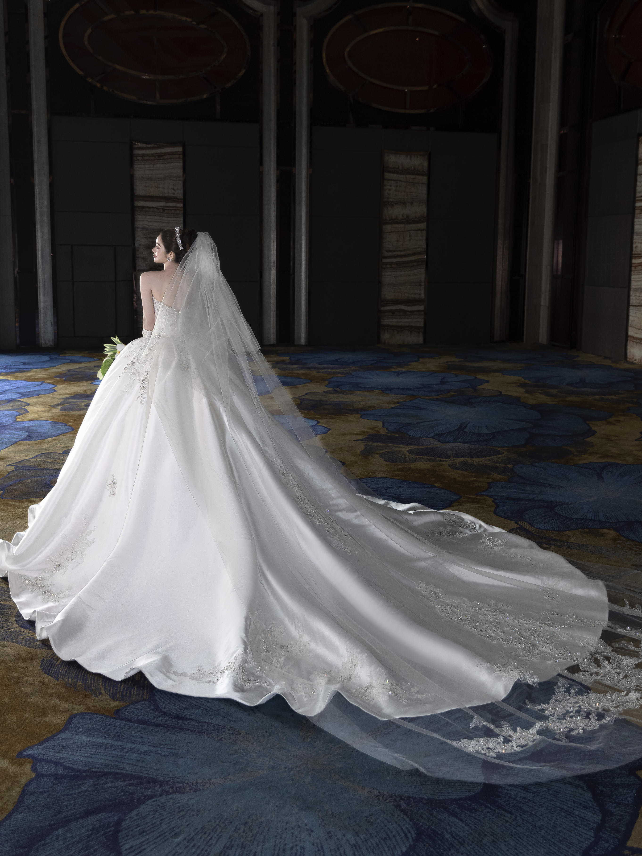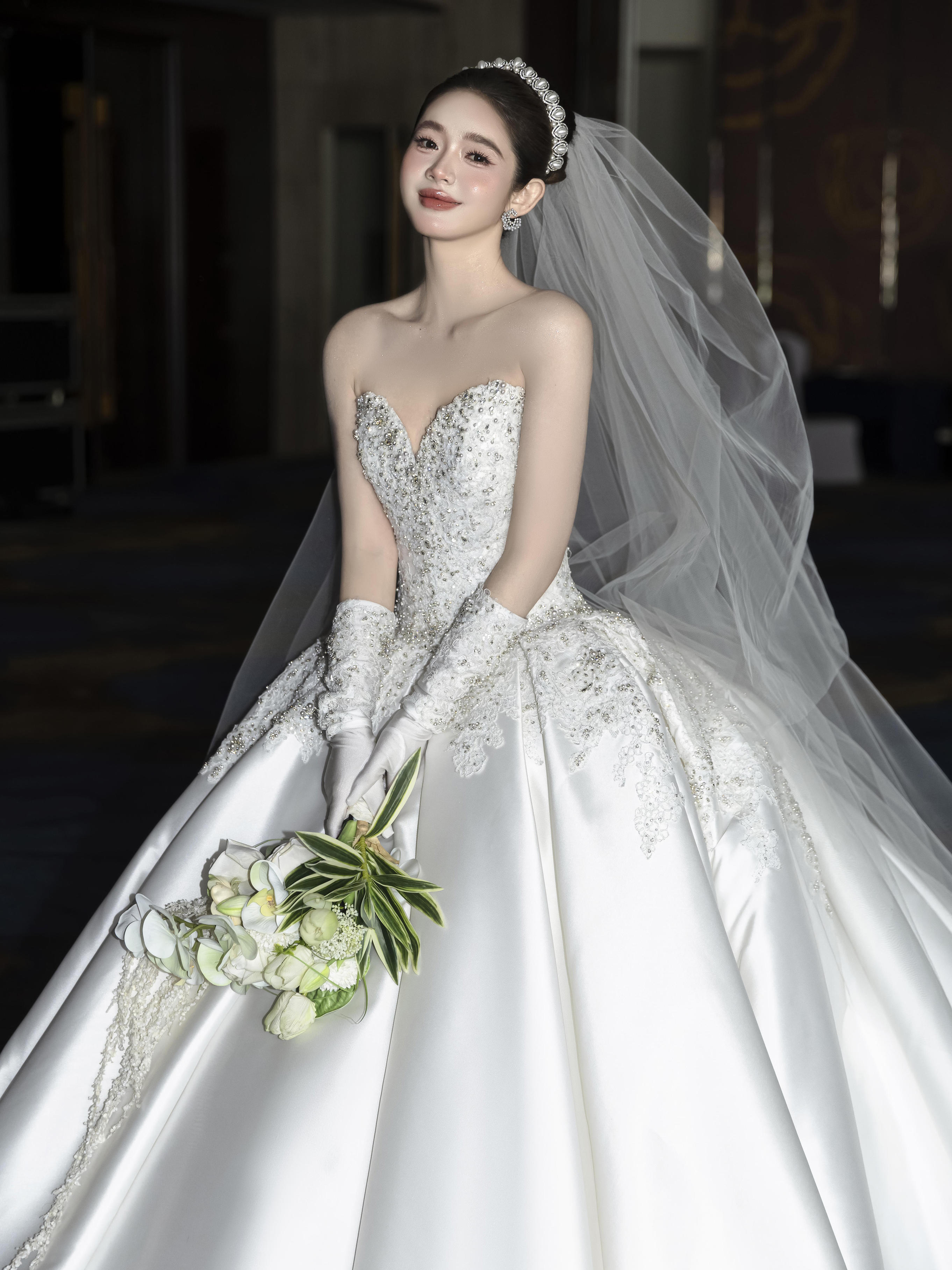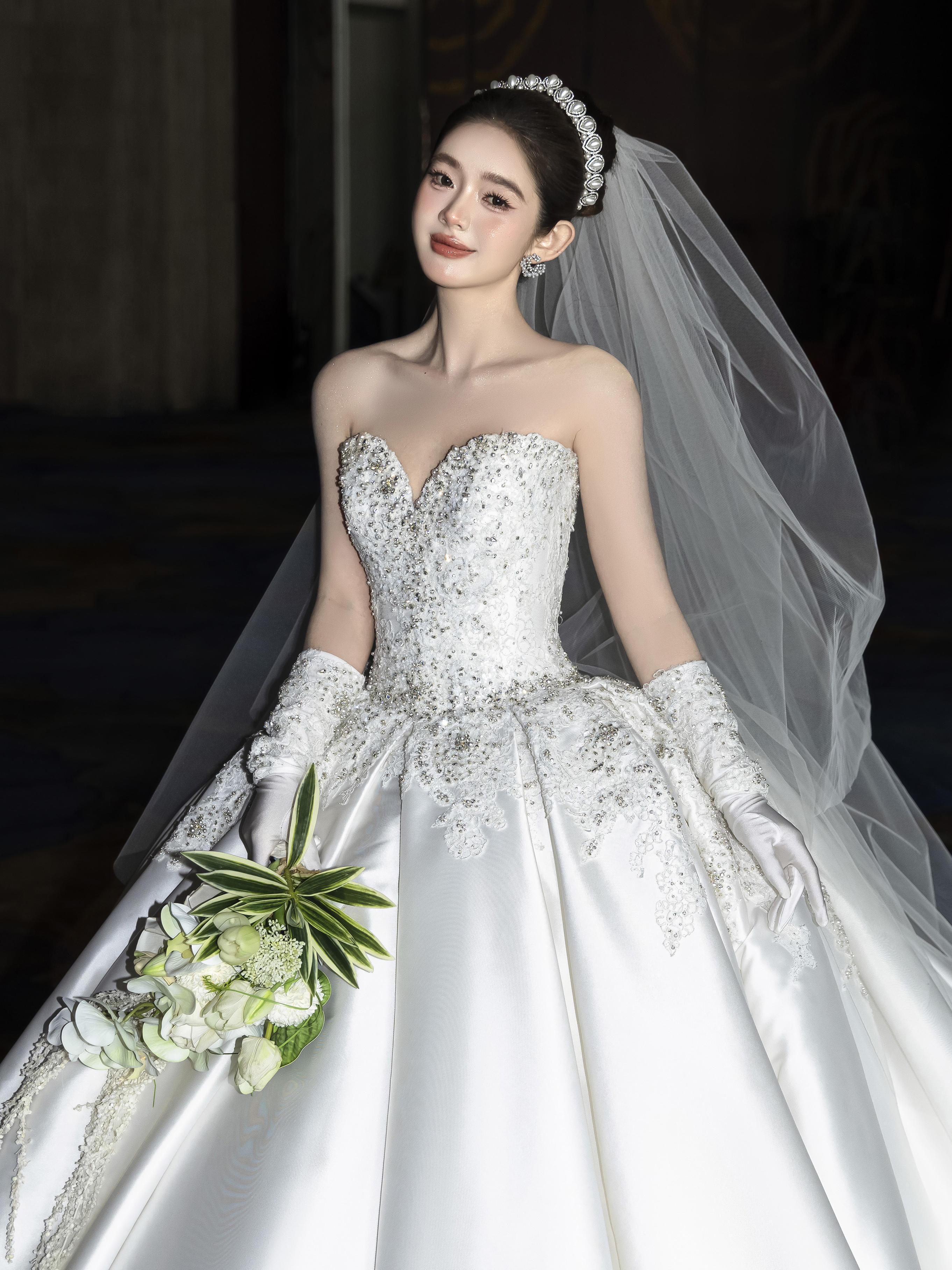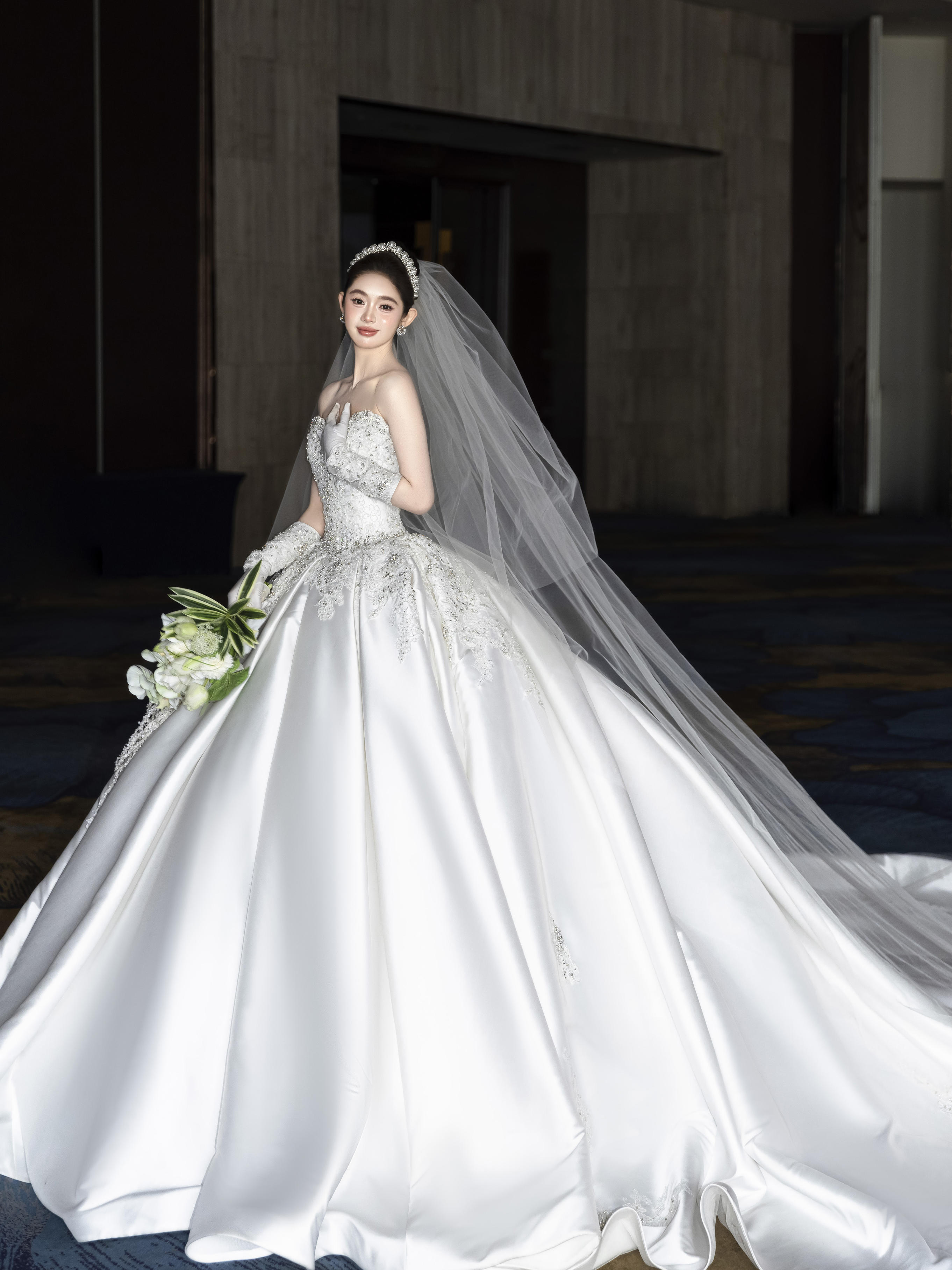 洁白如雪的缎面婚纱