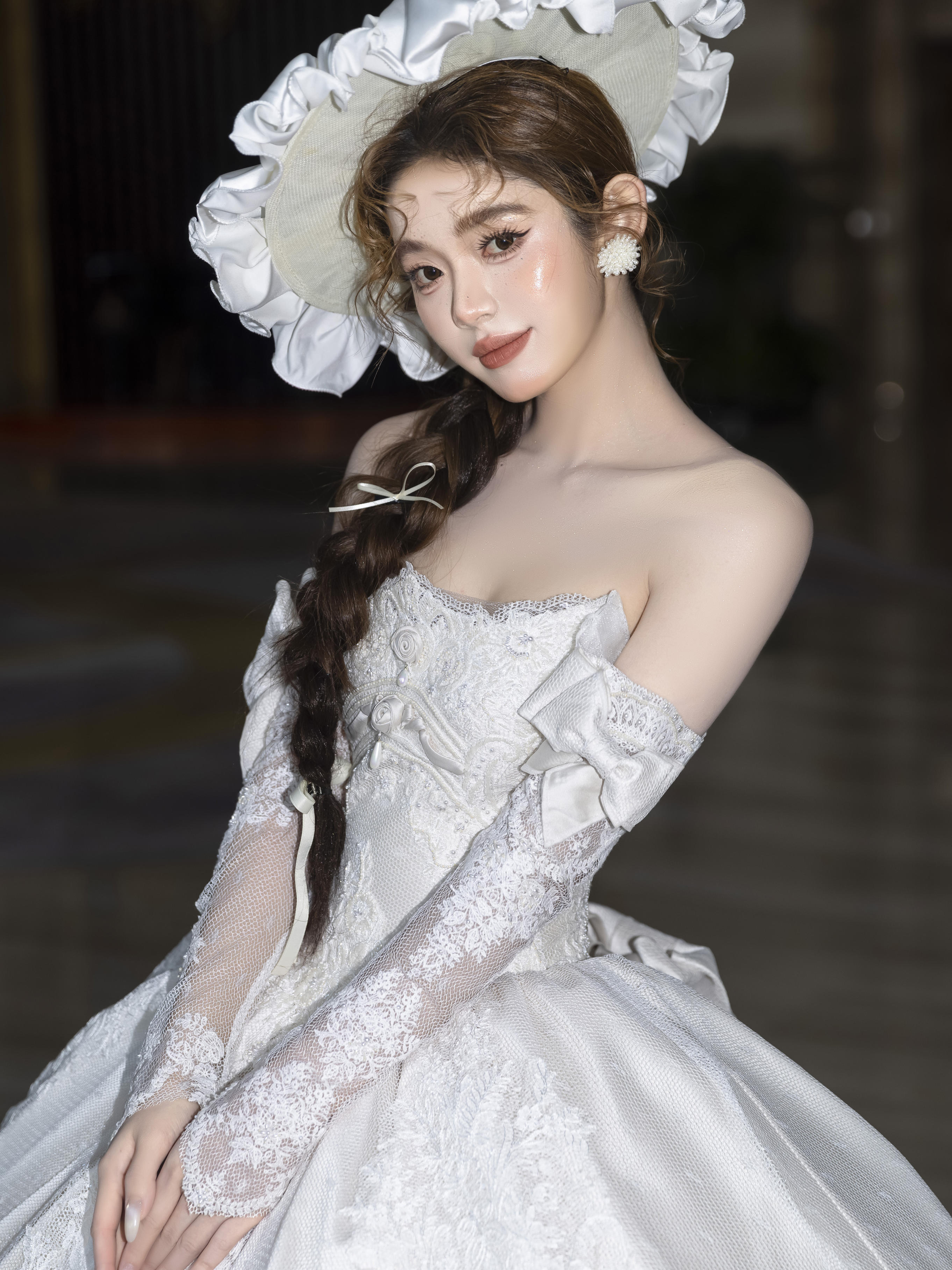 法式缎面蕾丝婚纱
