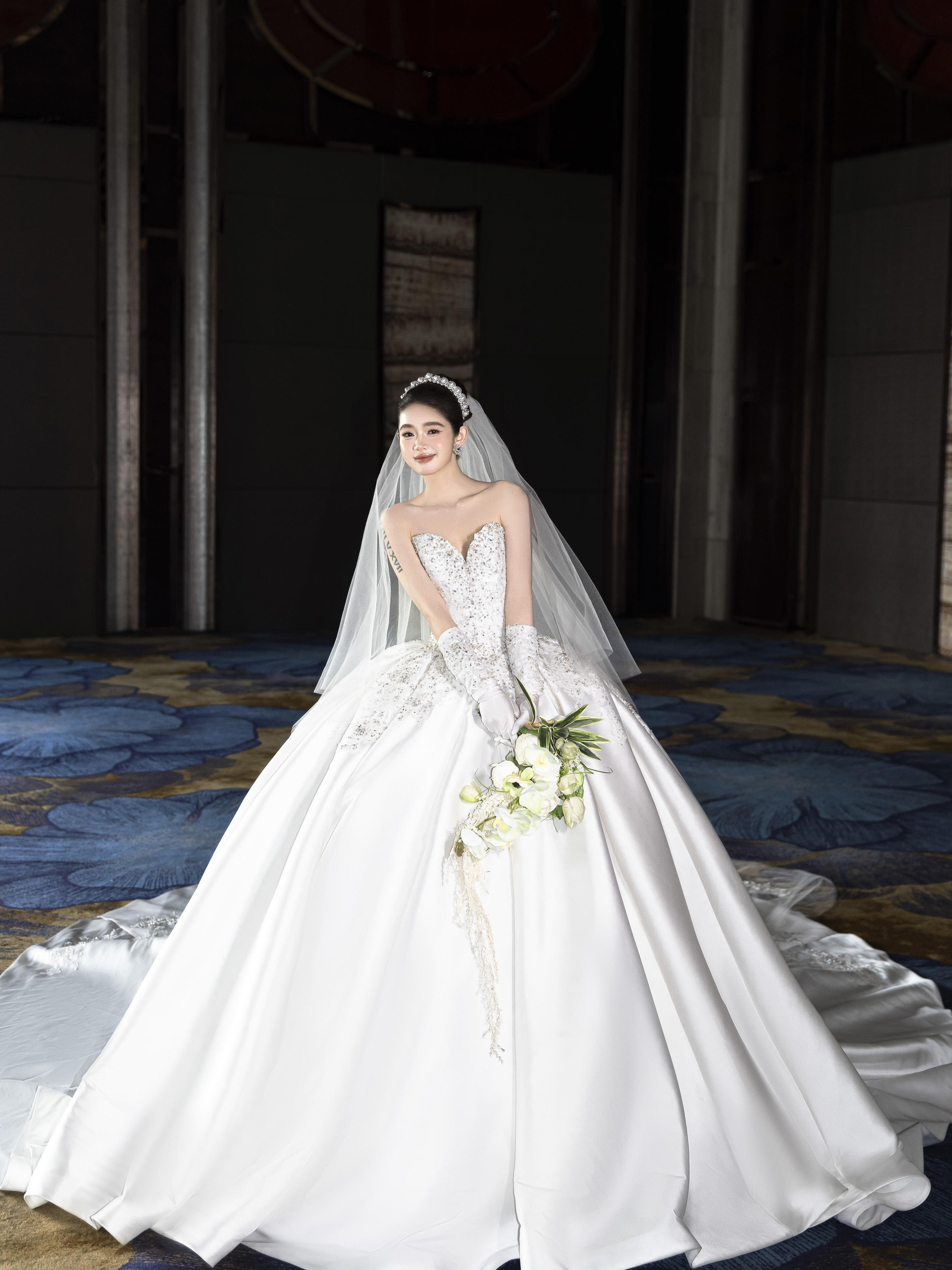 洁白如雪的缎面婚纱