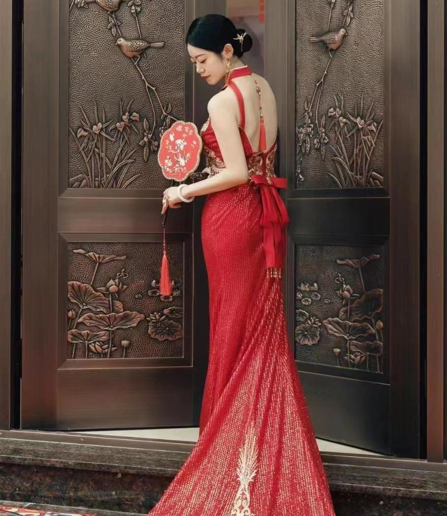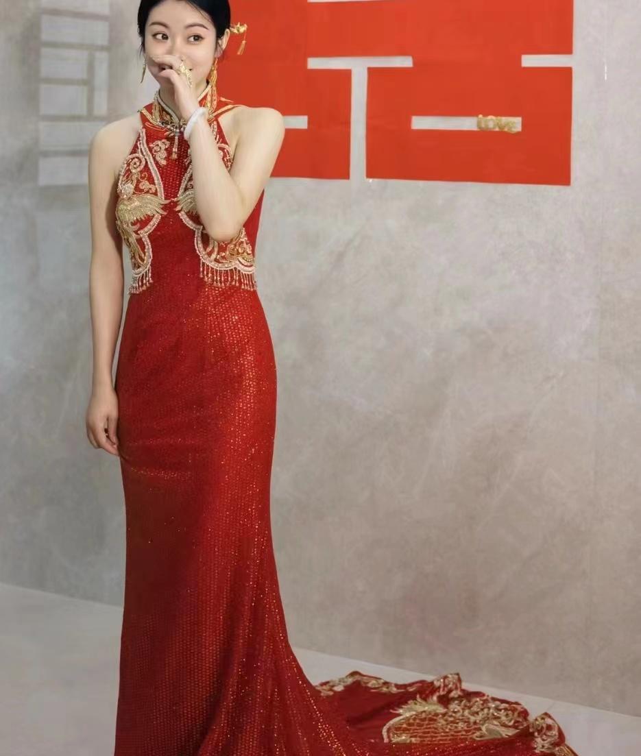 懿婚纱 红色亮片旗袍