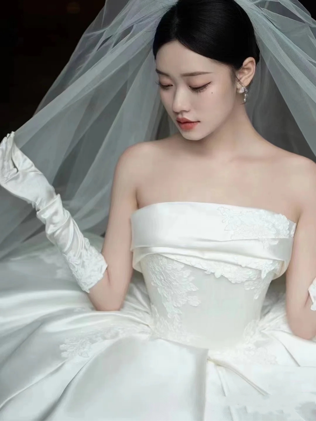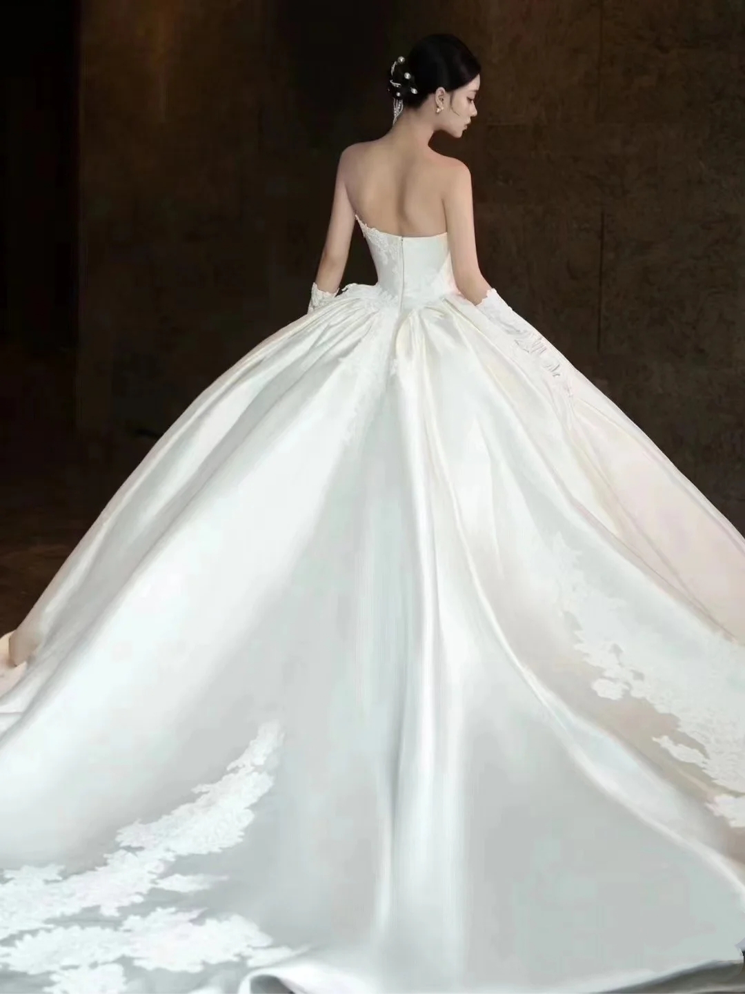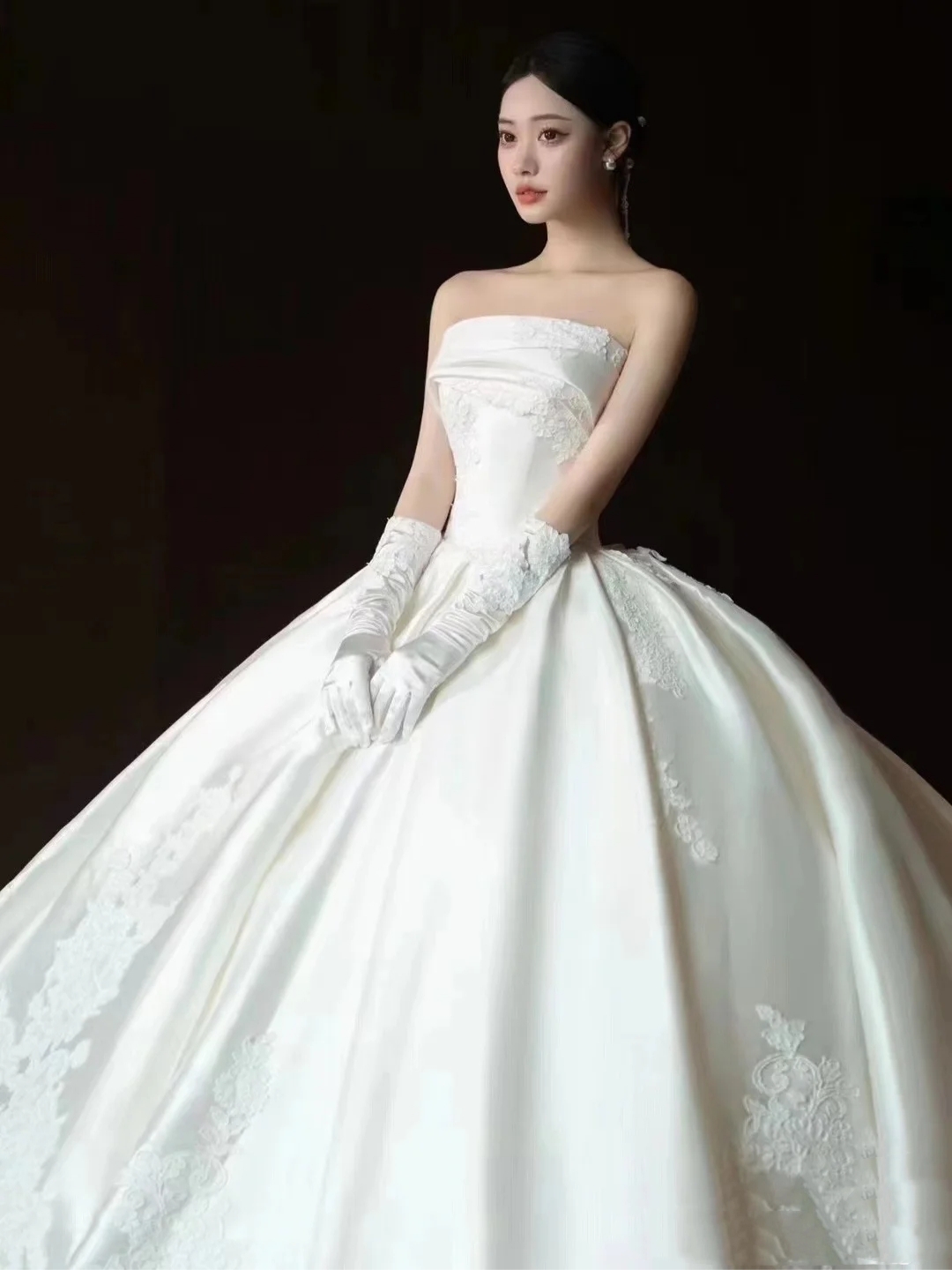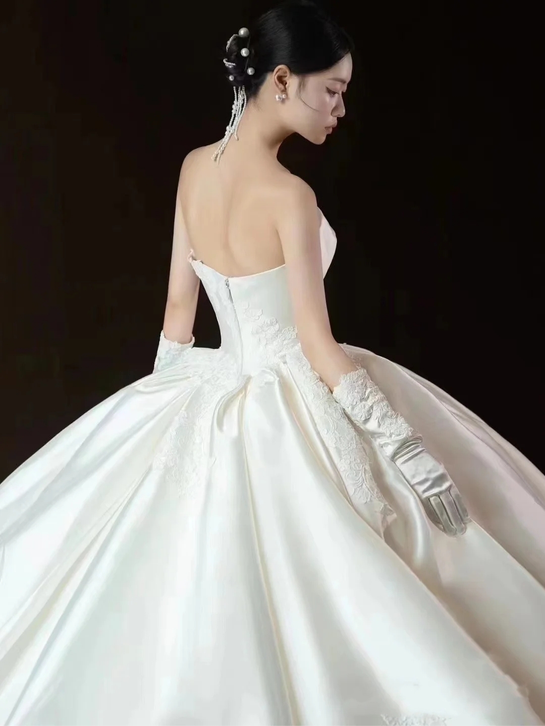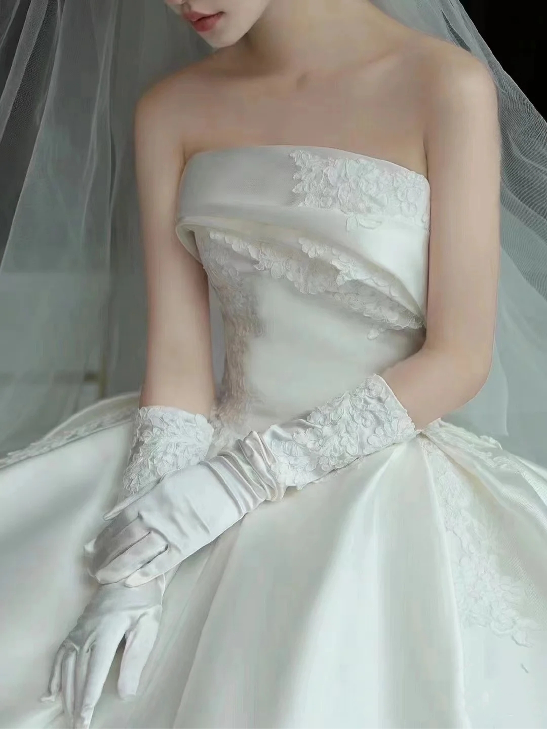 益阳婚纱,缎面抹胸
