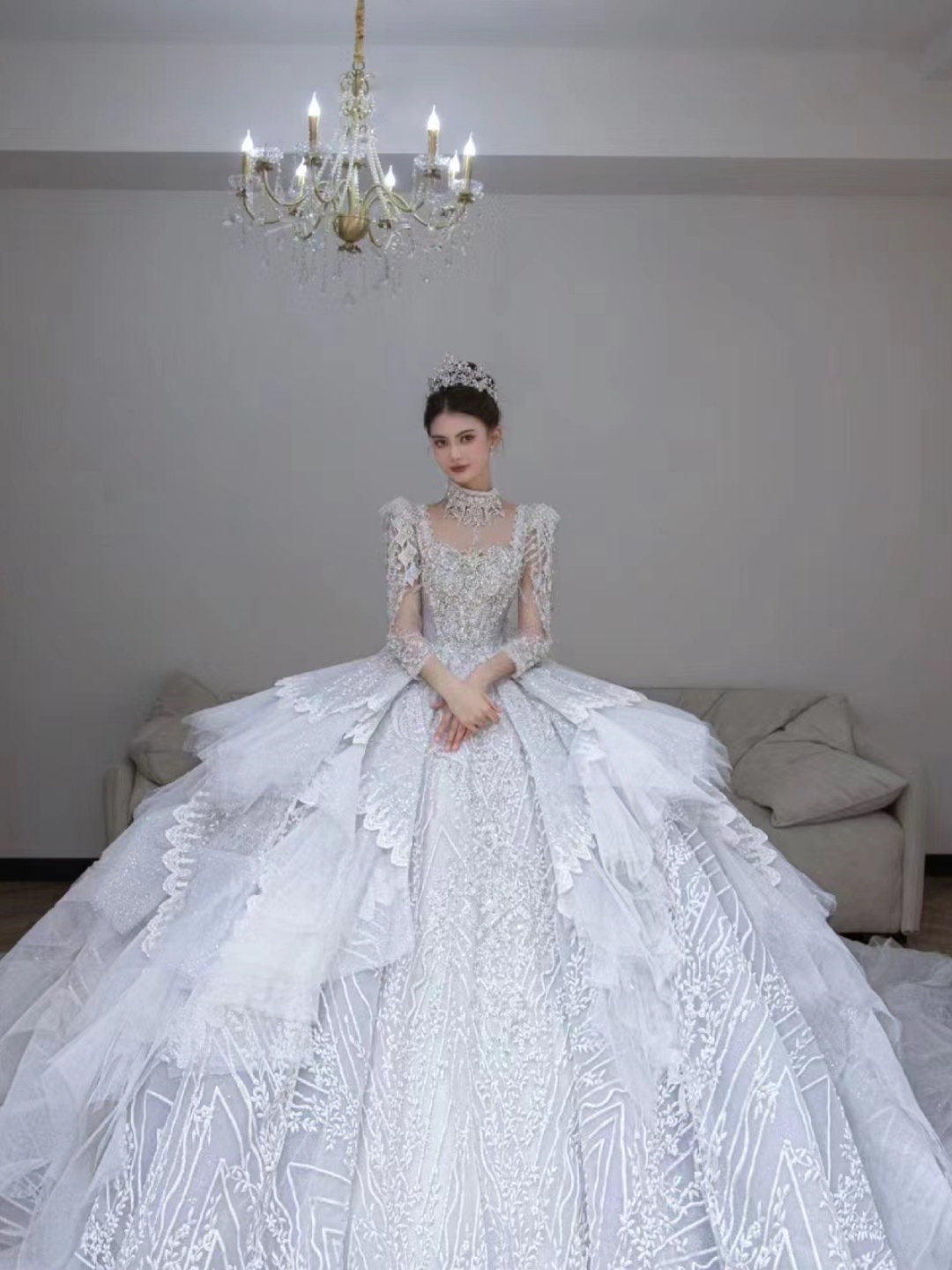 方领显瘦高定主纱