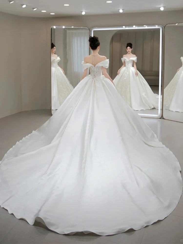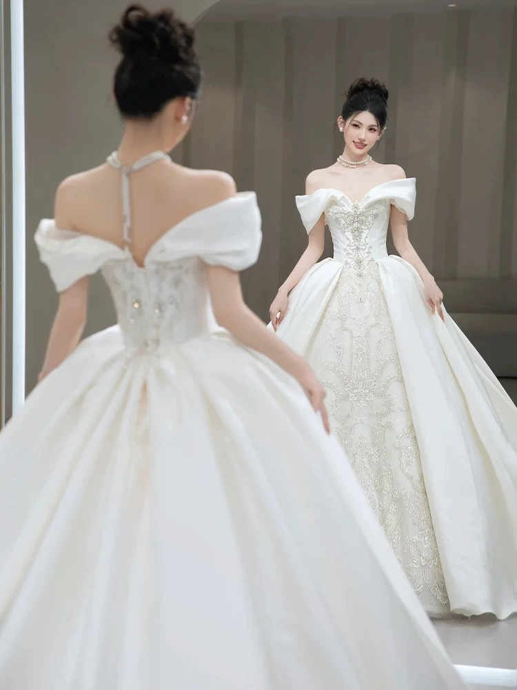 【艾慕】一字肩轻奢新娘主纱