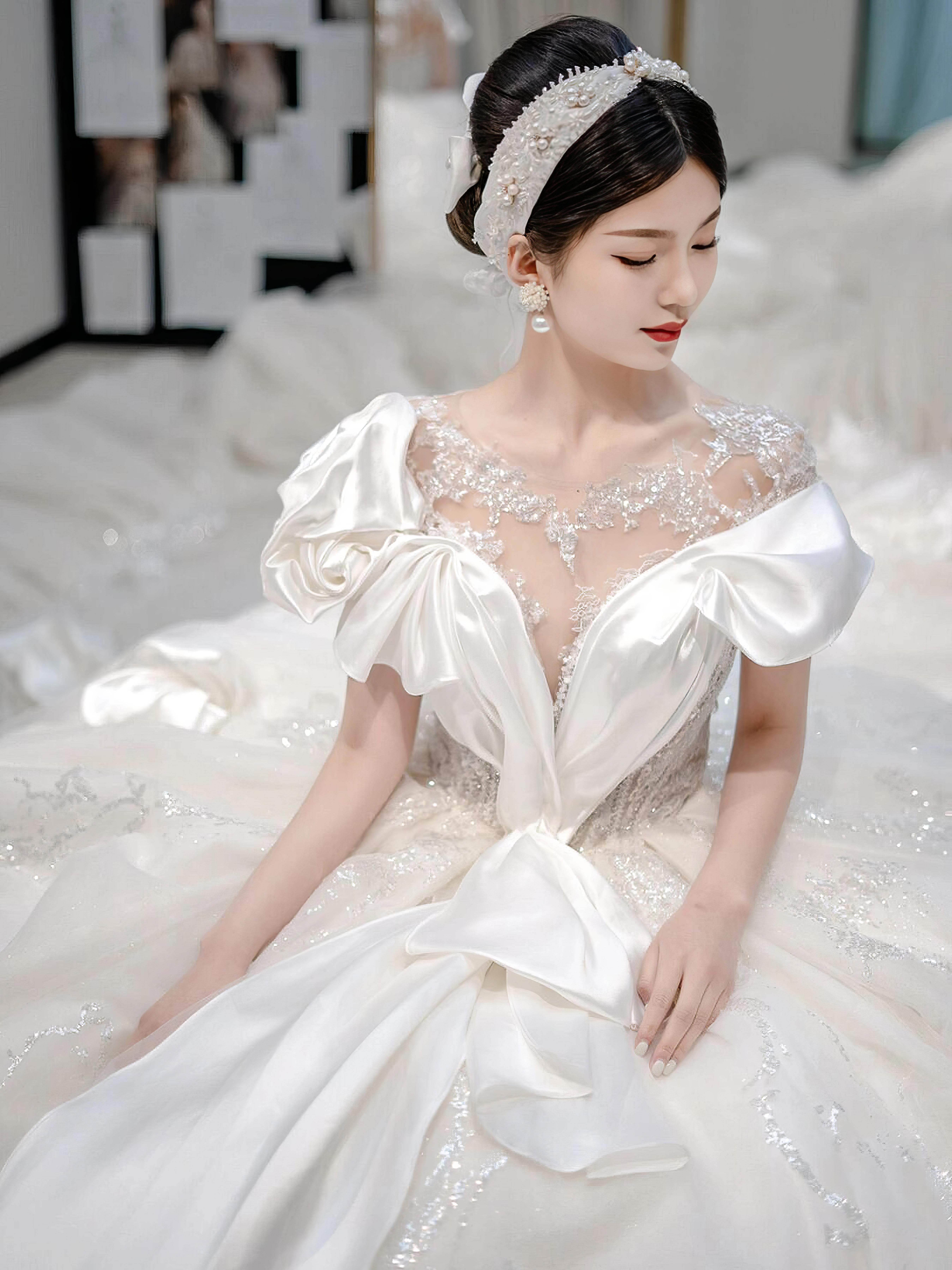 【喜尔婚礼】白色泡泡袖主纱