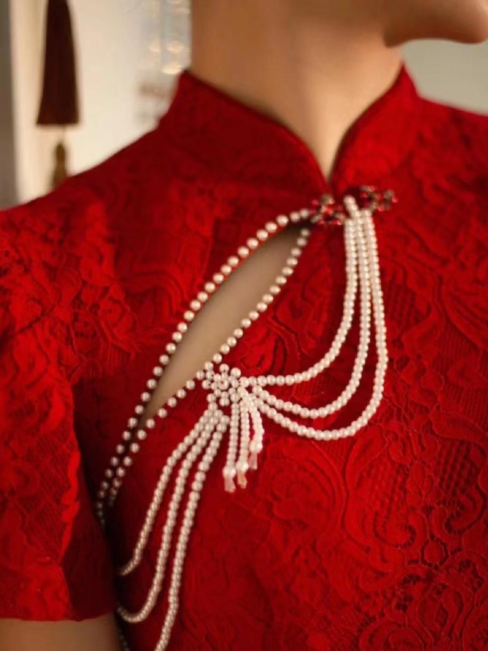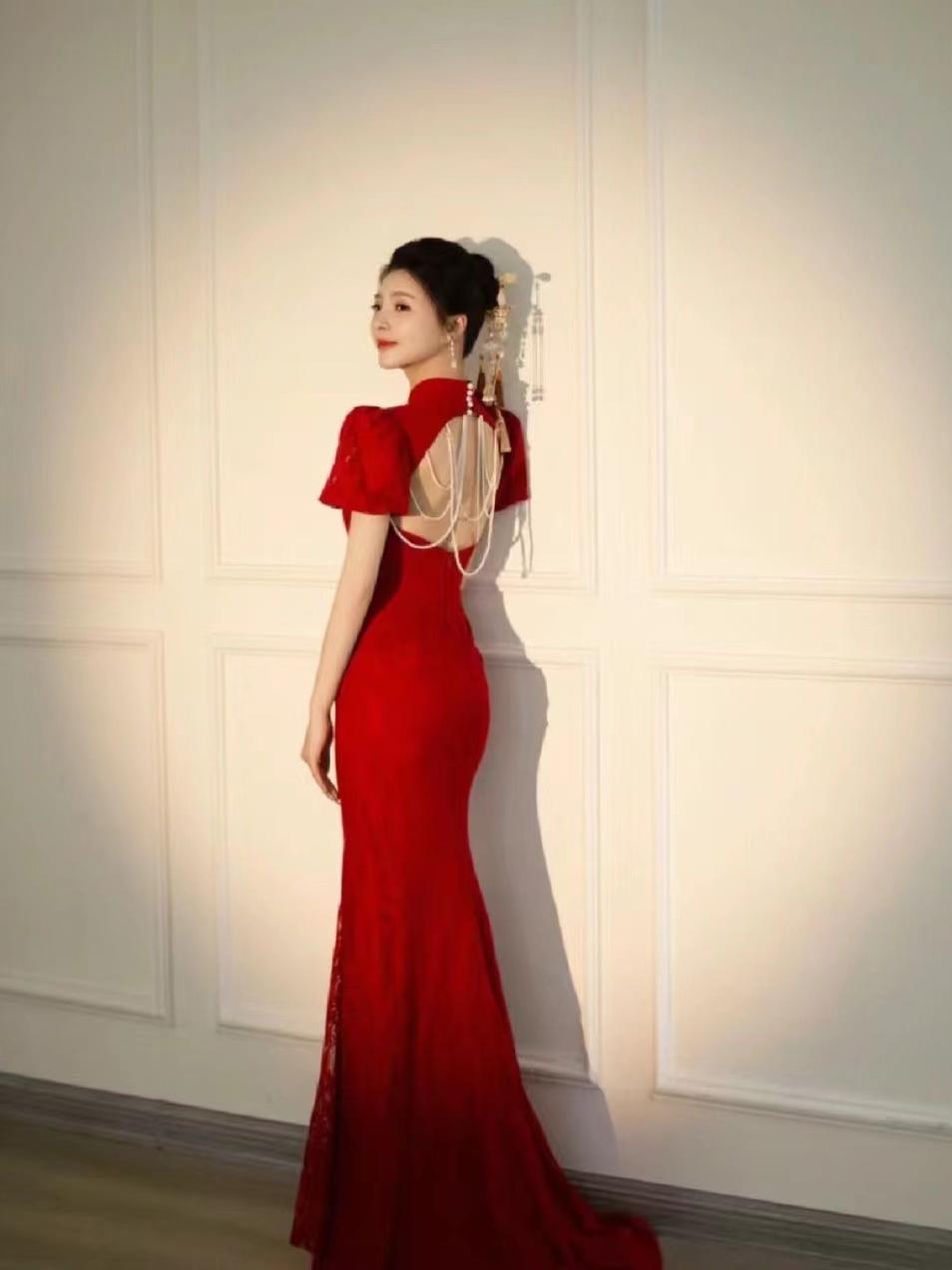 酒红鱼尾敬酒服