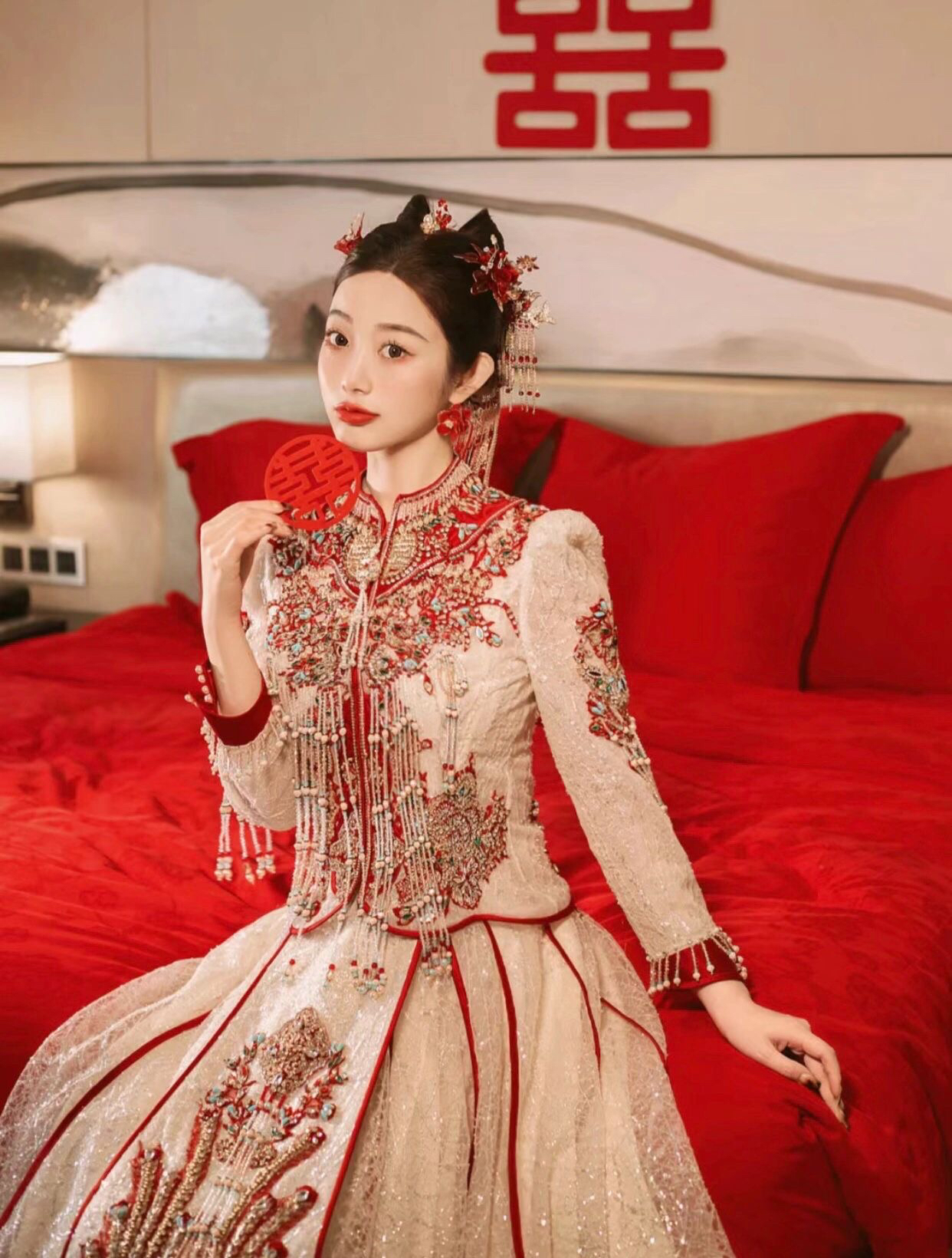浅色中式嫁衣