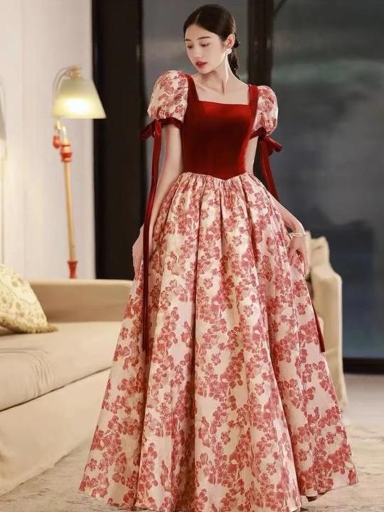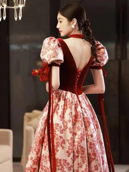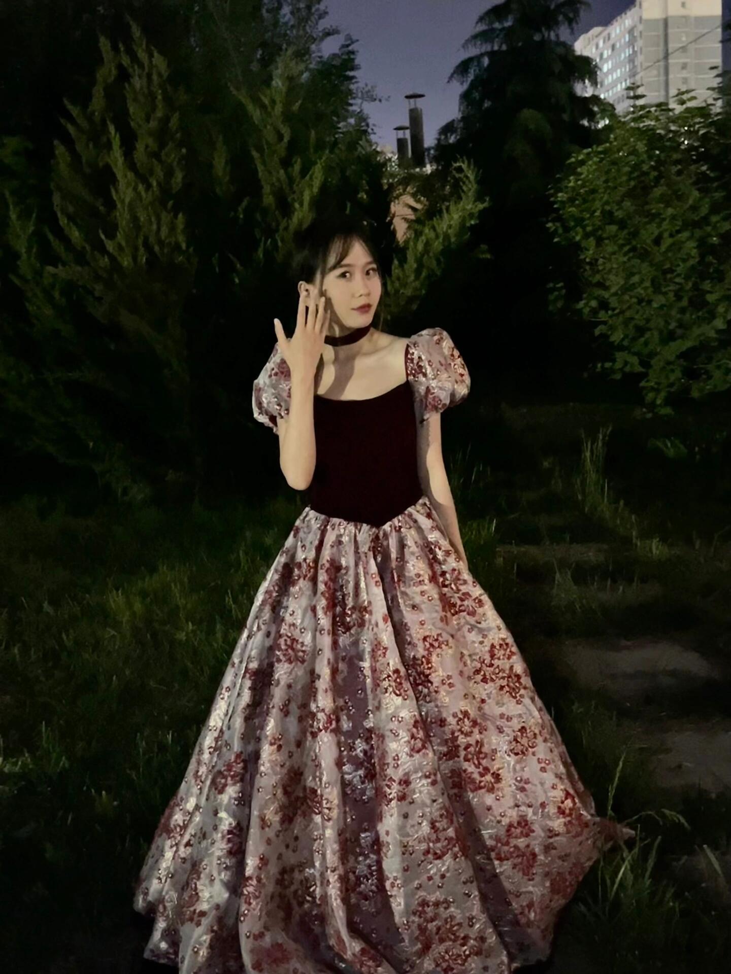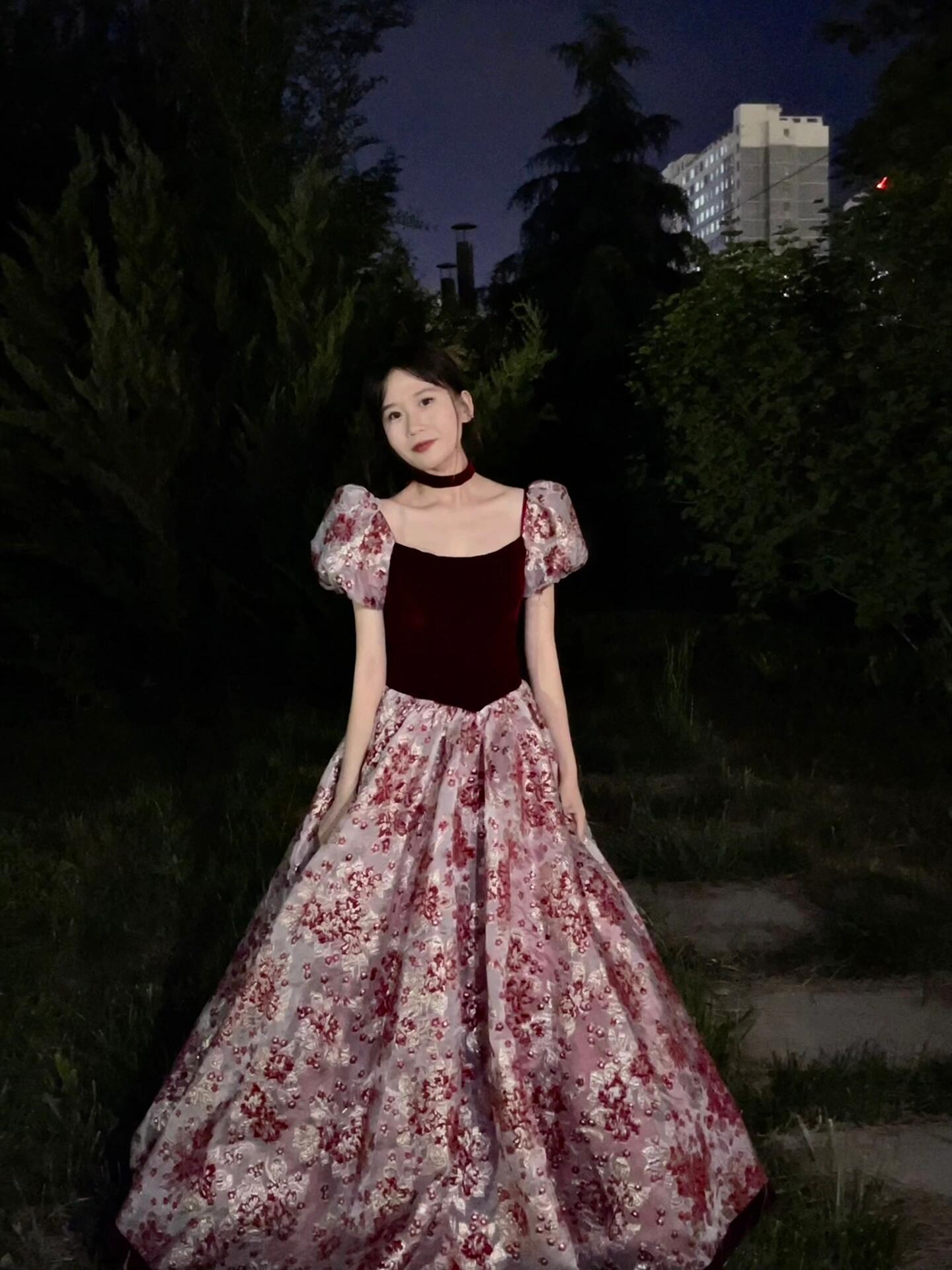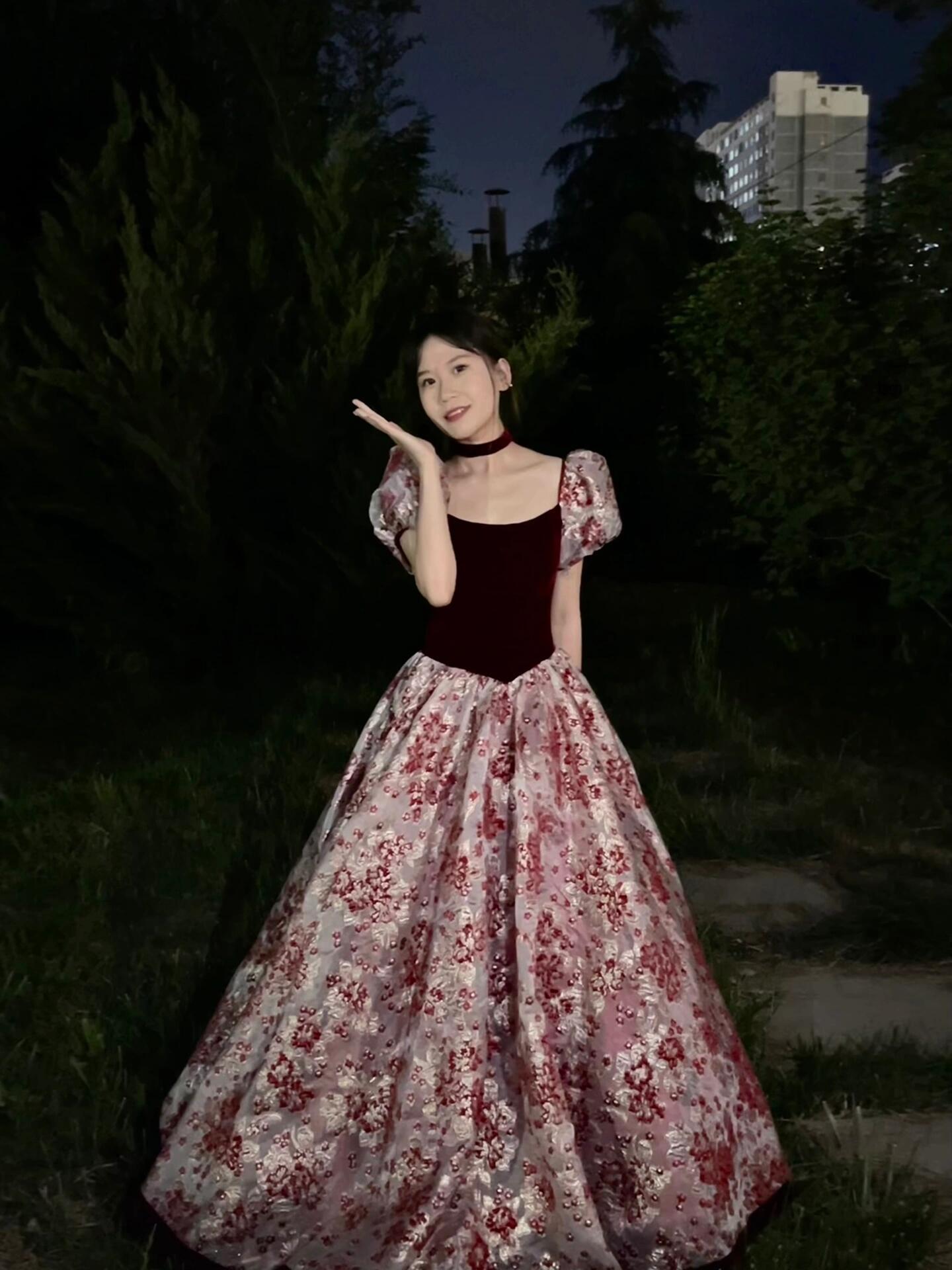 【WM】黑丝绒玫瑰印花礼服