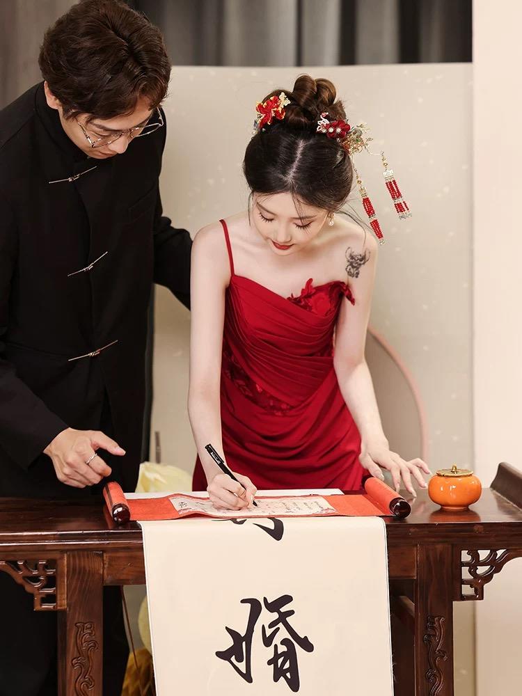 【WM】酒红色复古感礼服