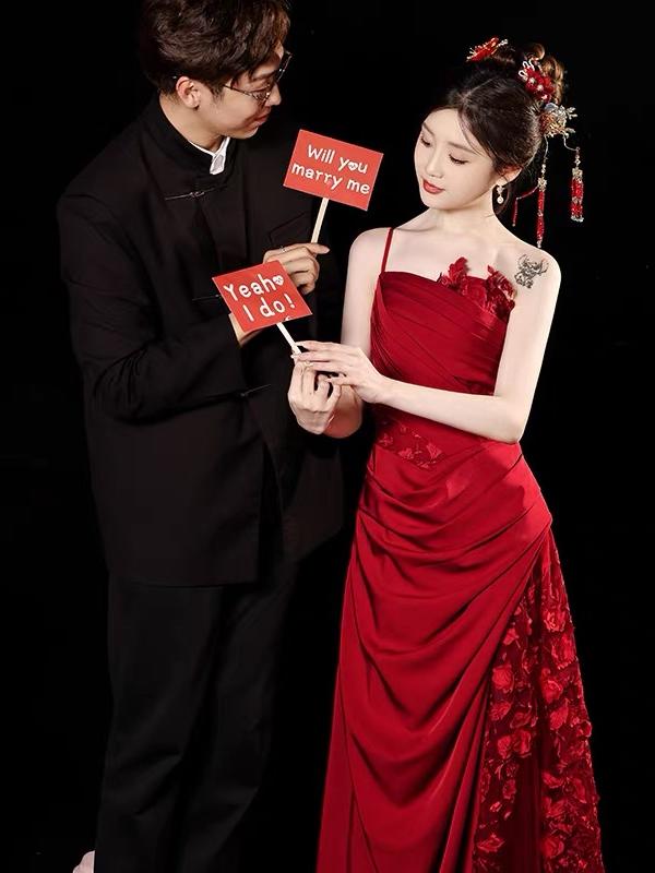 【WM】立体剪裁红色礼服