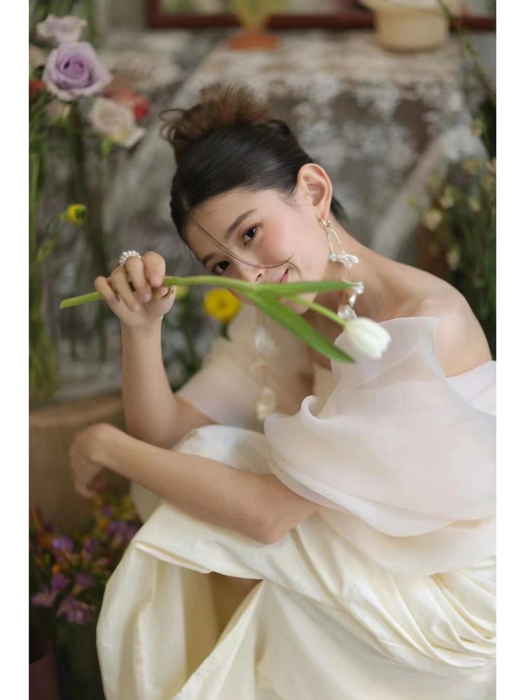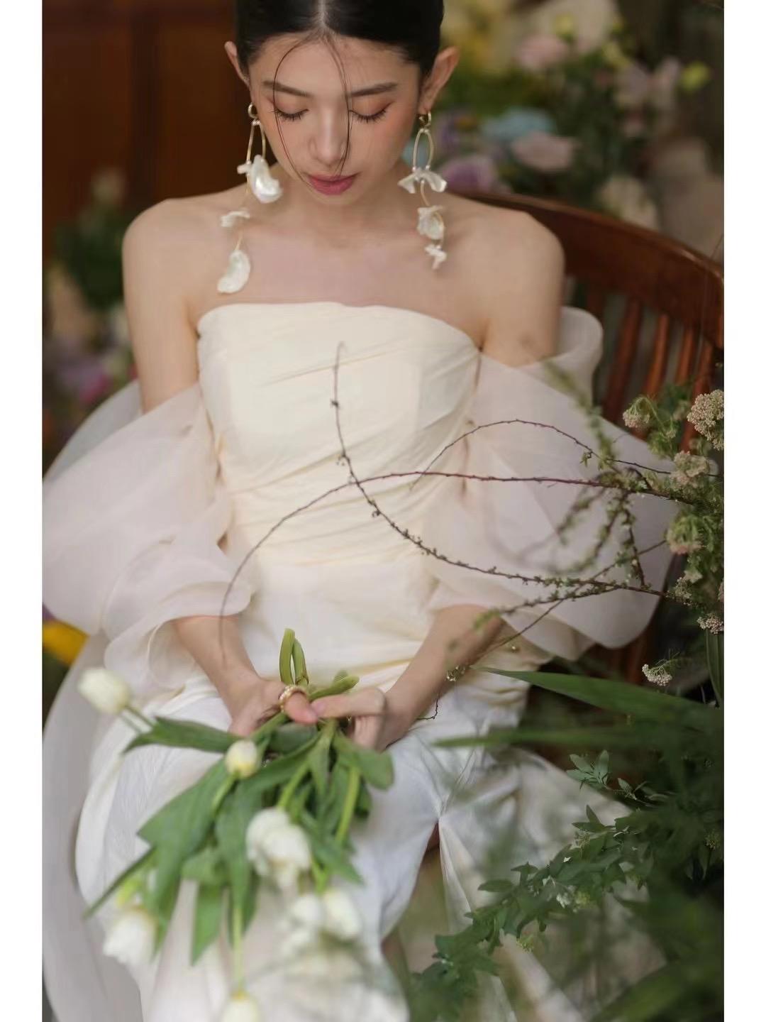缎面一字肩气质款主纱纯白高级