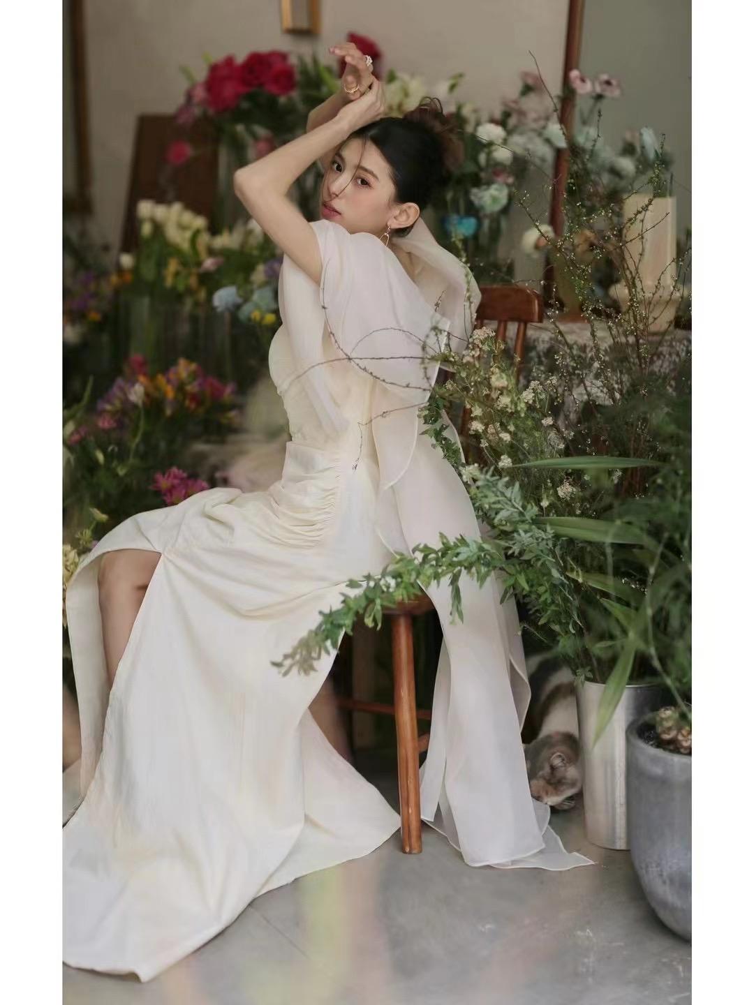 小众款缎面小拖婚纱