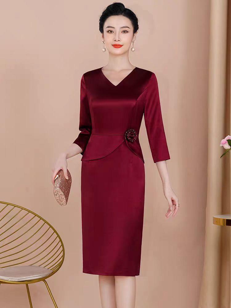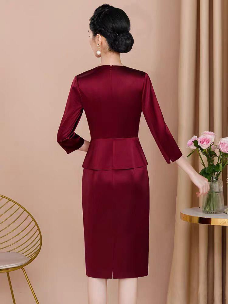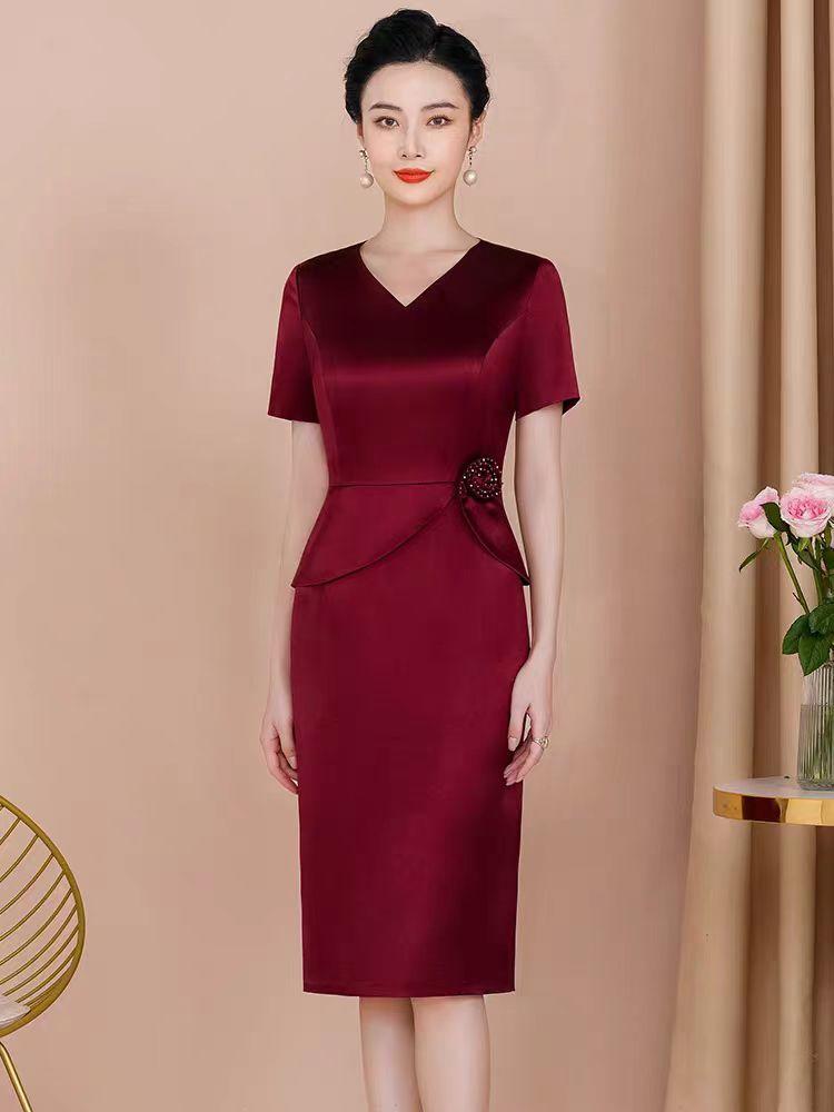 妈妈装 高级缎面 礼服 短款