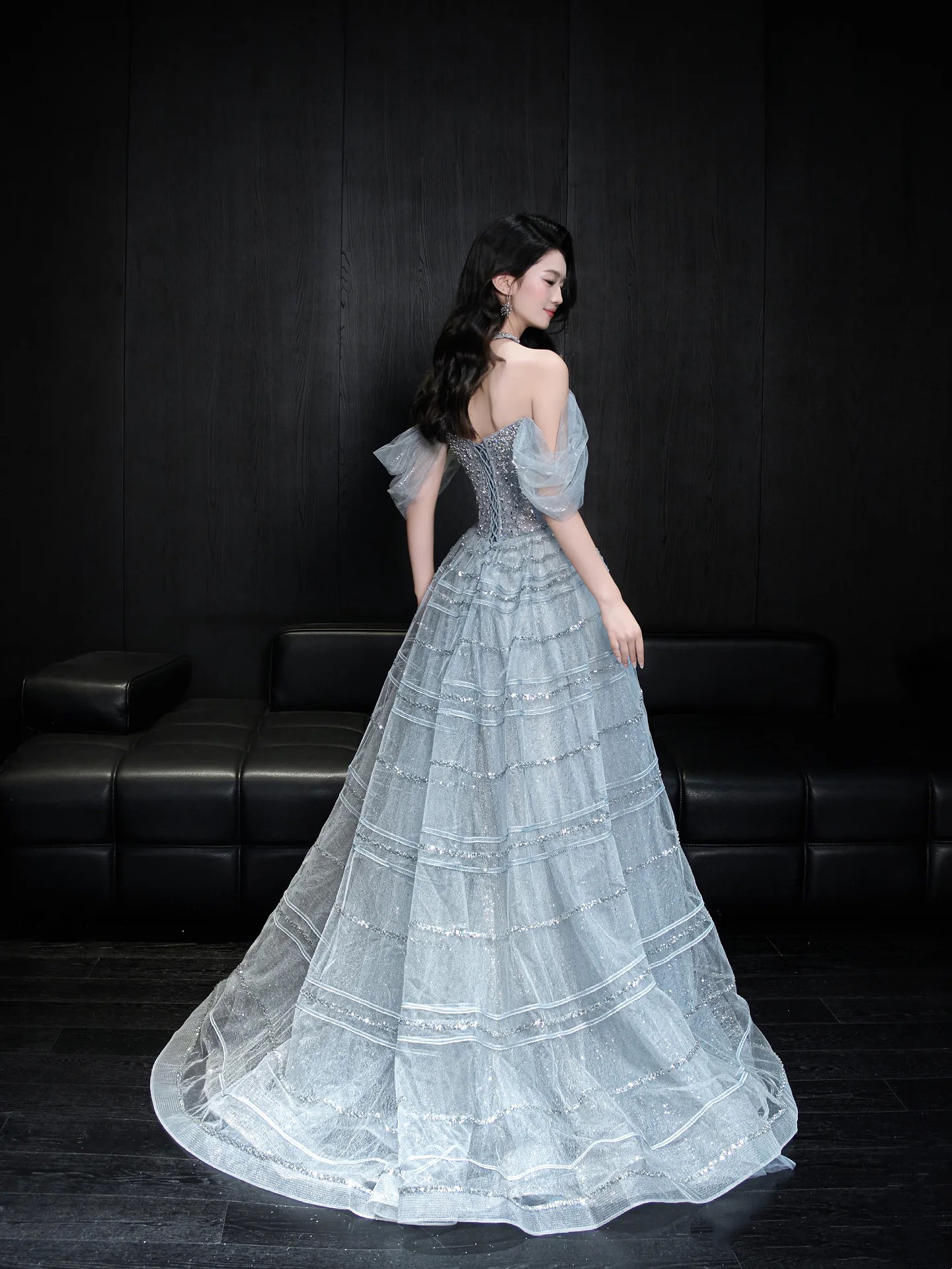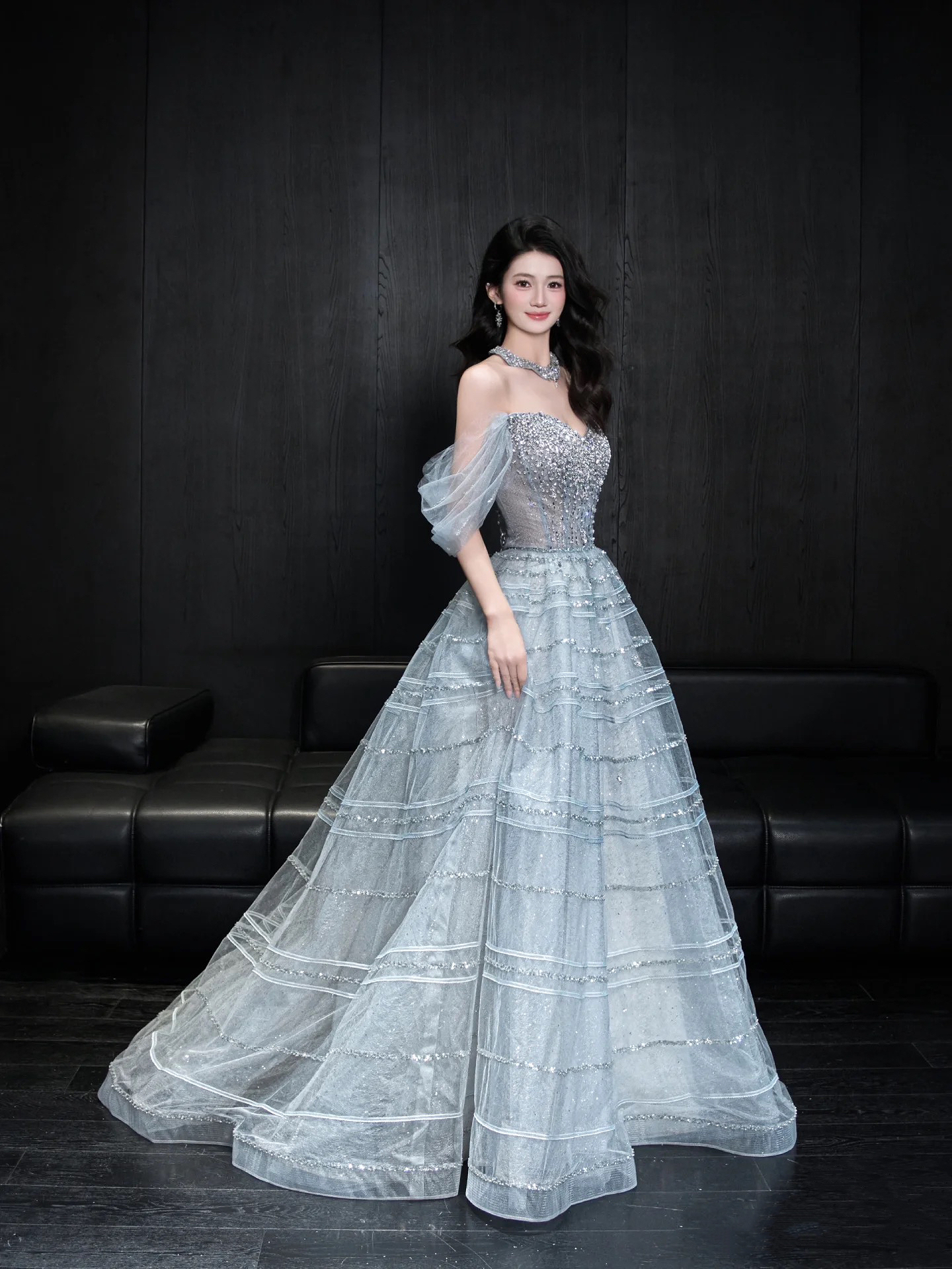 一字肩新款重工公主礼服