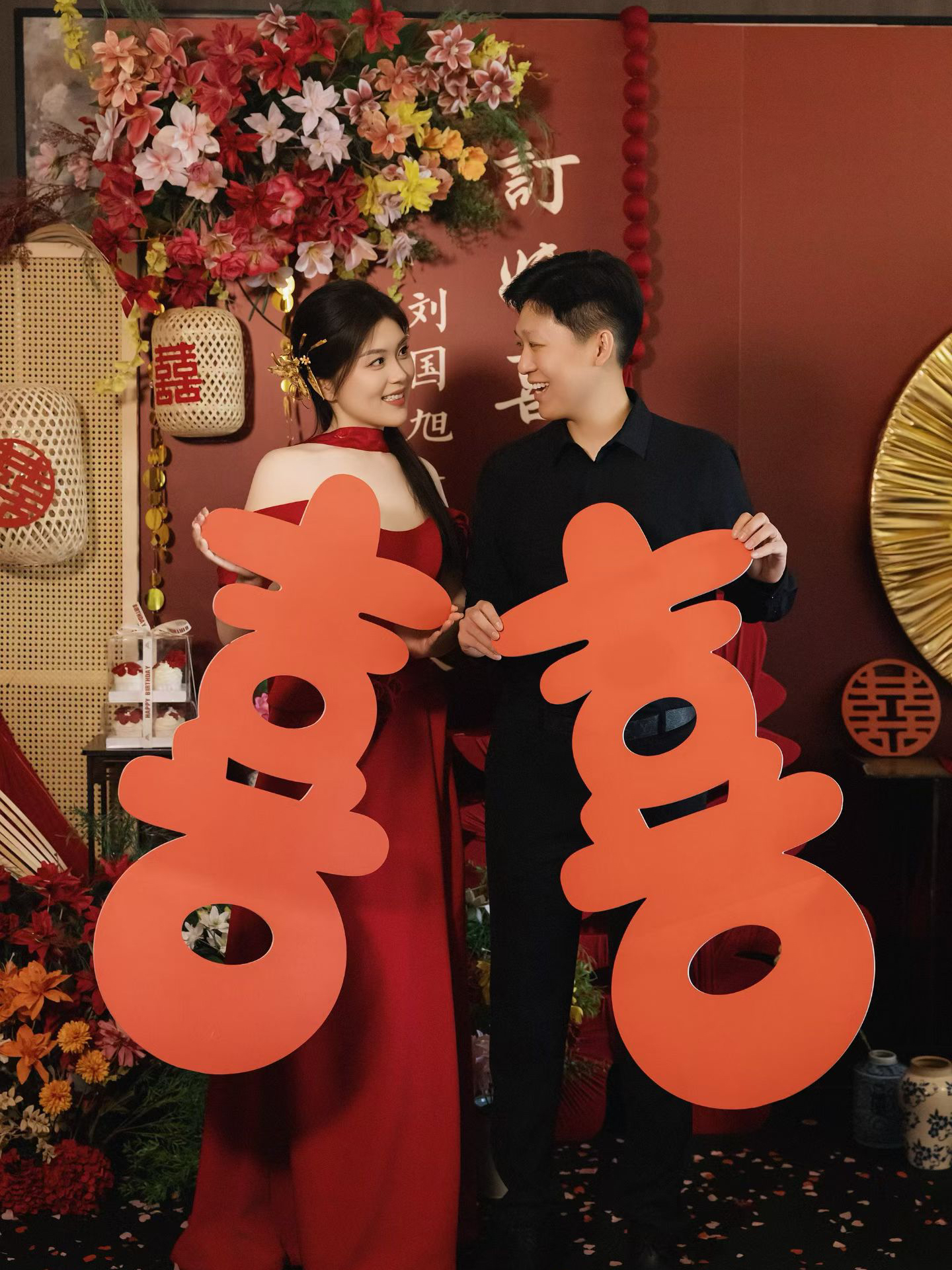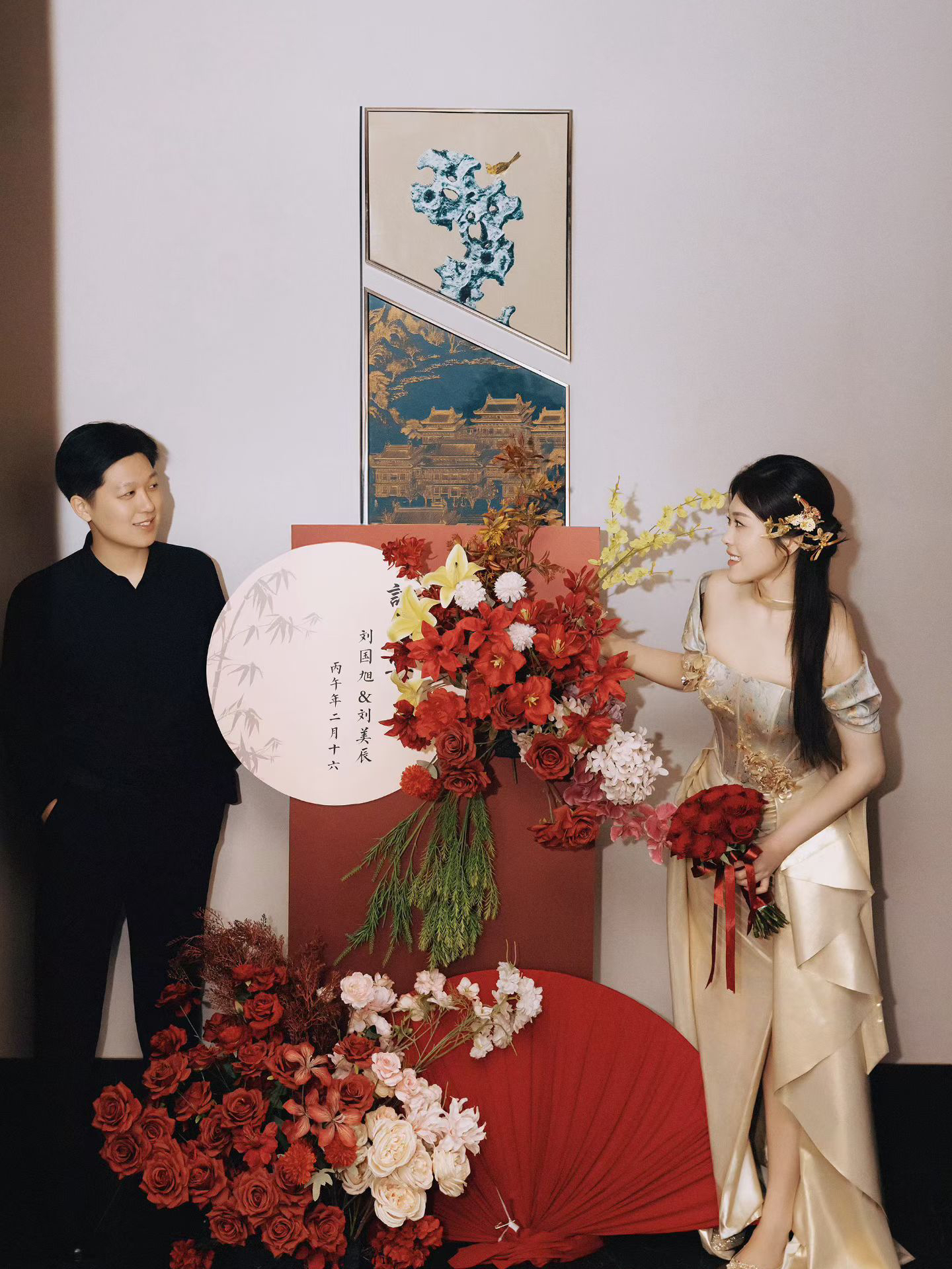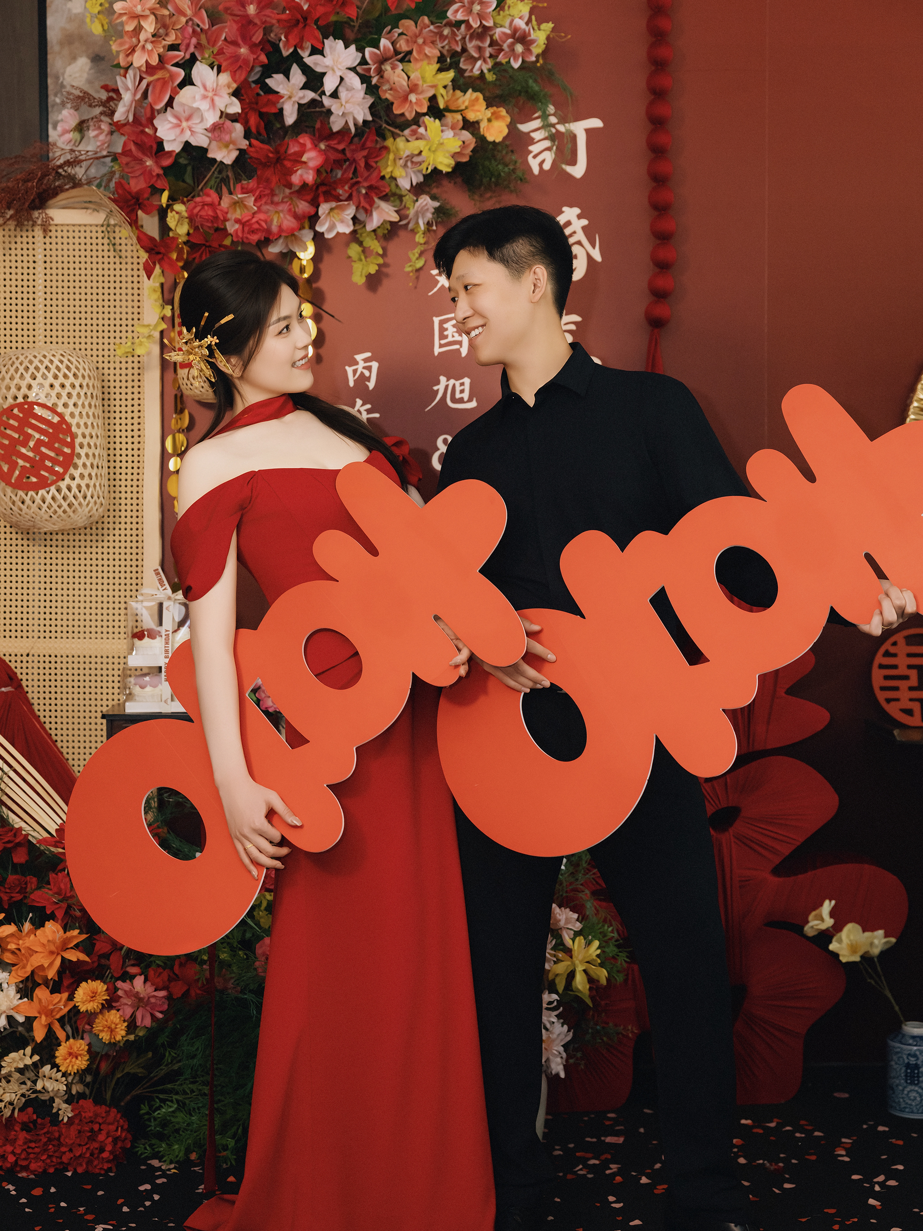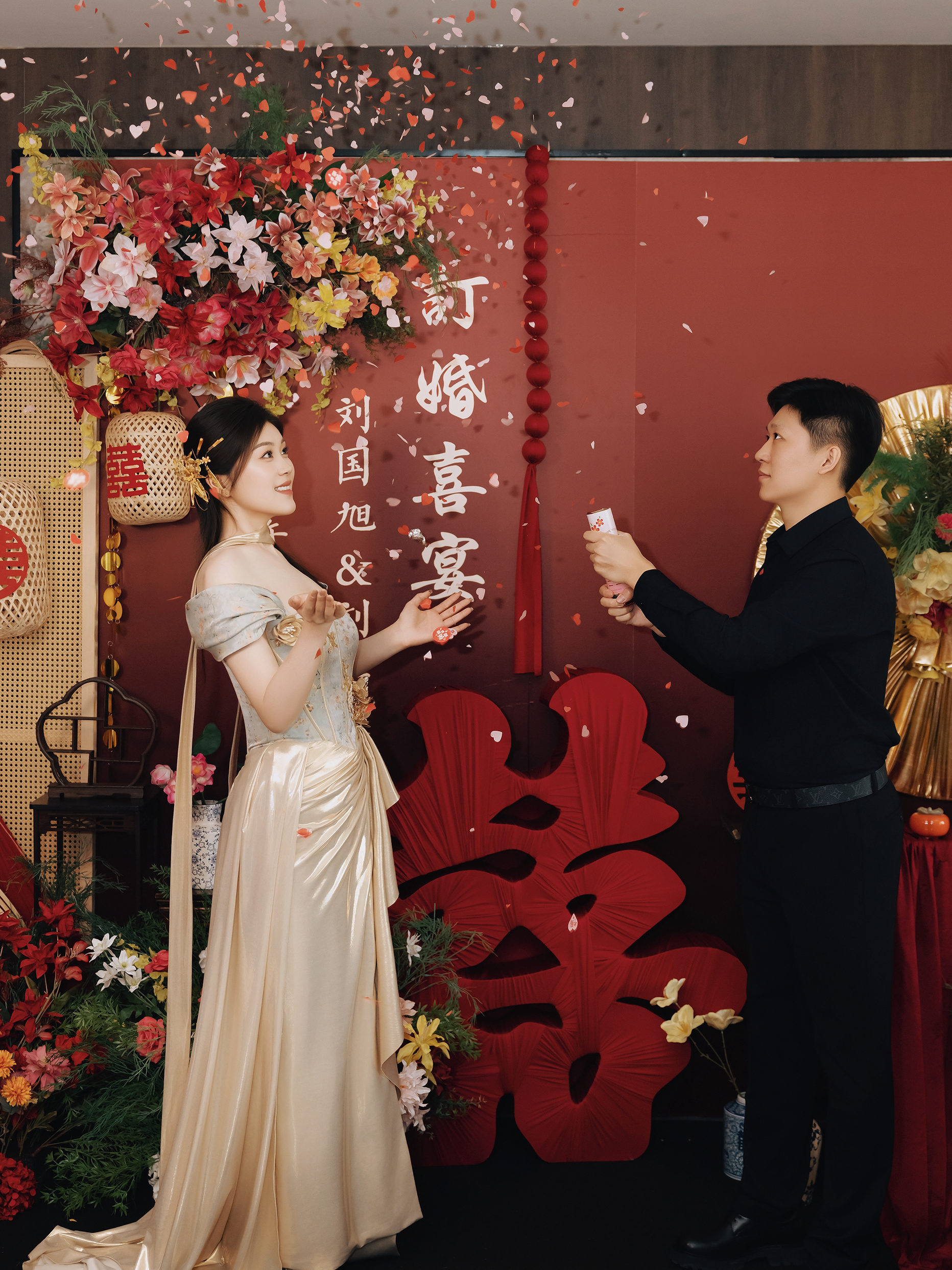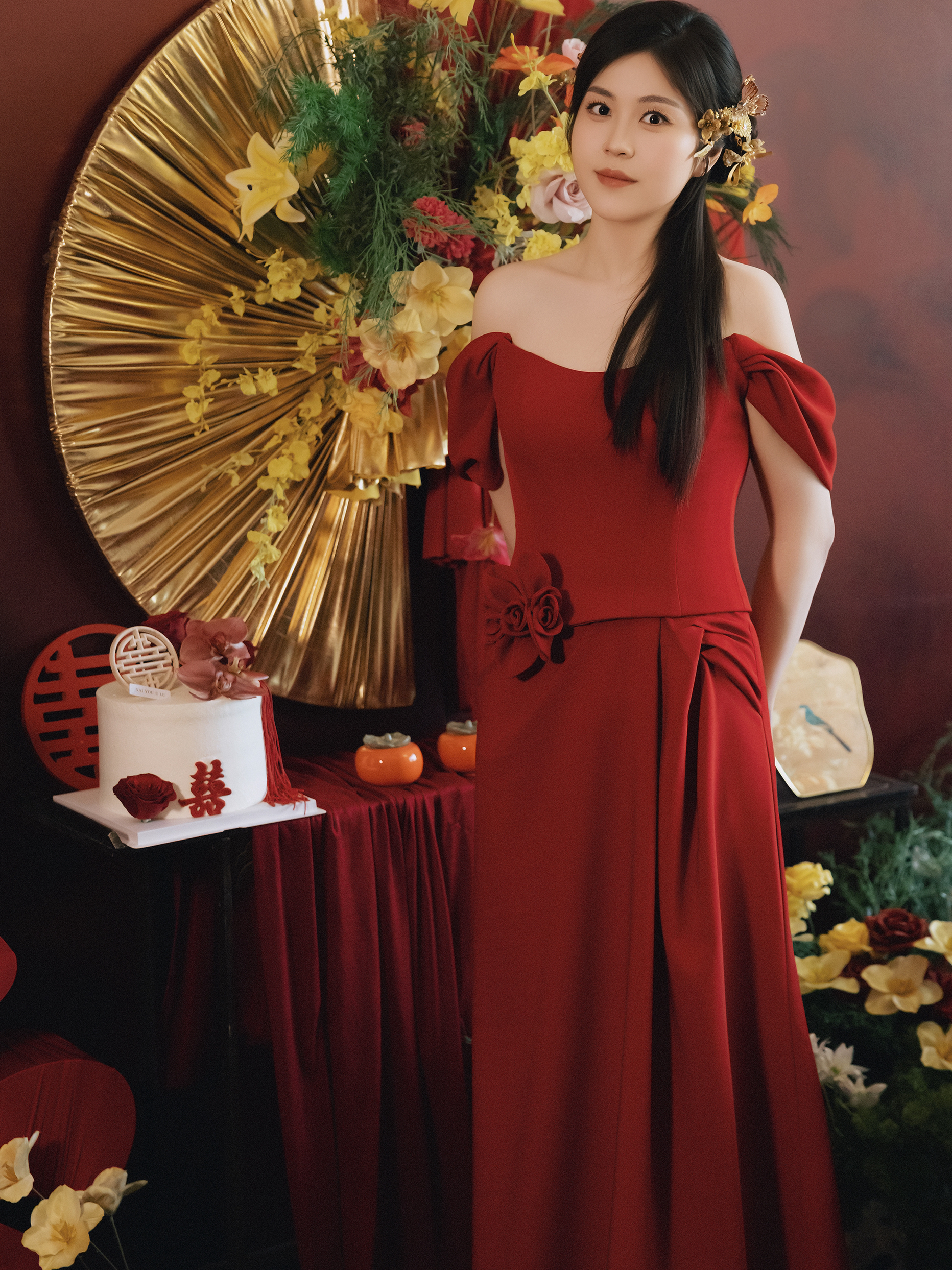 红色新中式礼服敬酒造型