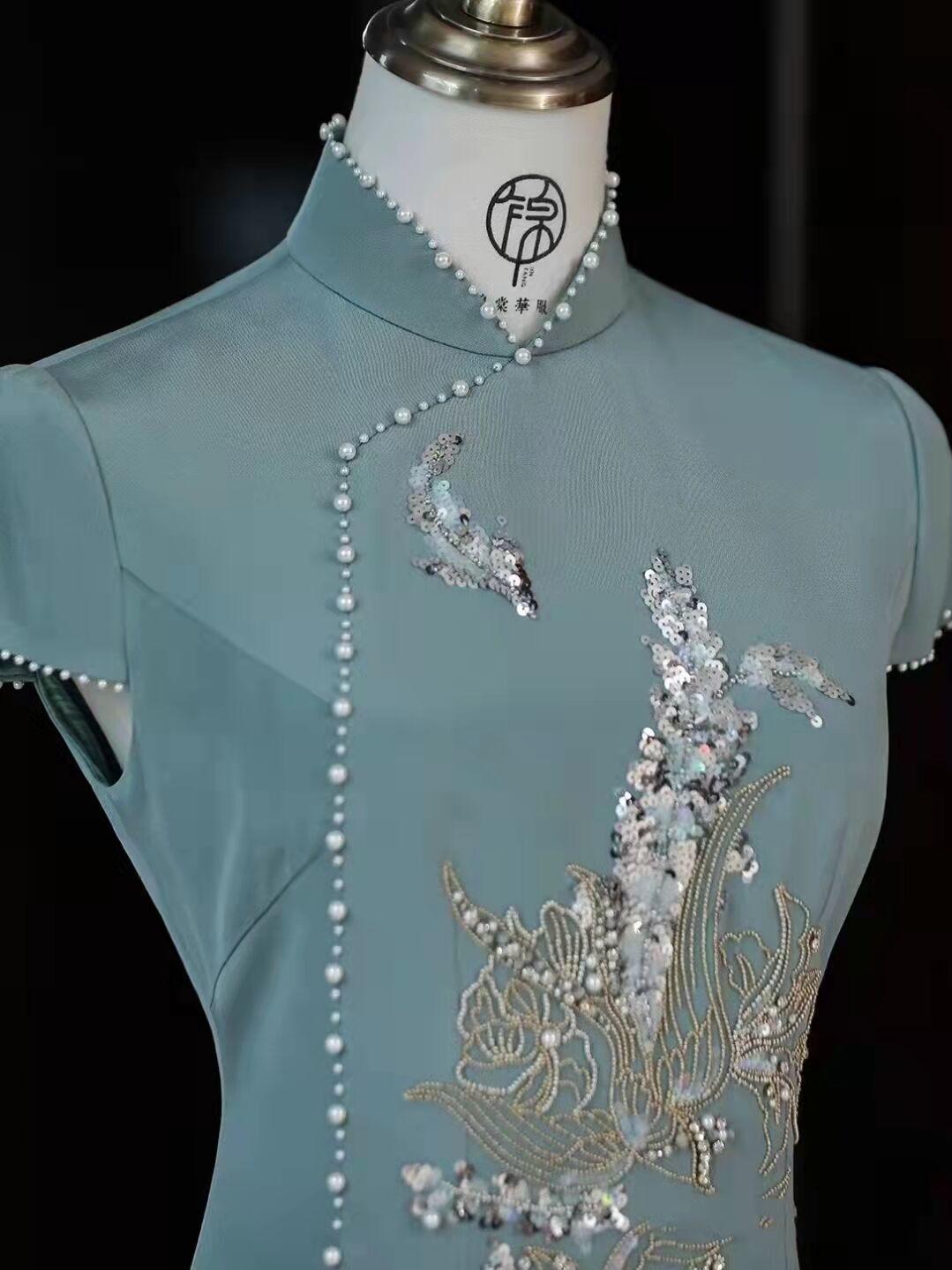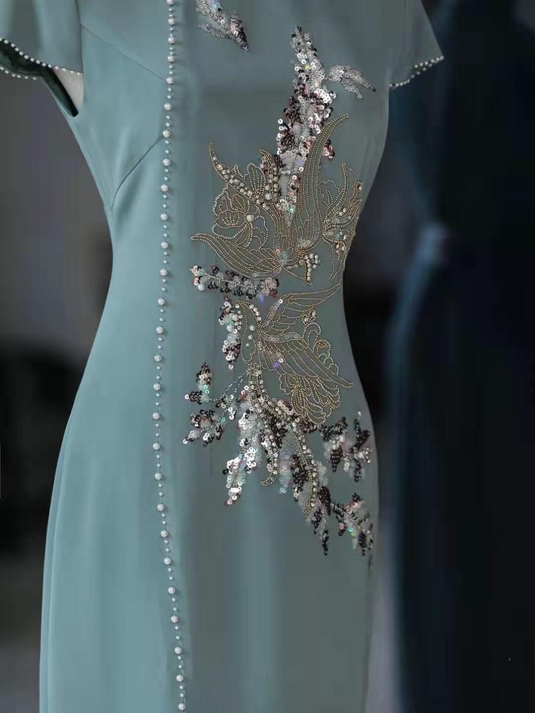 田衣-丝毛手工钉珠旗袍