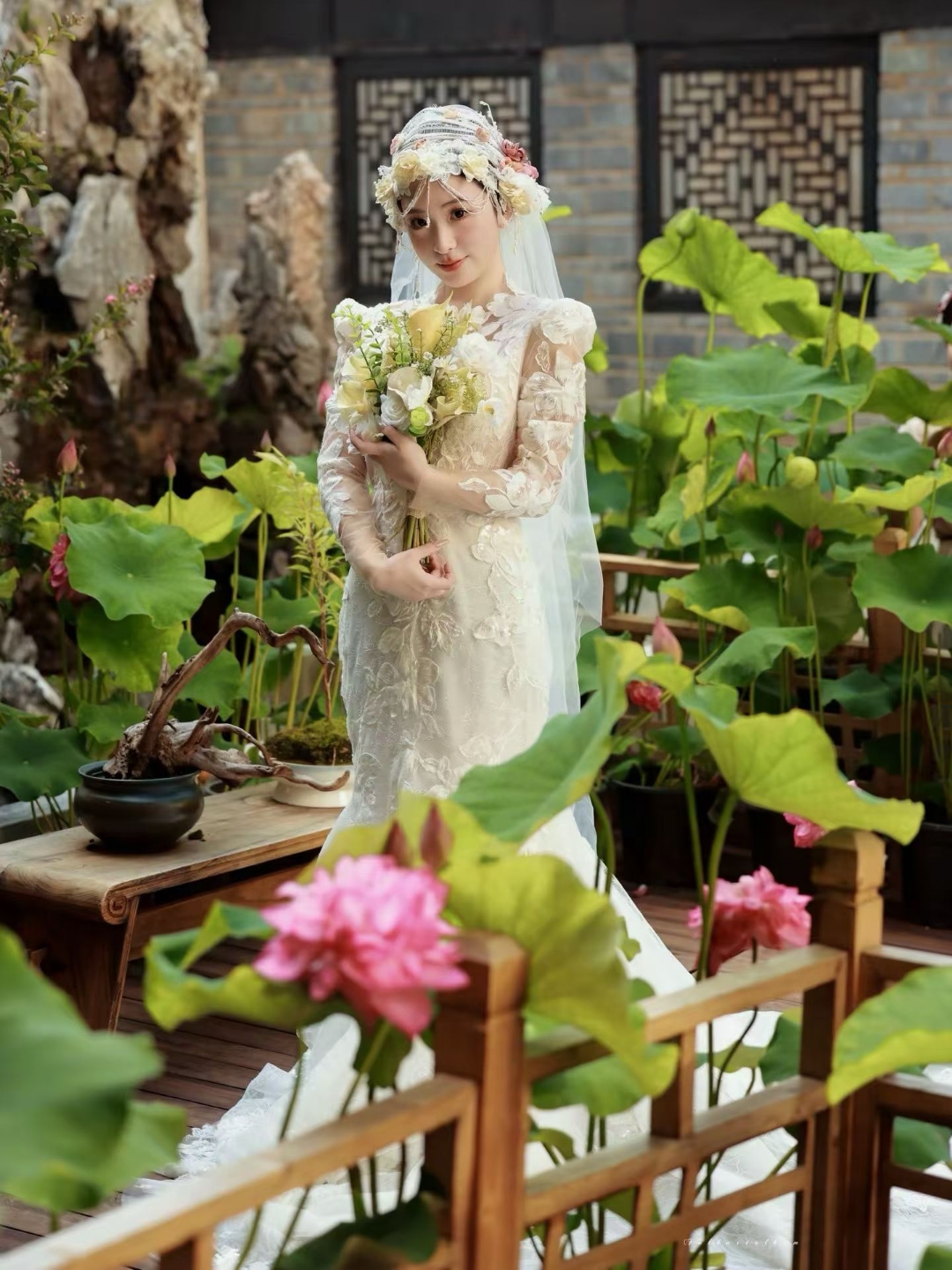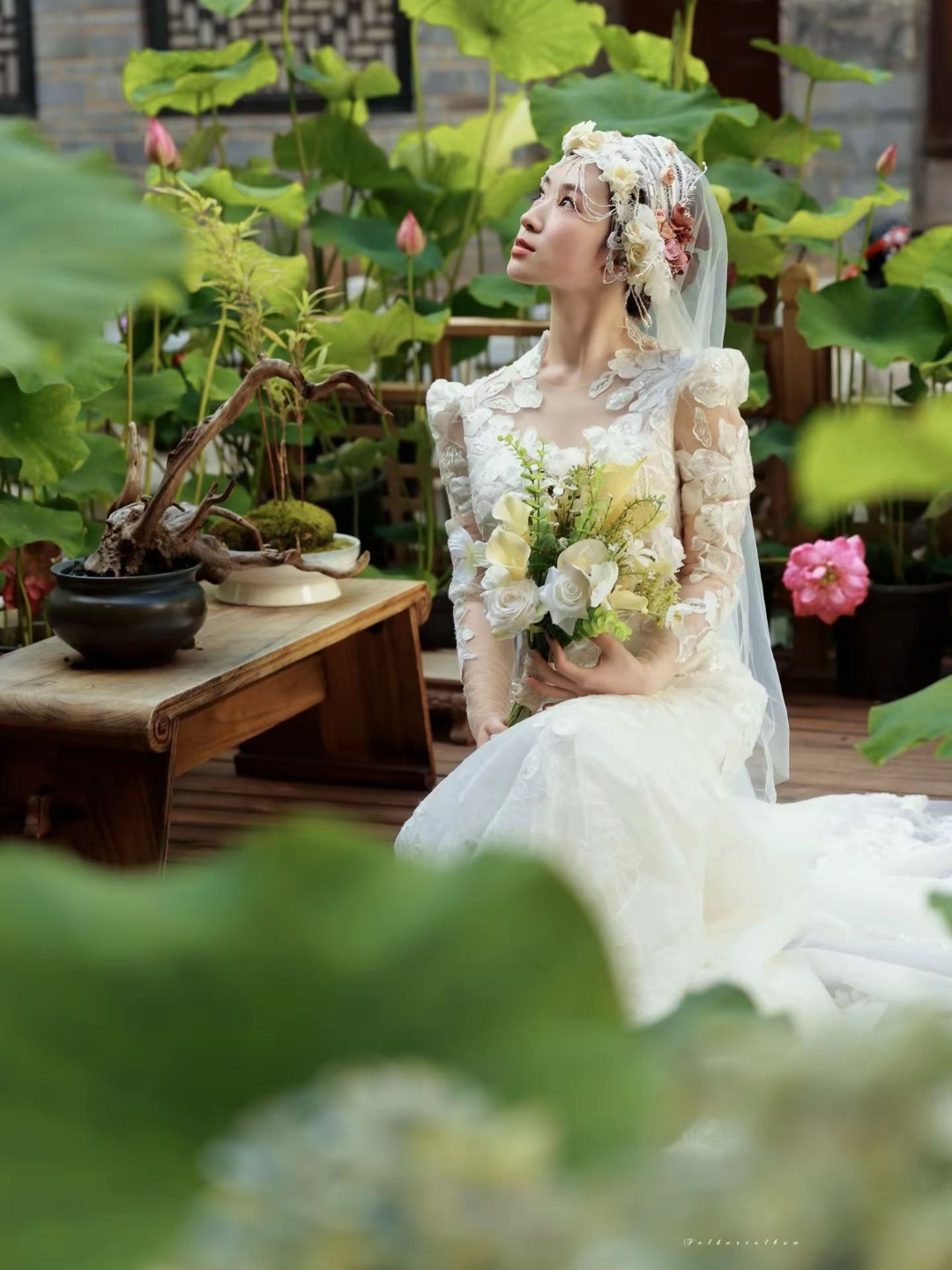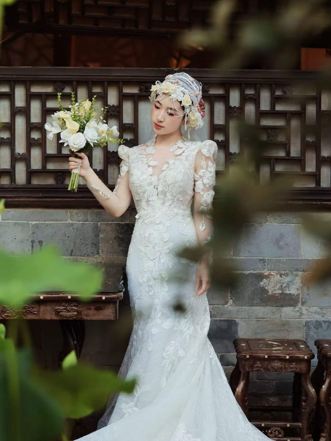 蕾丝鱼尾拖尾婚纱