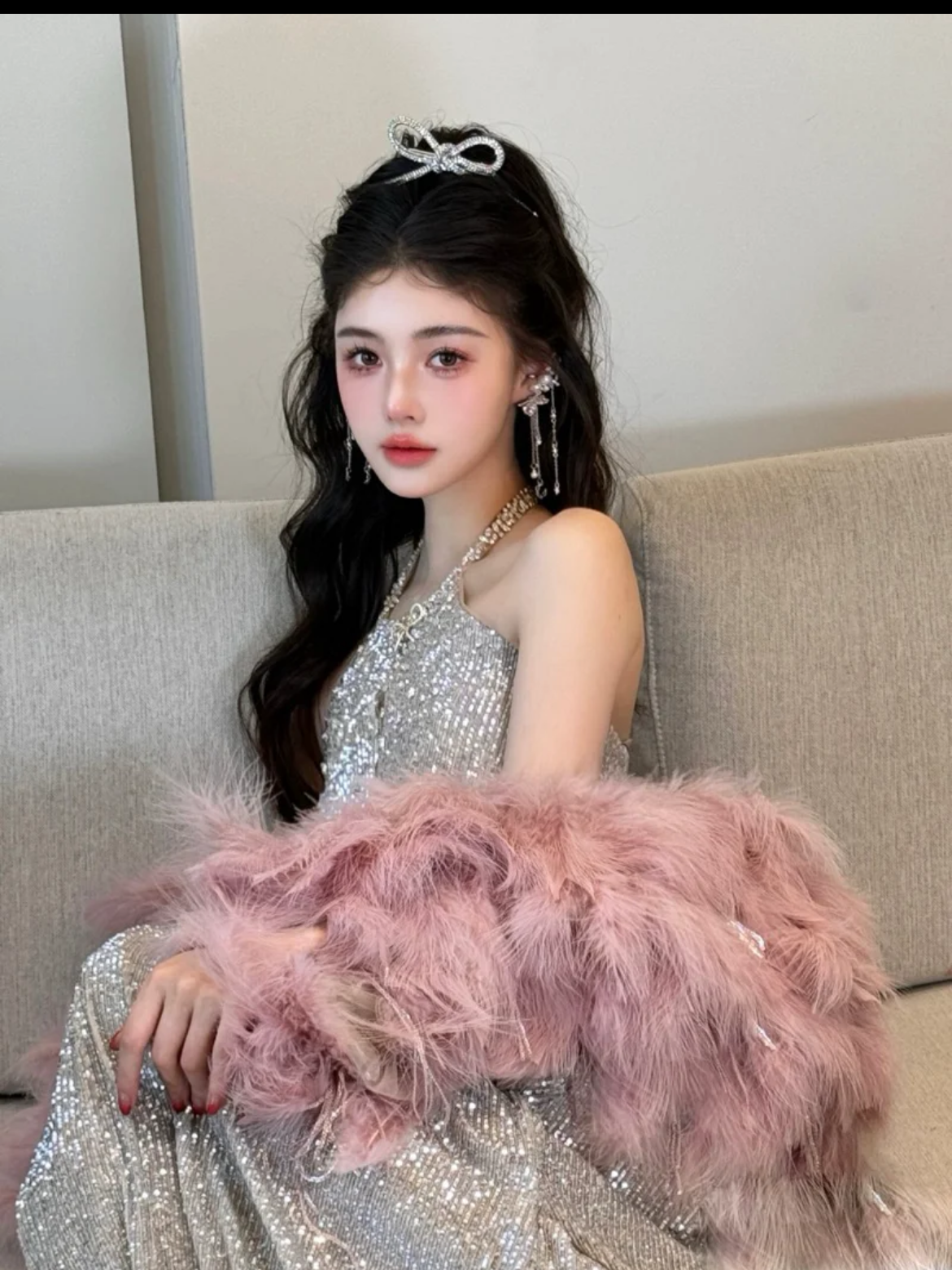 【与你婚纱】粉红羽毛