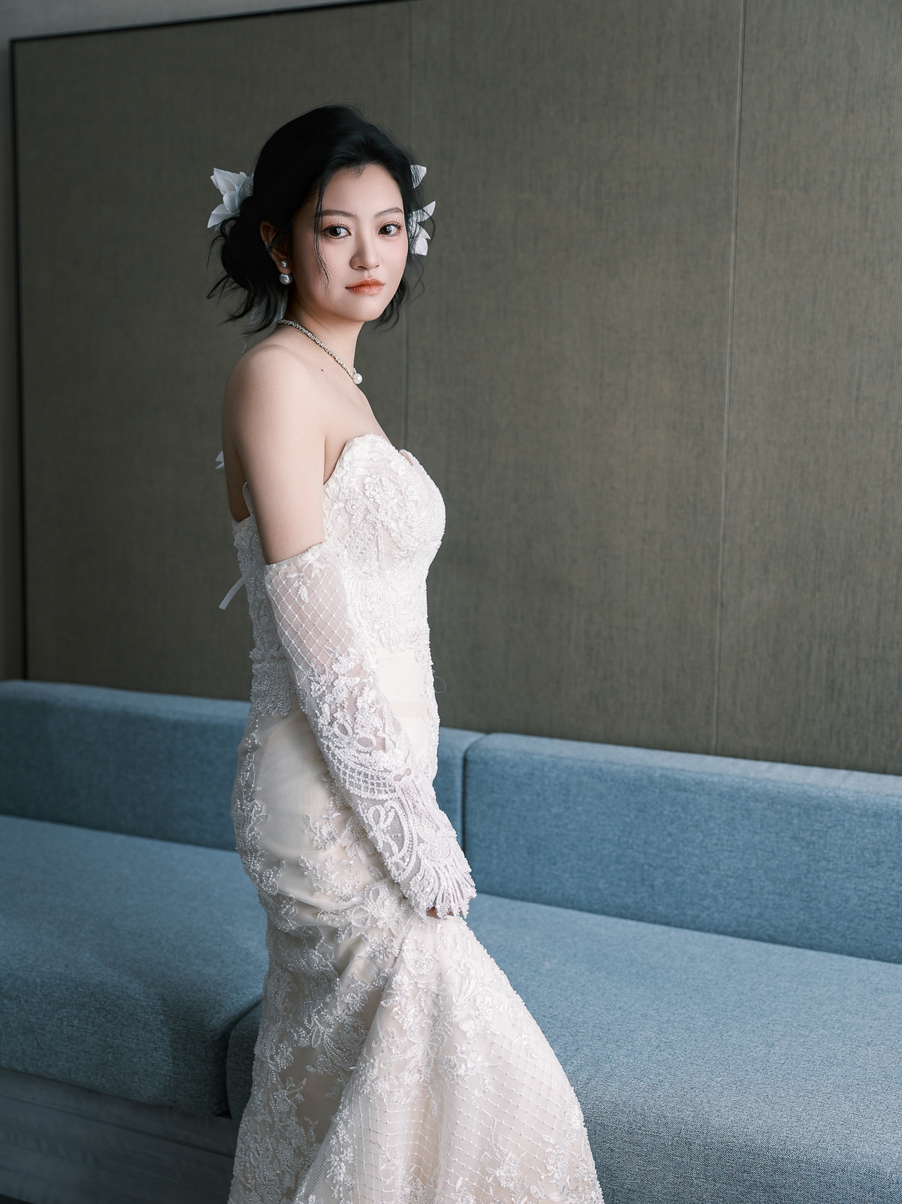 白色大蝴蝶结婚纱造型