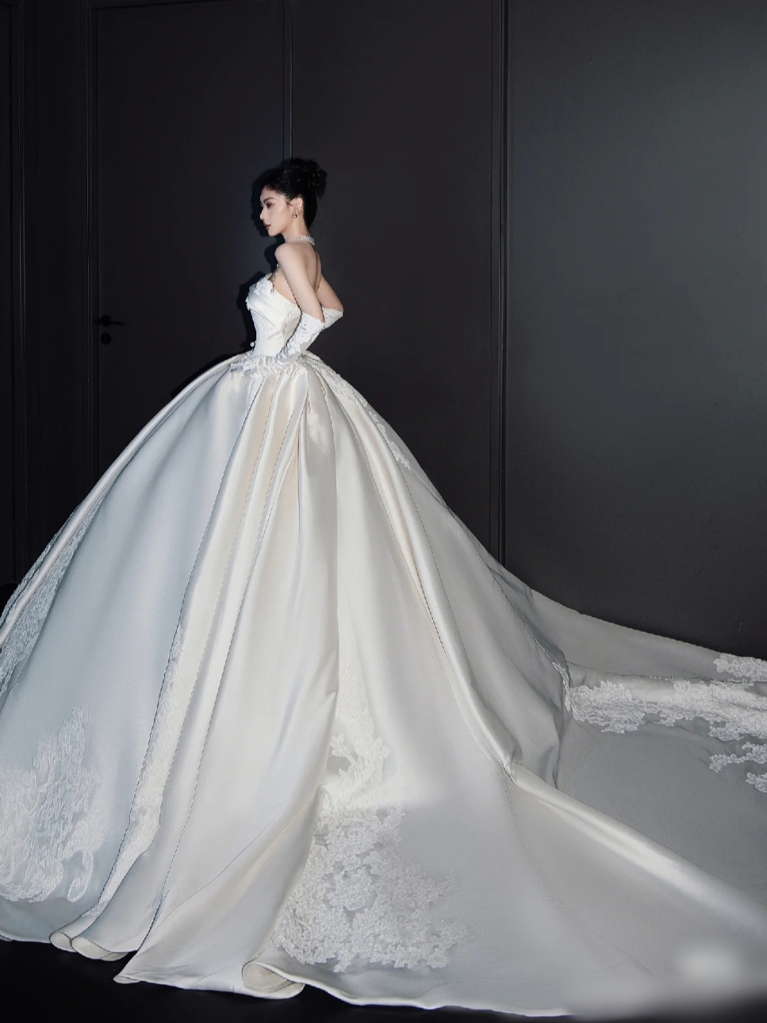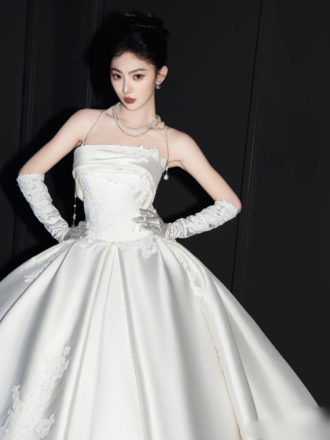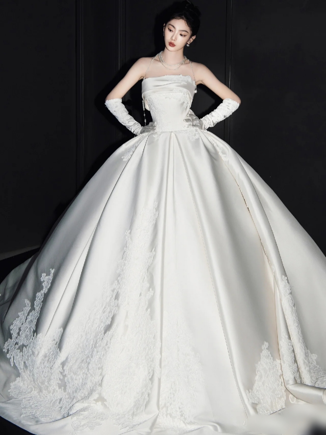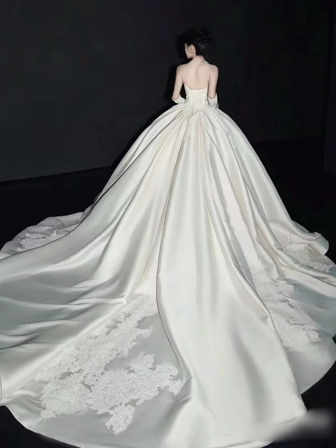 高级感抹胸缎面婚纱