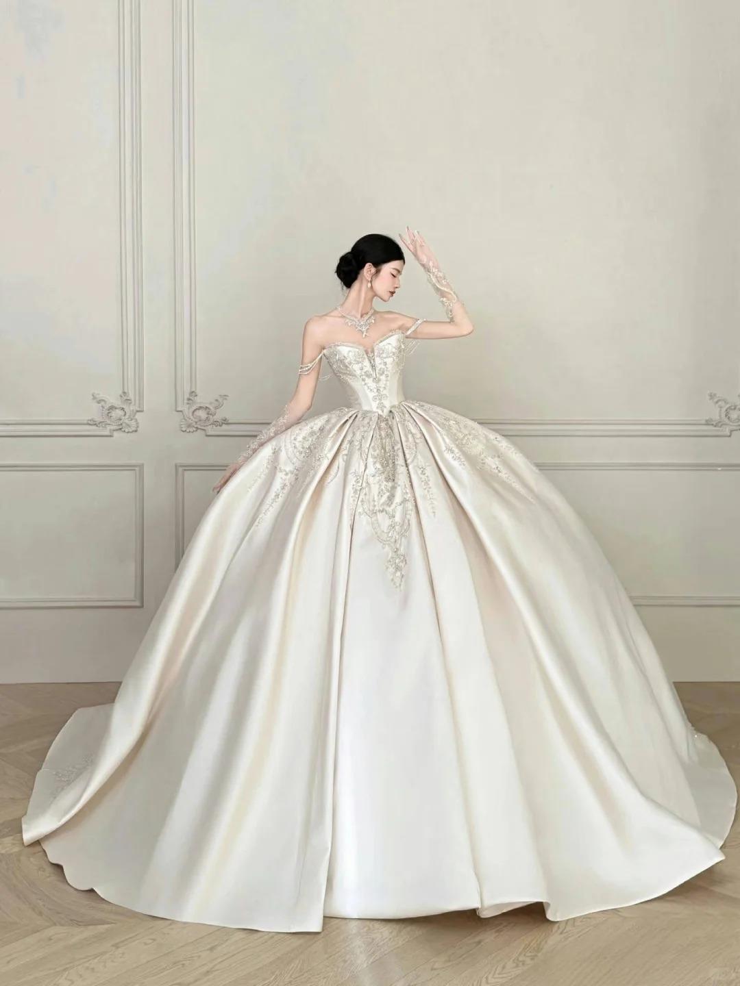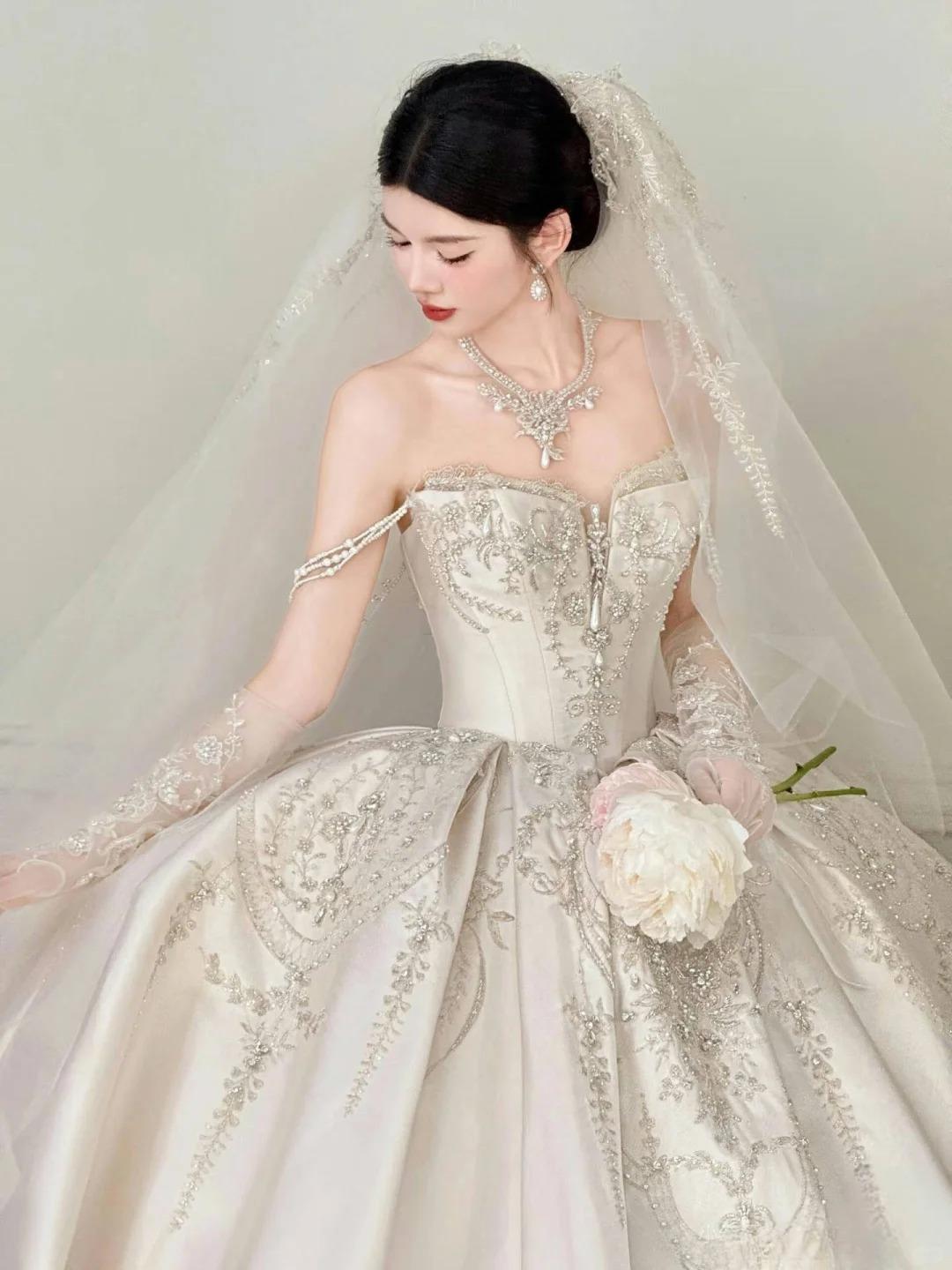 双肩婚纱与珠绣的浪漫叙事
