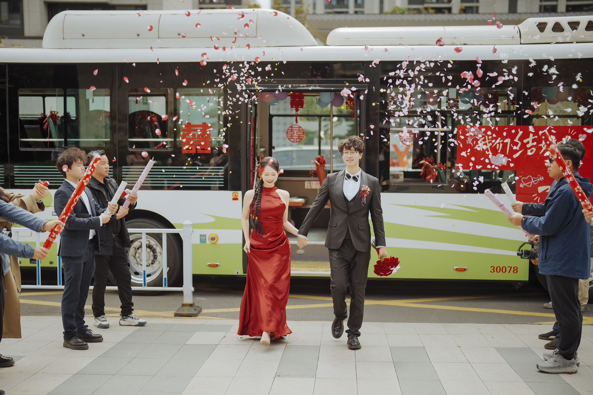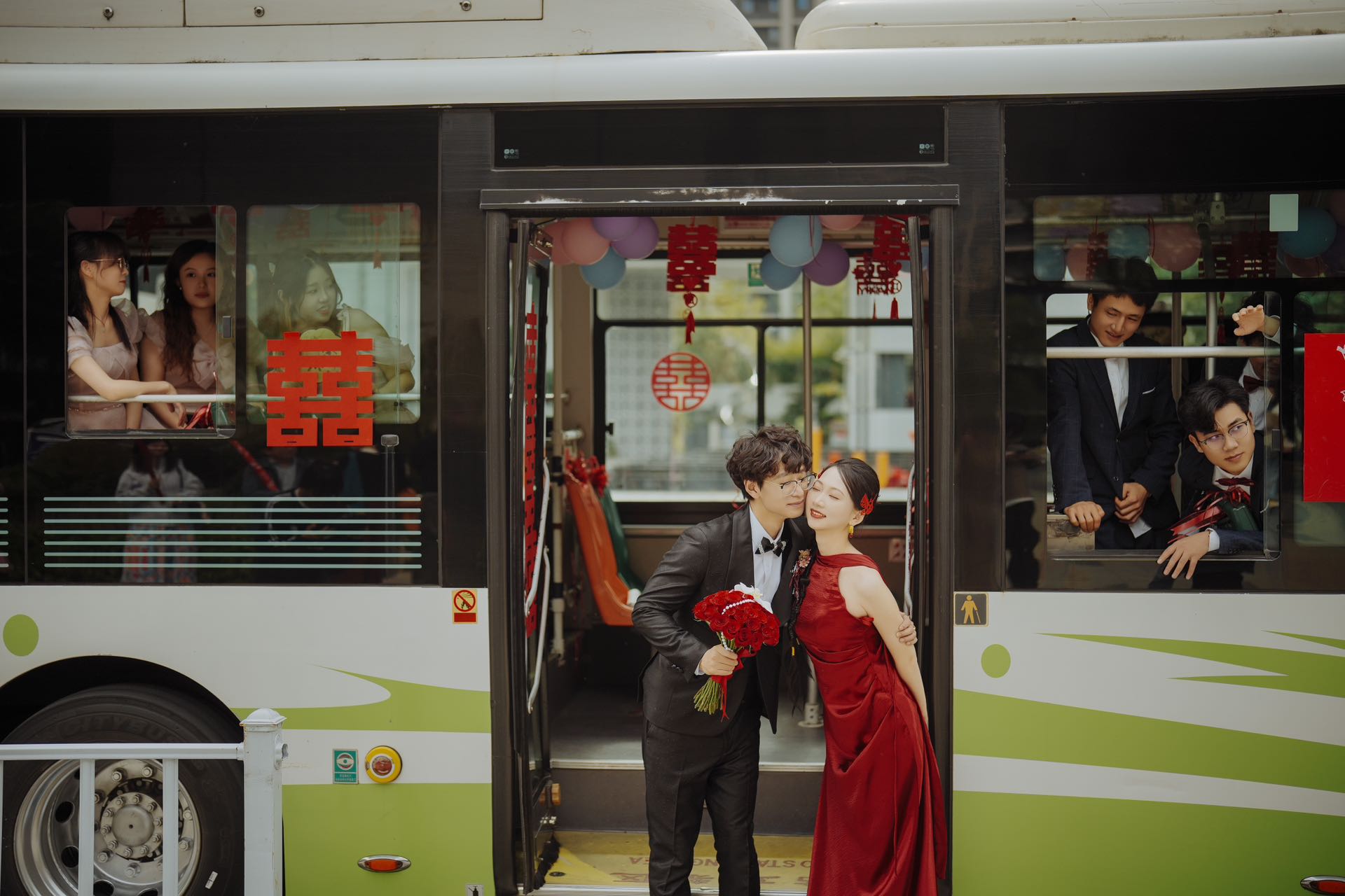 一组公交车的浪漫婚礼