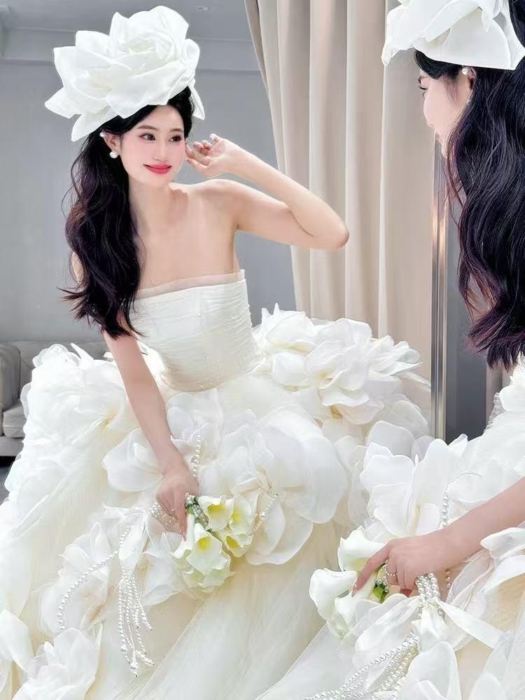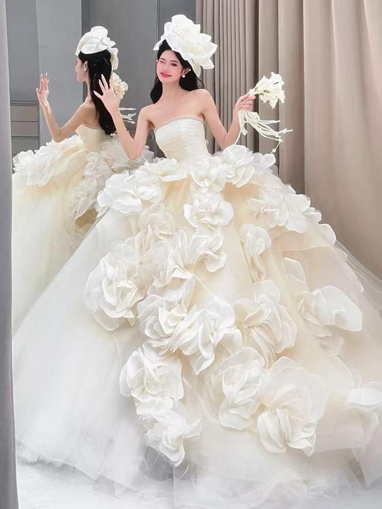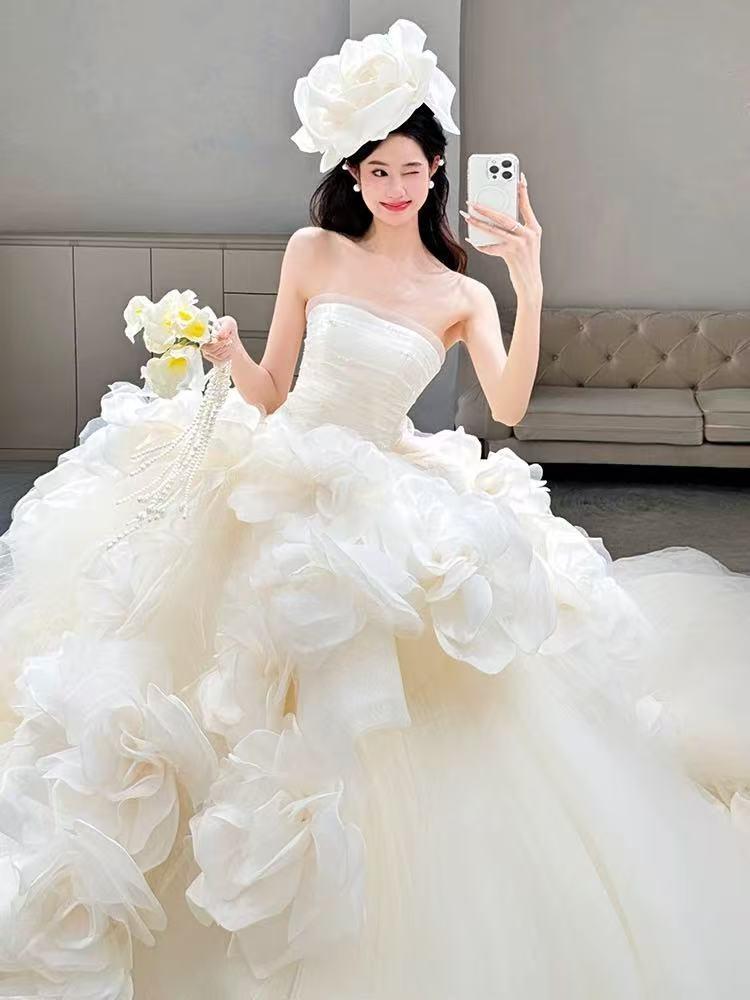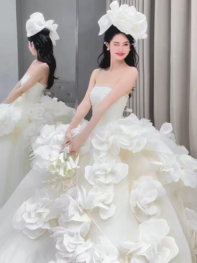 2025新款法式抹胸花朵轻婚纱