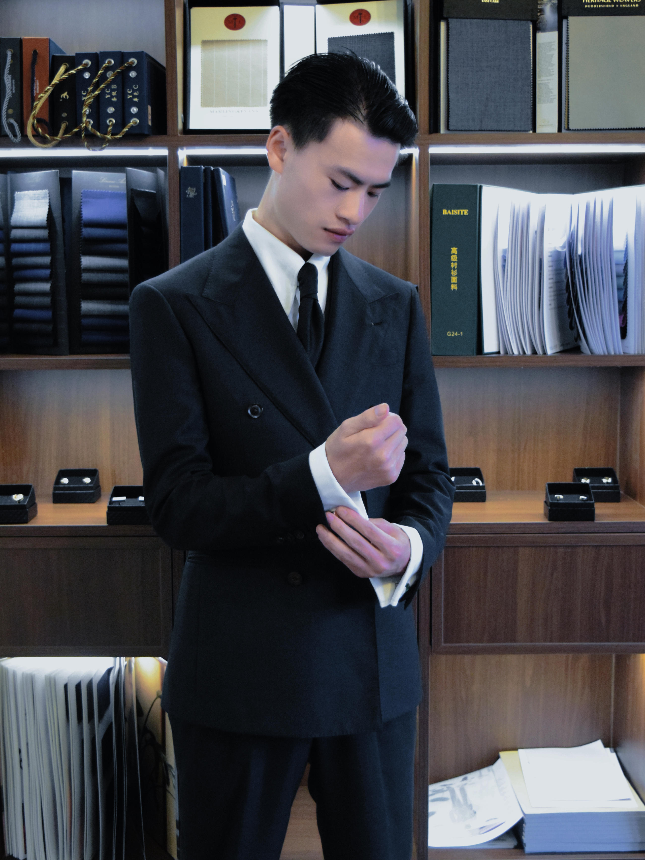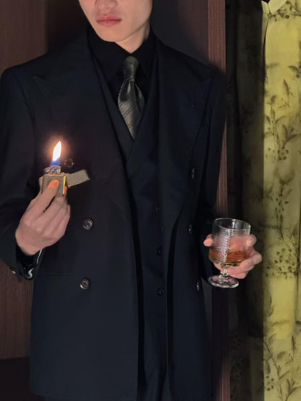 深灰色枪驳领双排扣套装