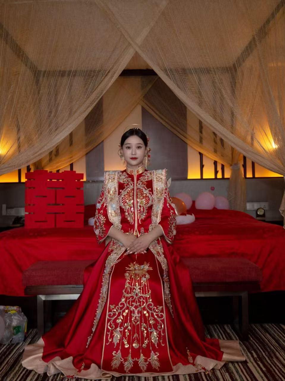 中式金色霞帔秀禾服