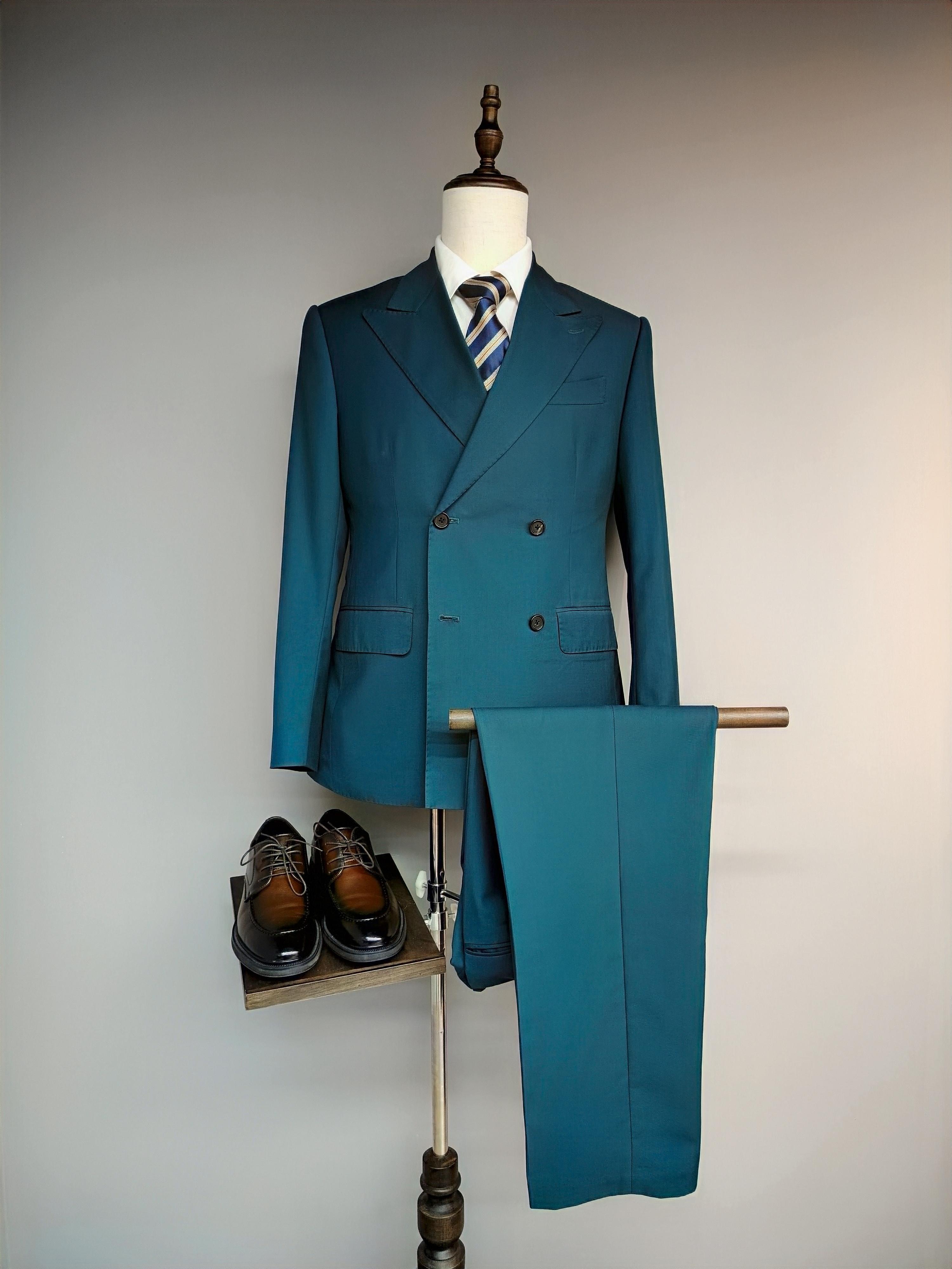 孔雀蓝双排四粒扣