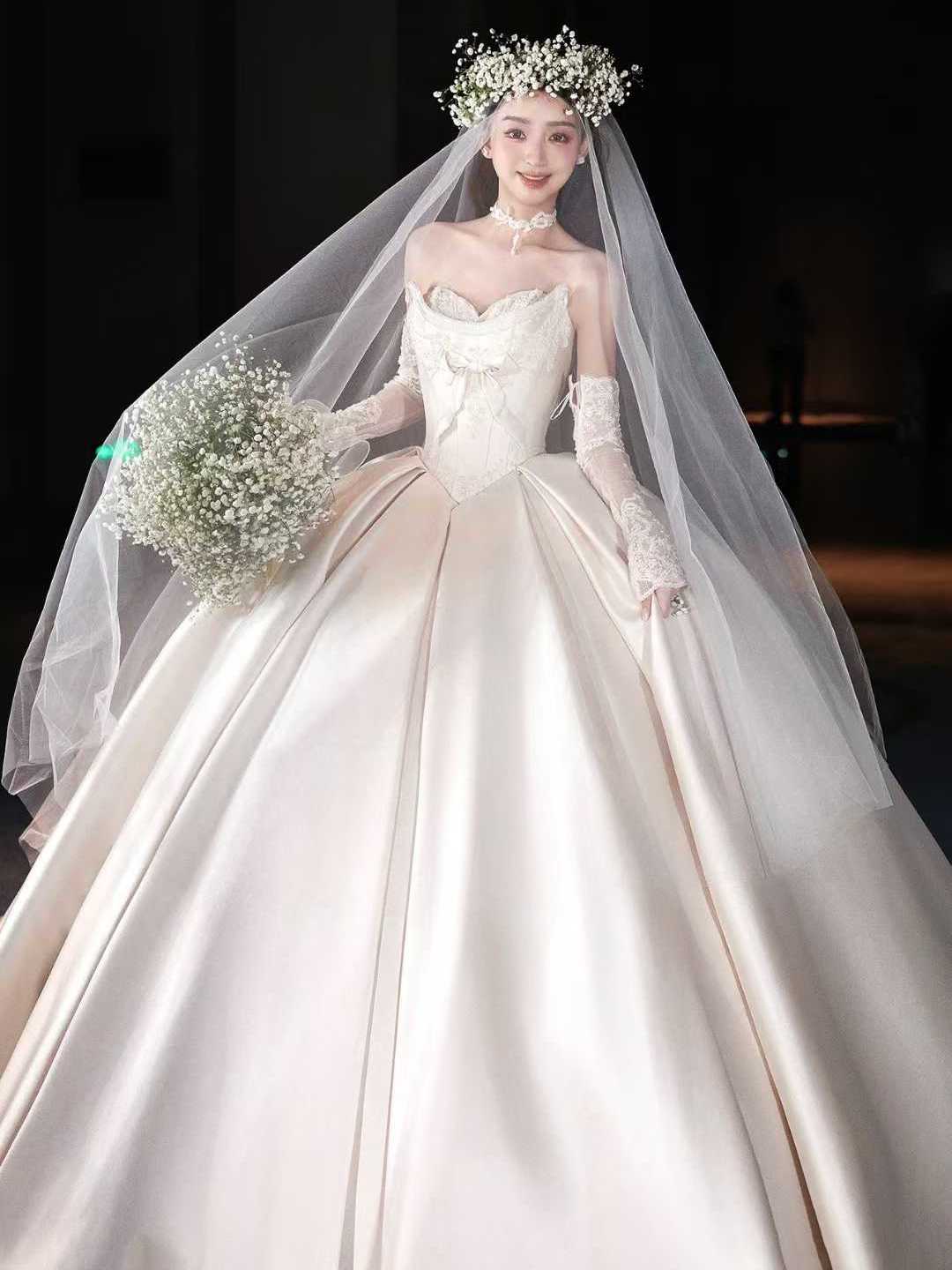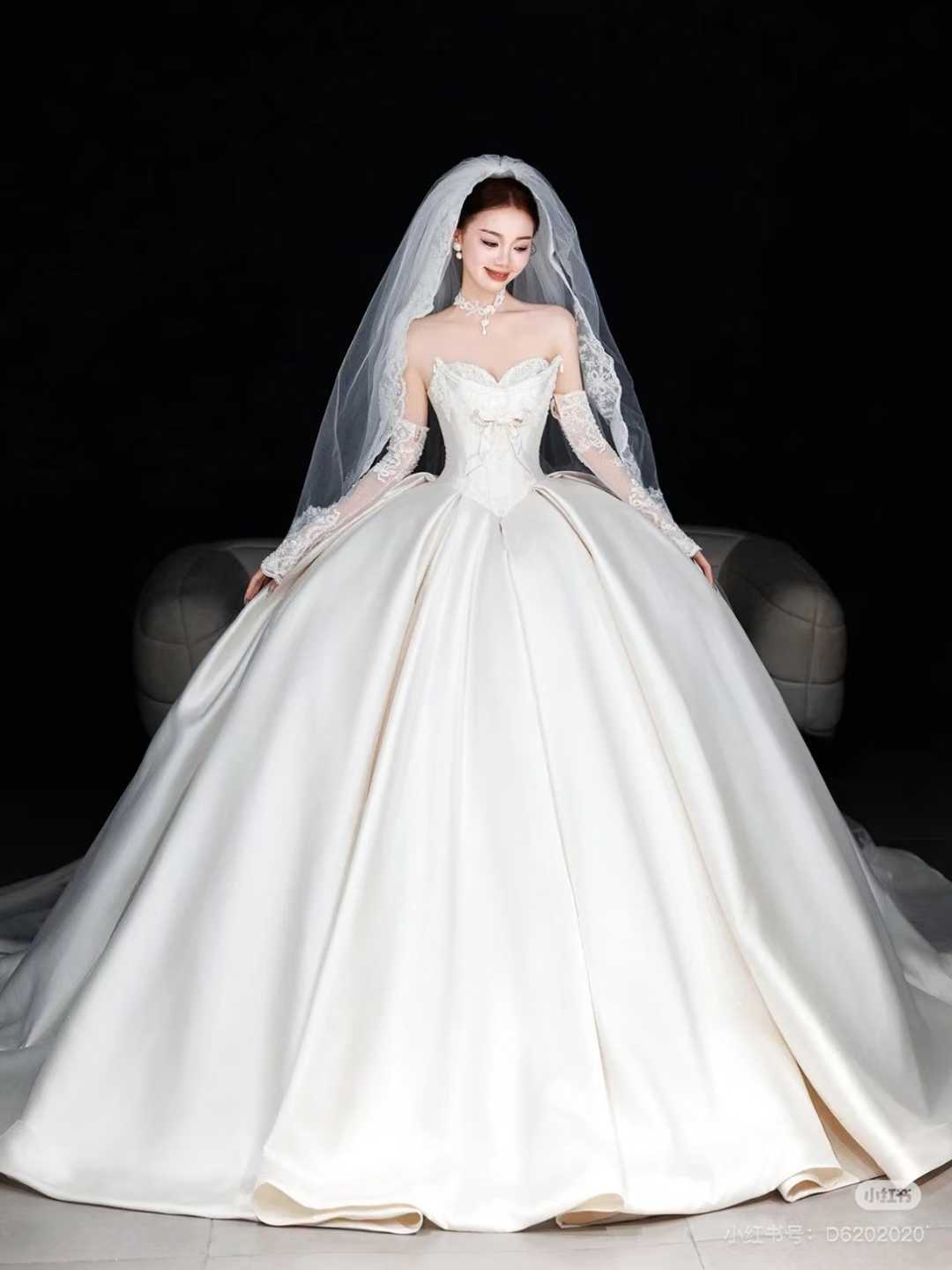 抹胸白纱配蕾丝袖,尽显优雅