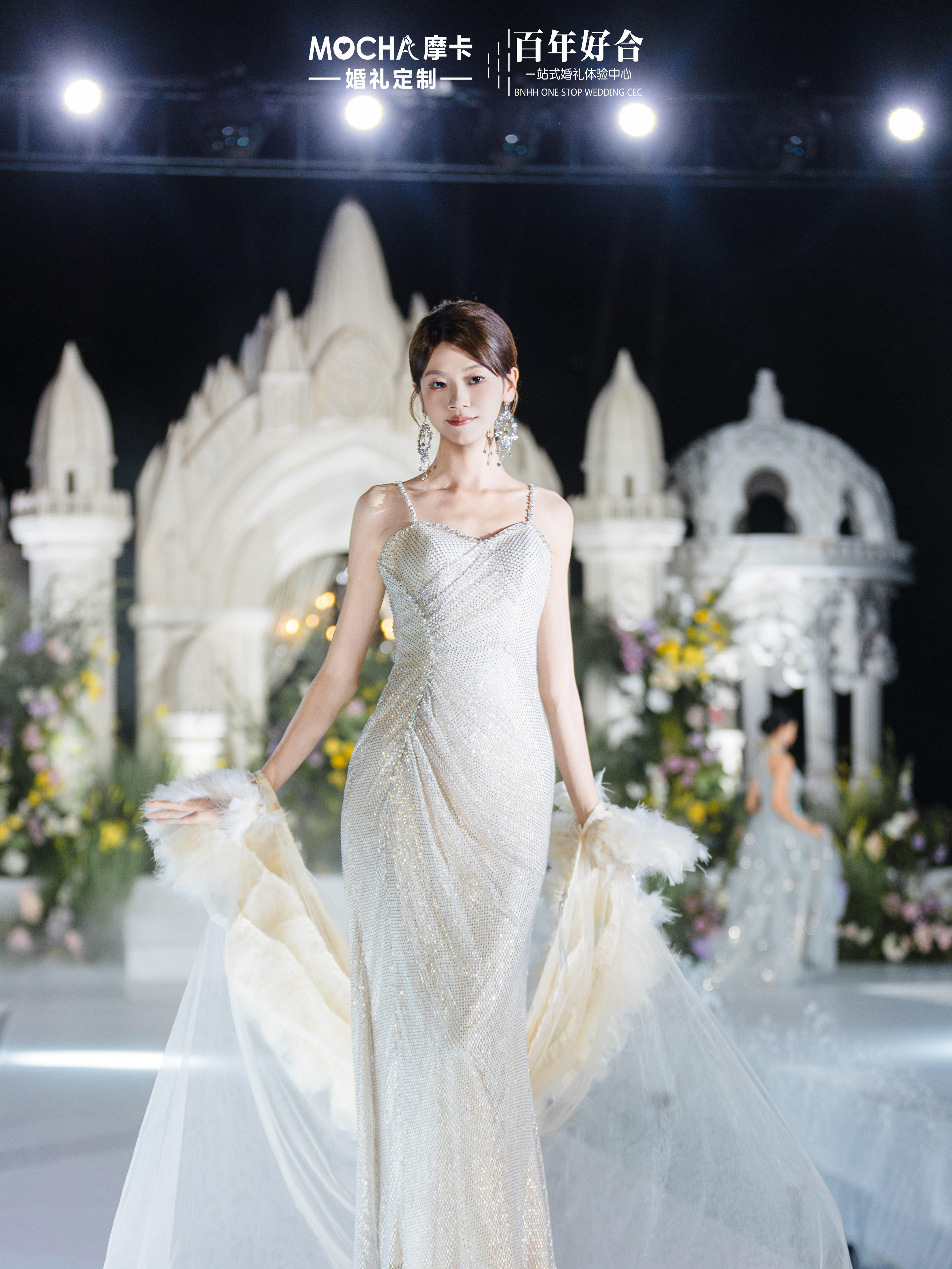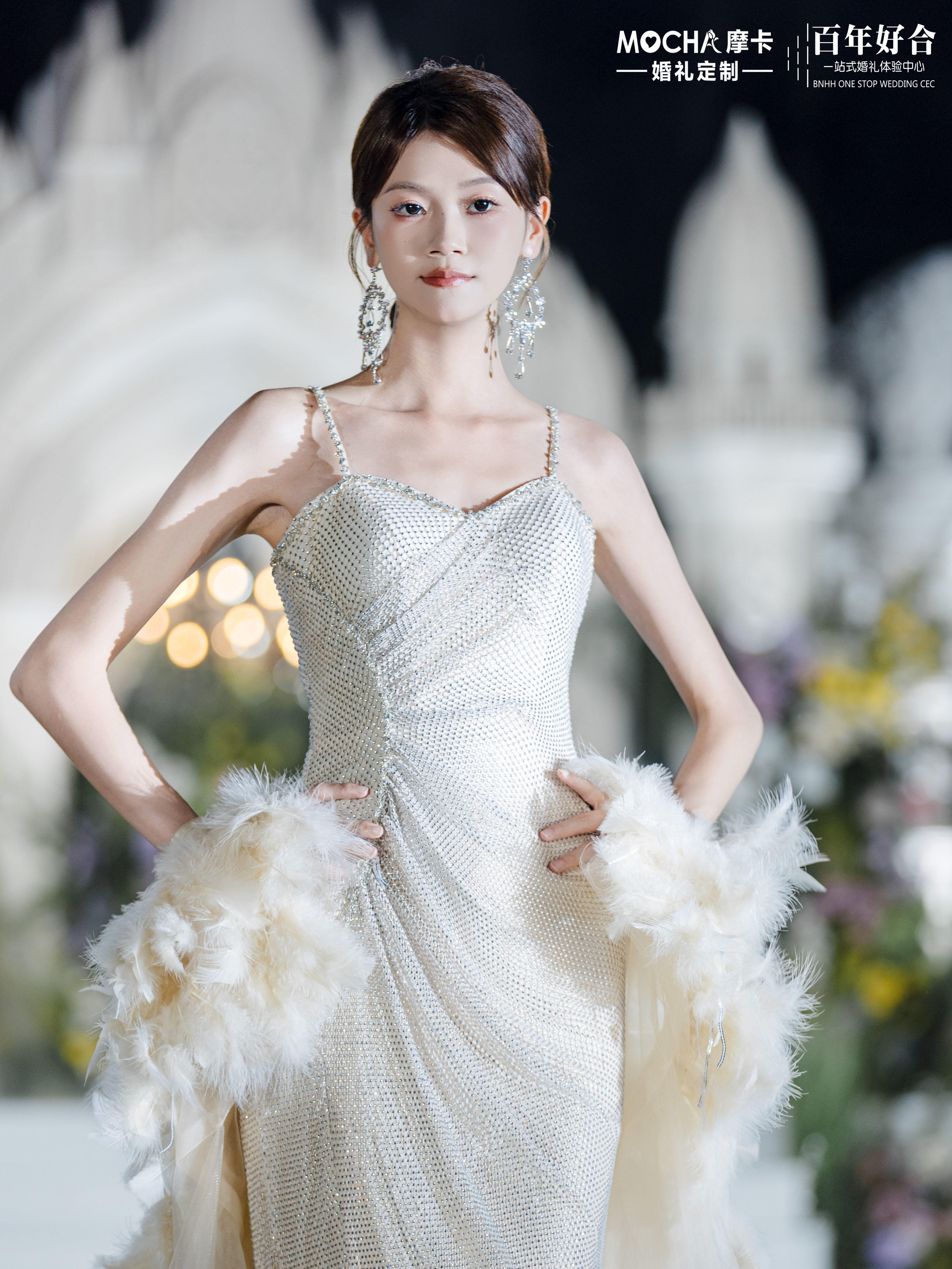 星钻羽衣 吊带心形领闪钻鱼尾礼服