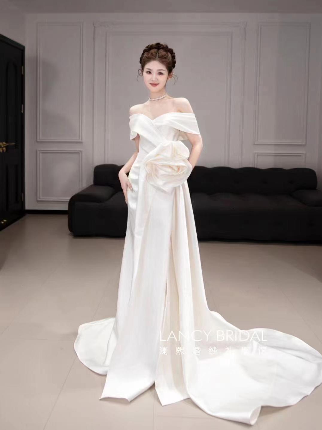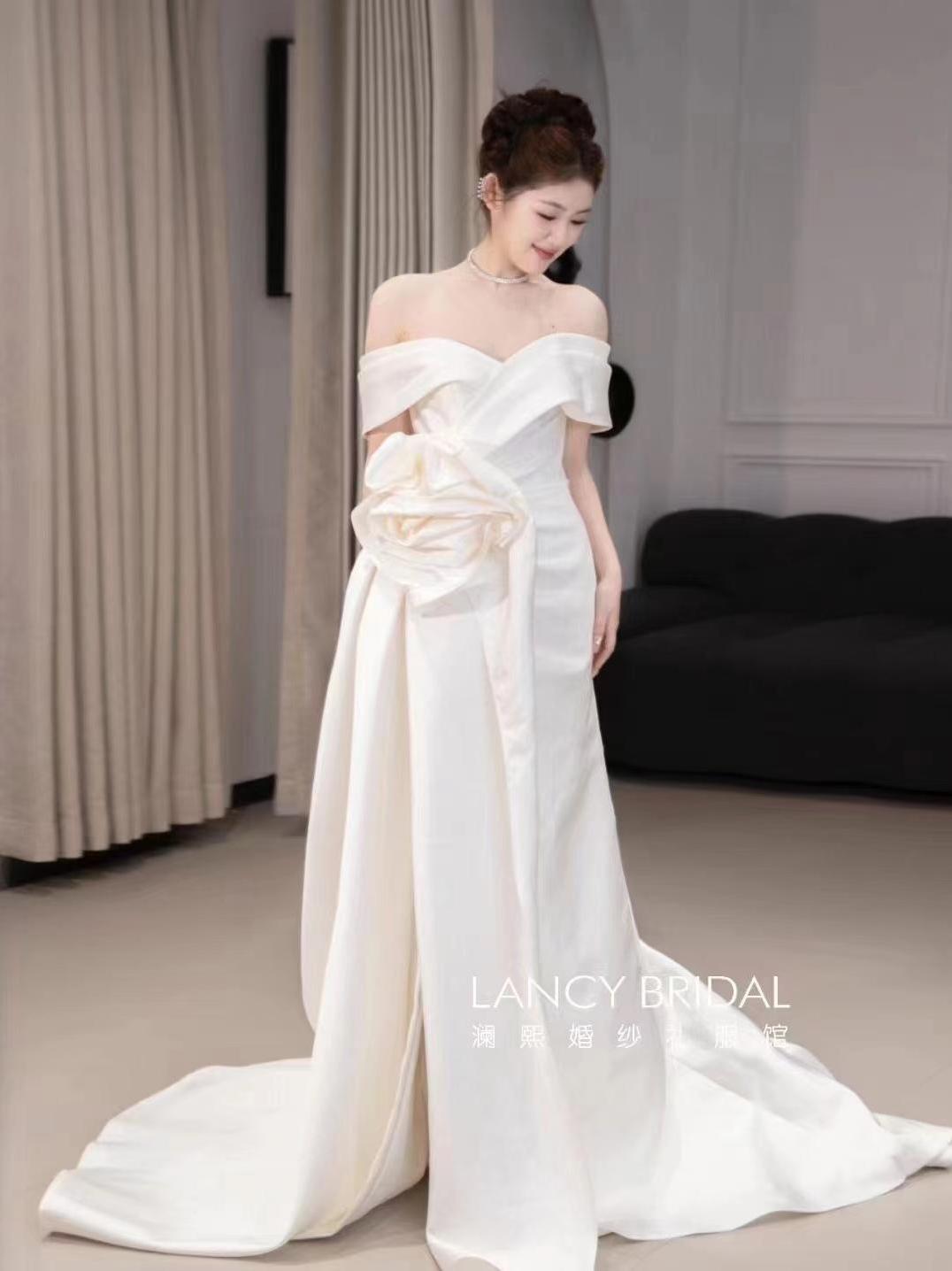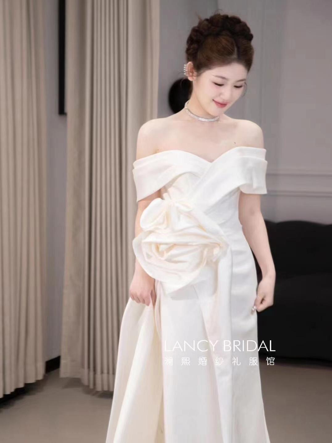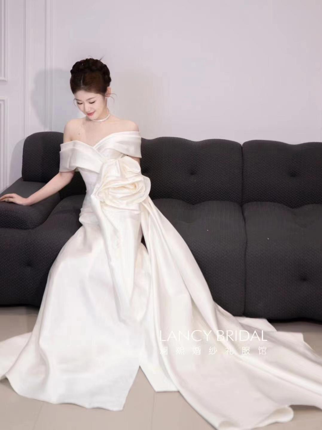 山茶花 缎面鱼尾出门迎宾纱