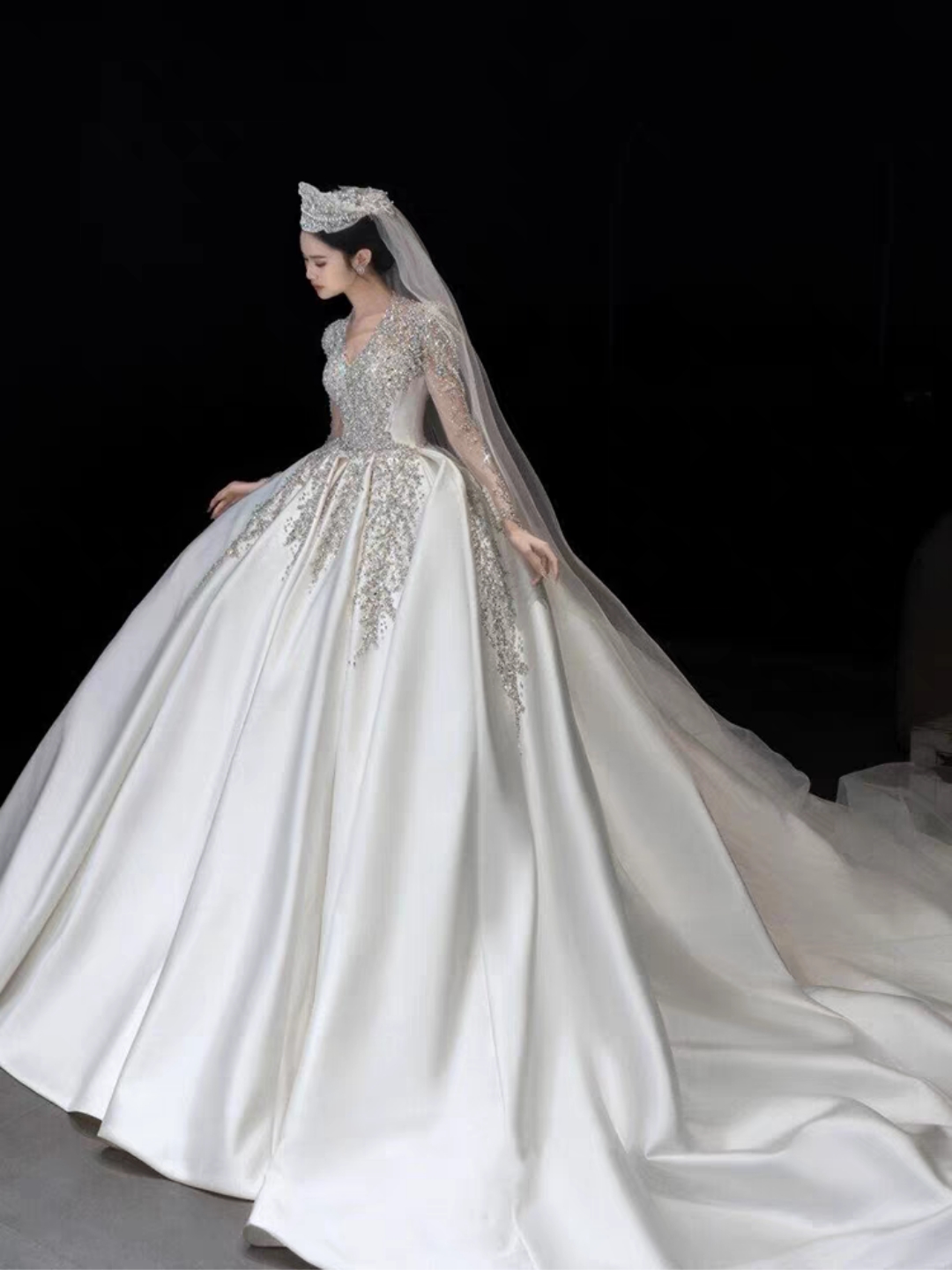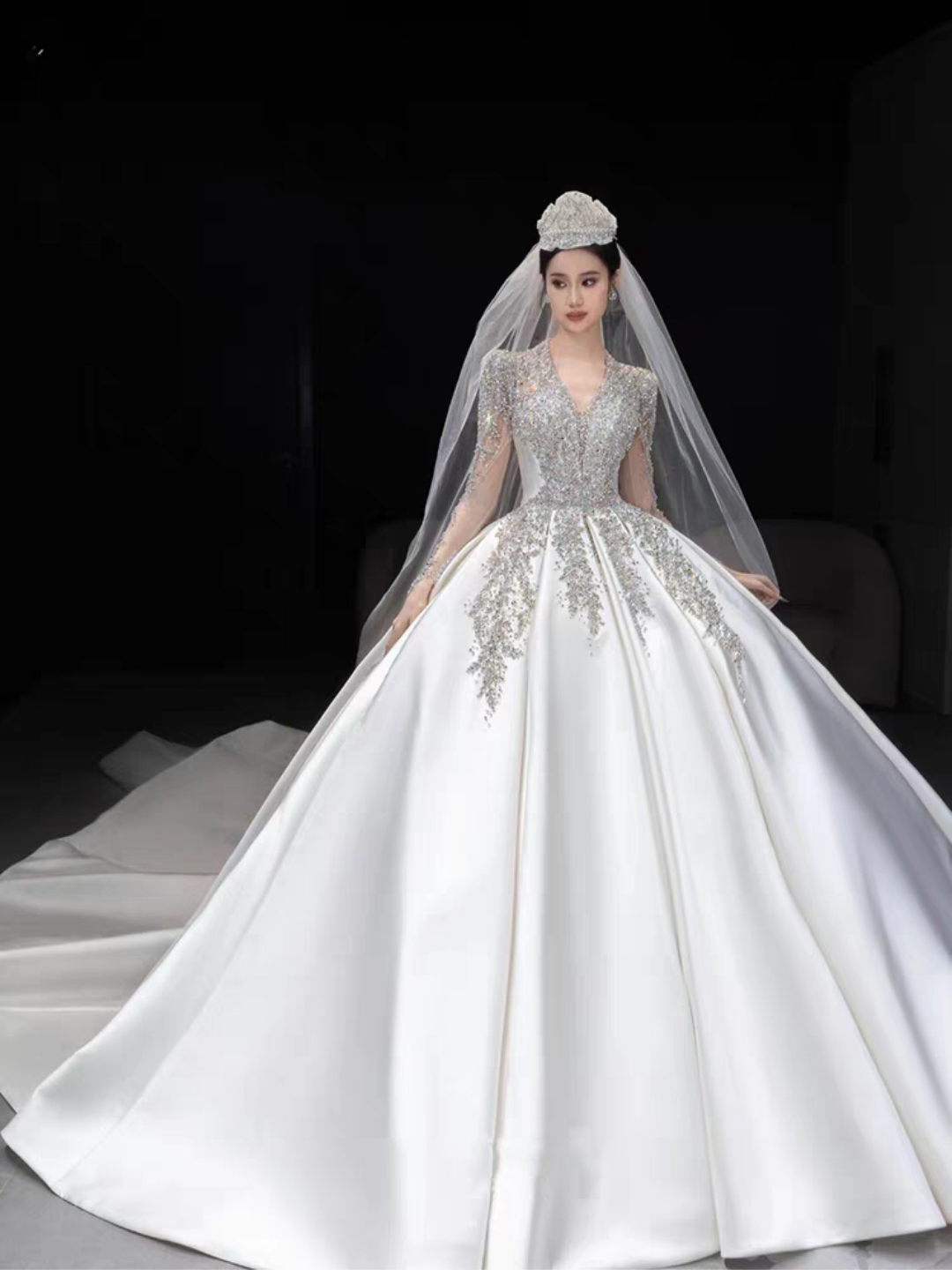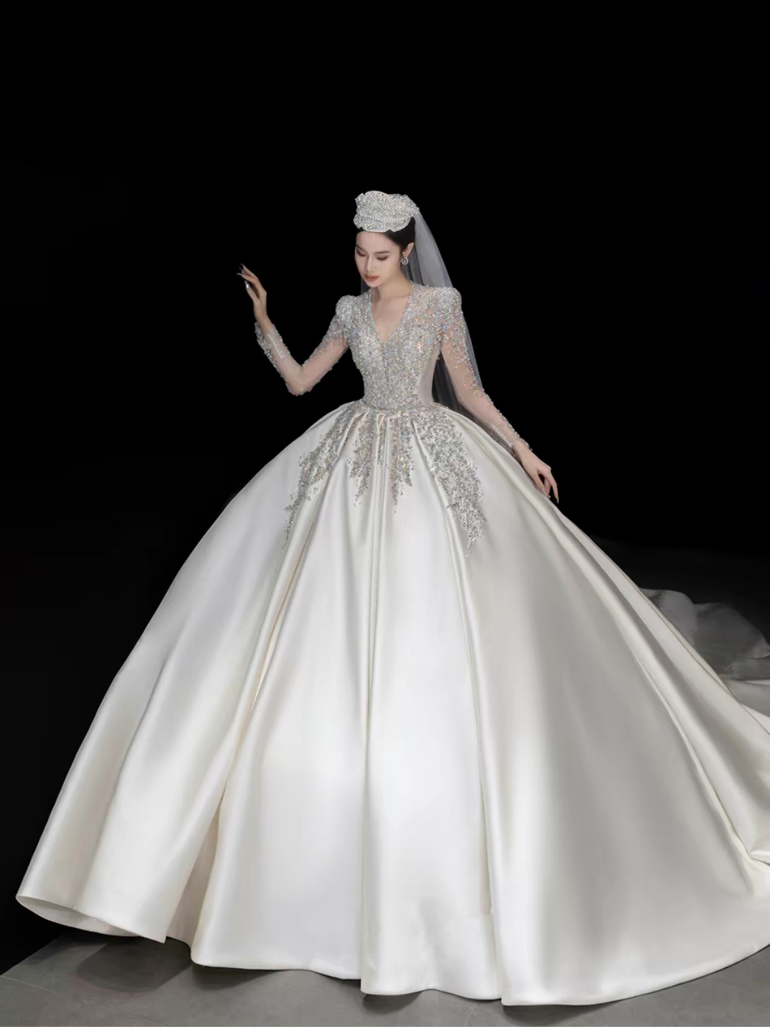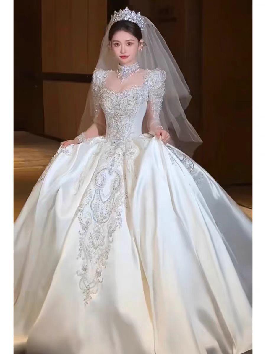 (爱都)重工缎面长袖主纱
