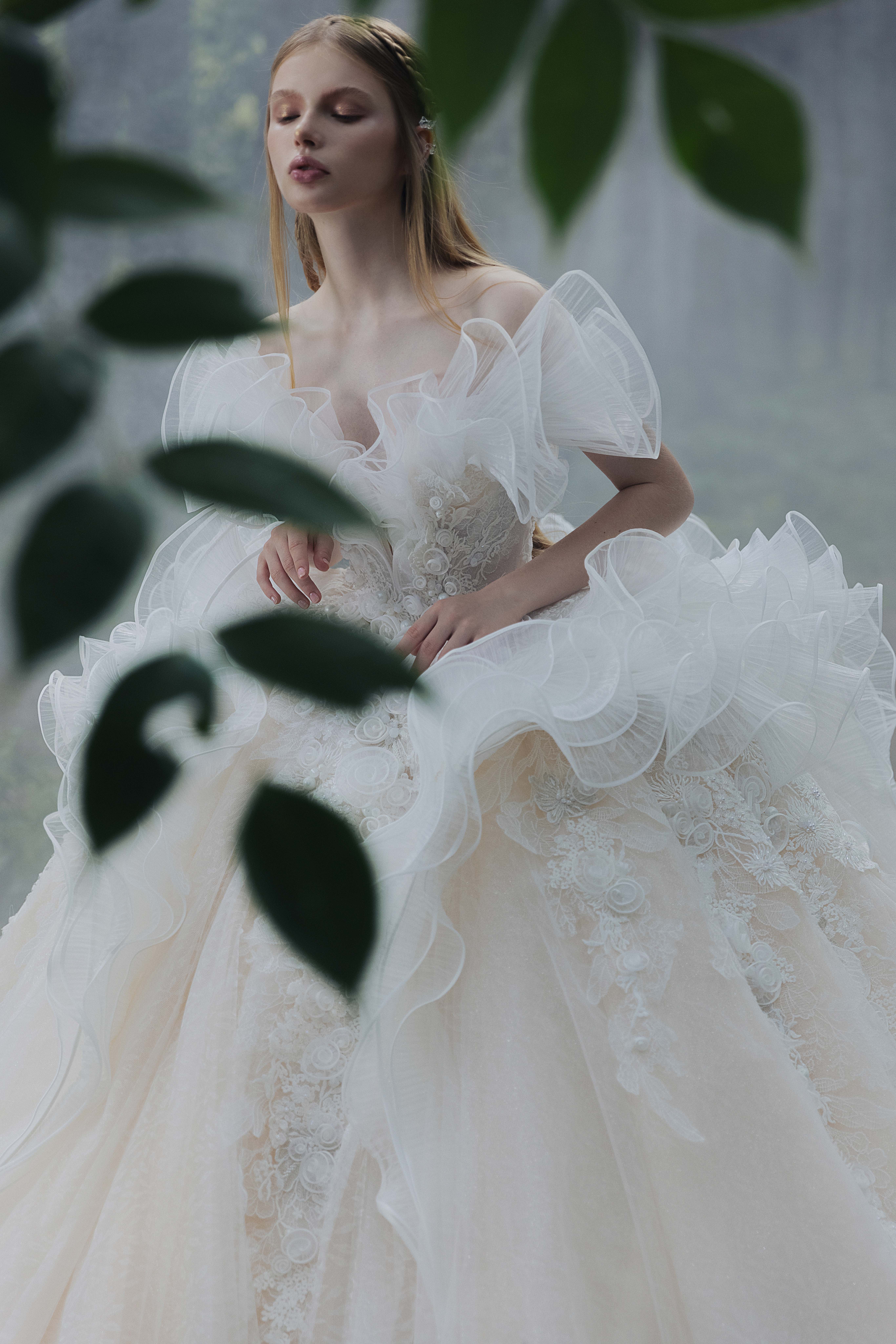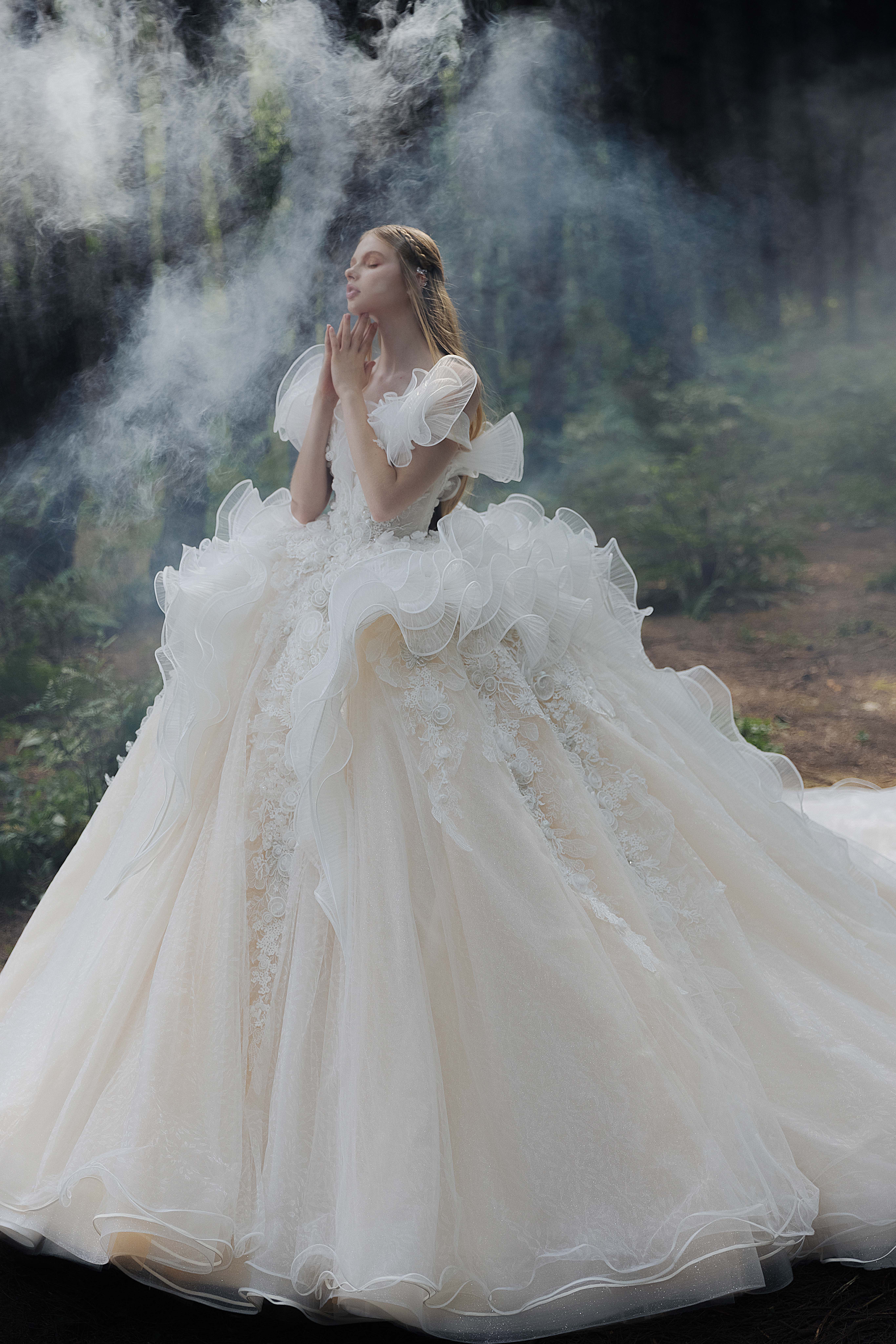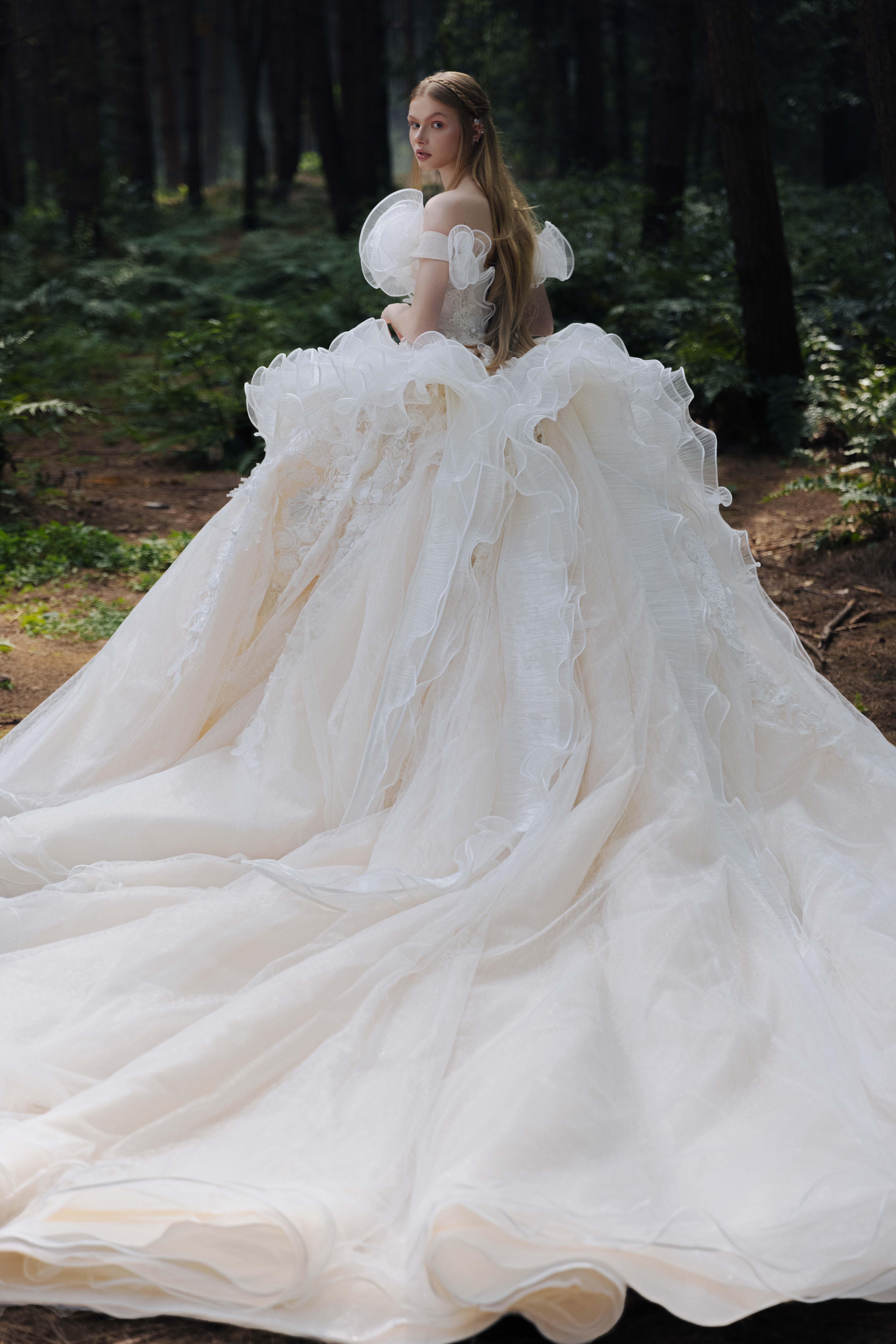 银白调宫廷风婚纱