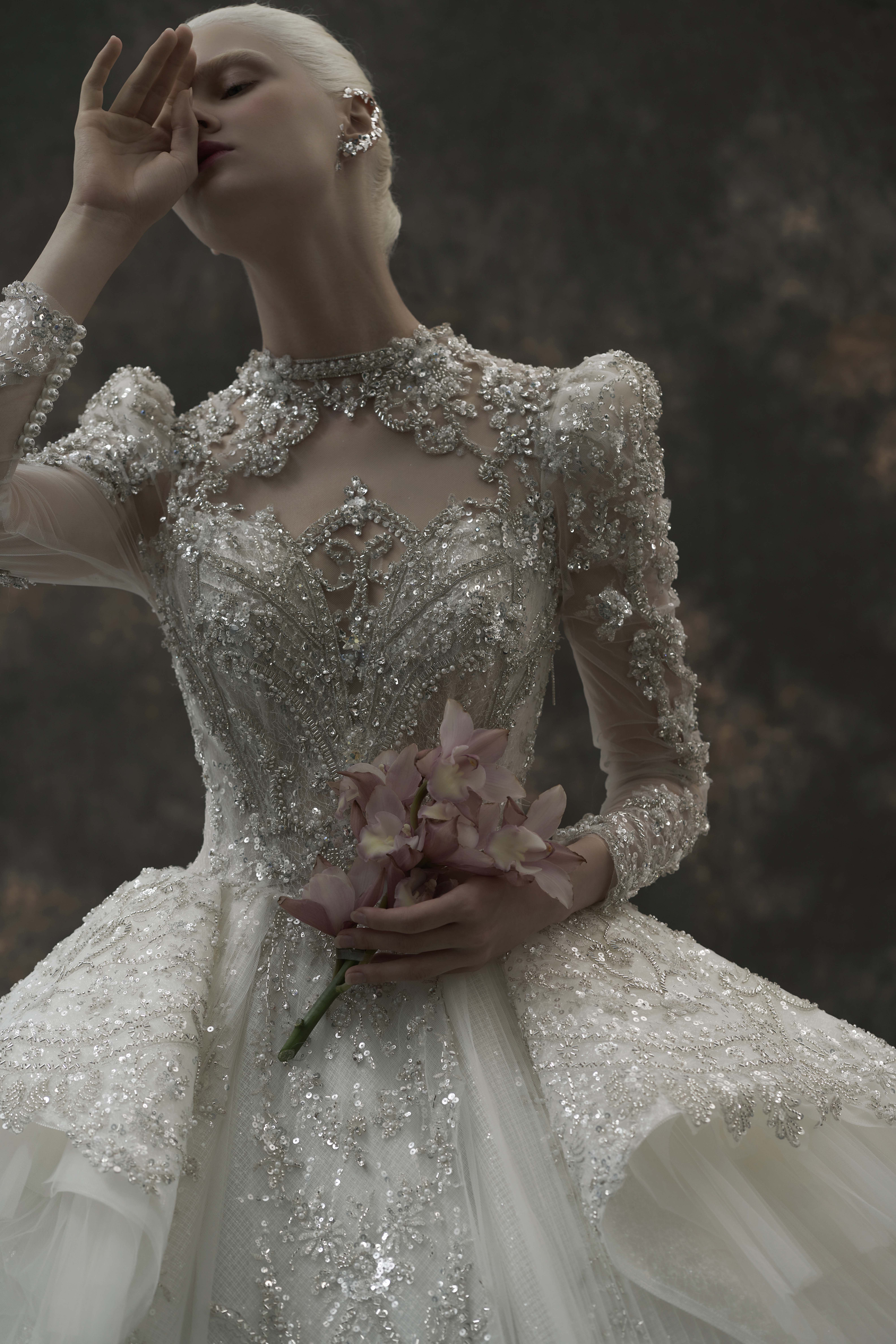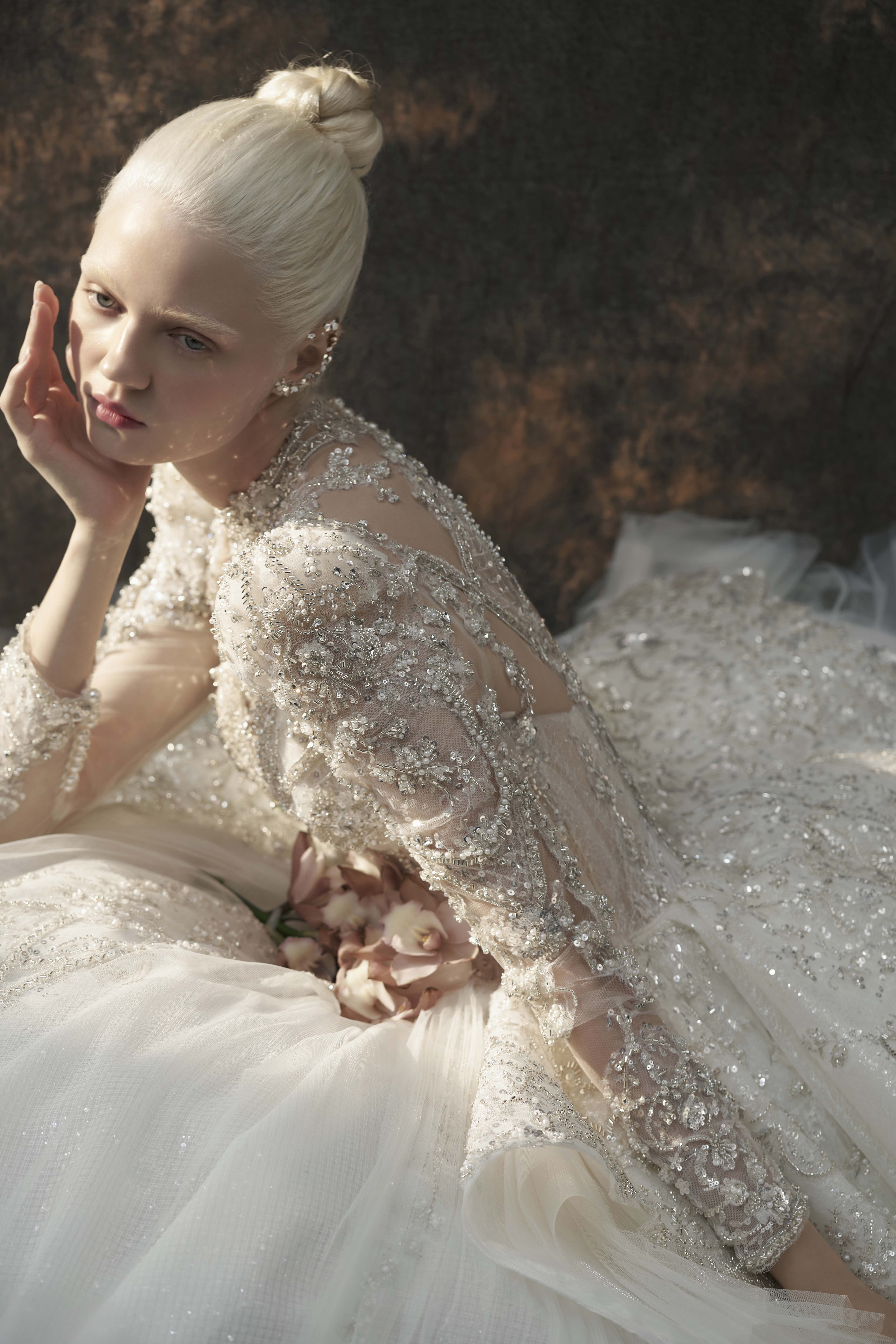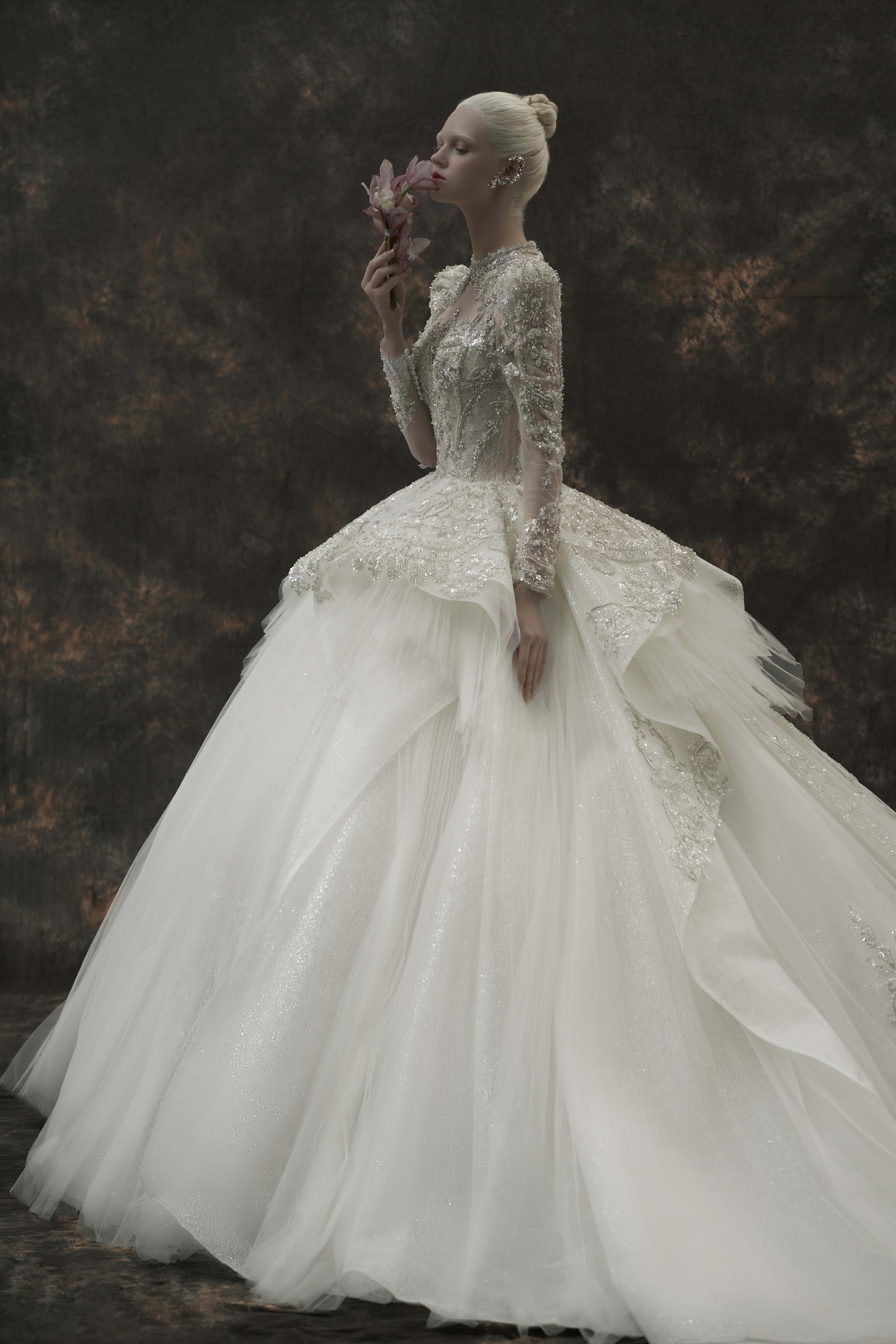 银白调宫廷风婚纱