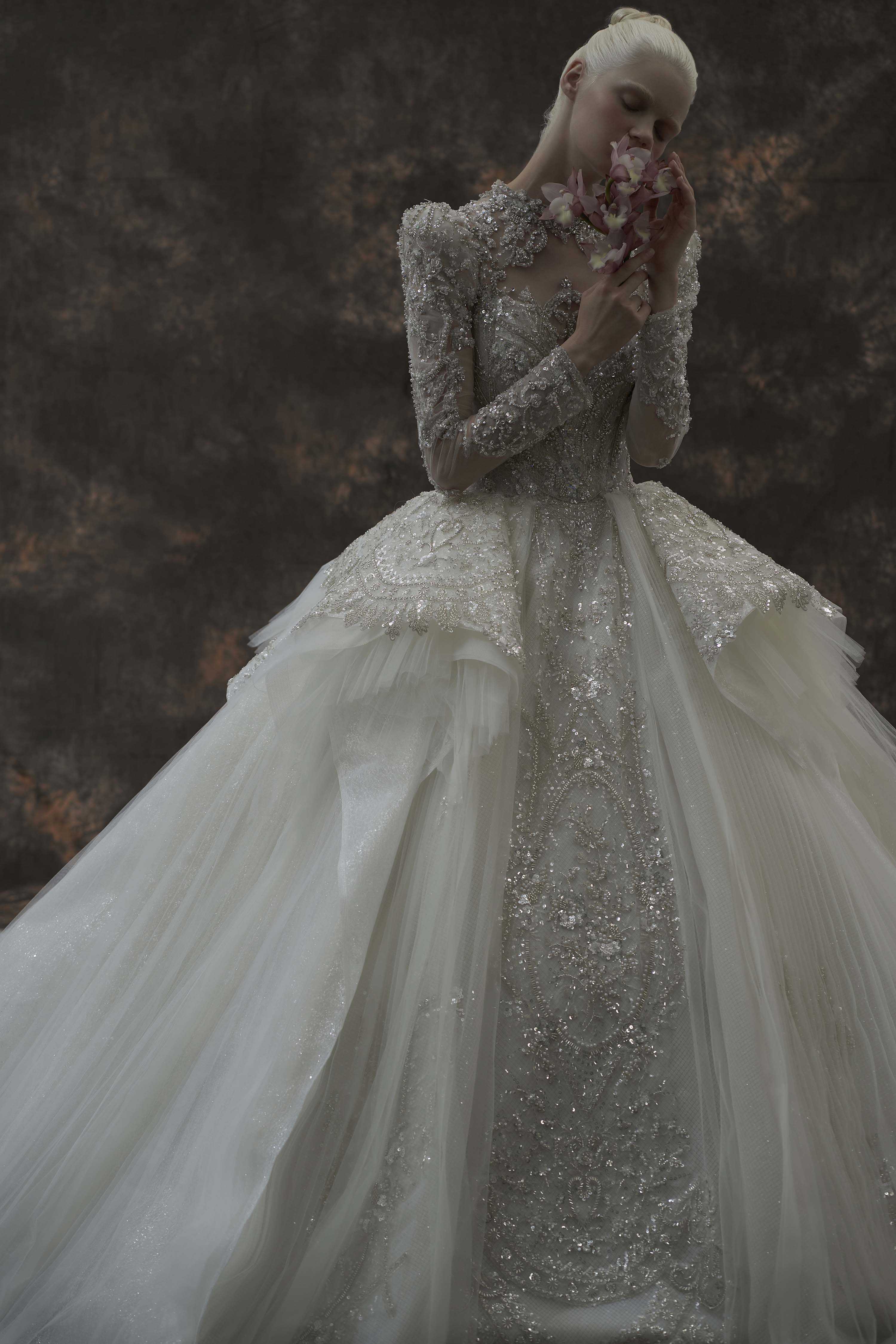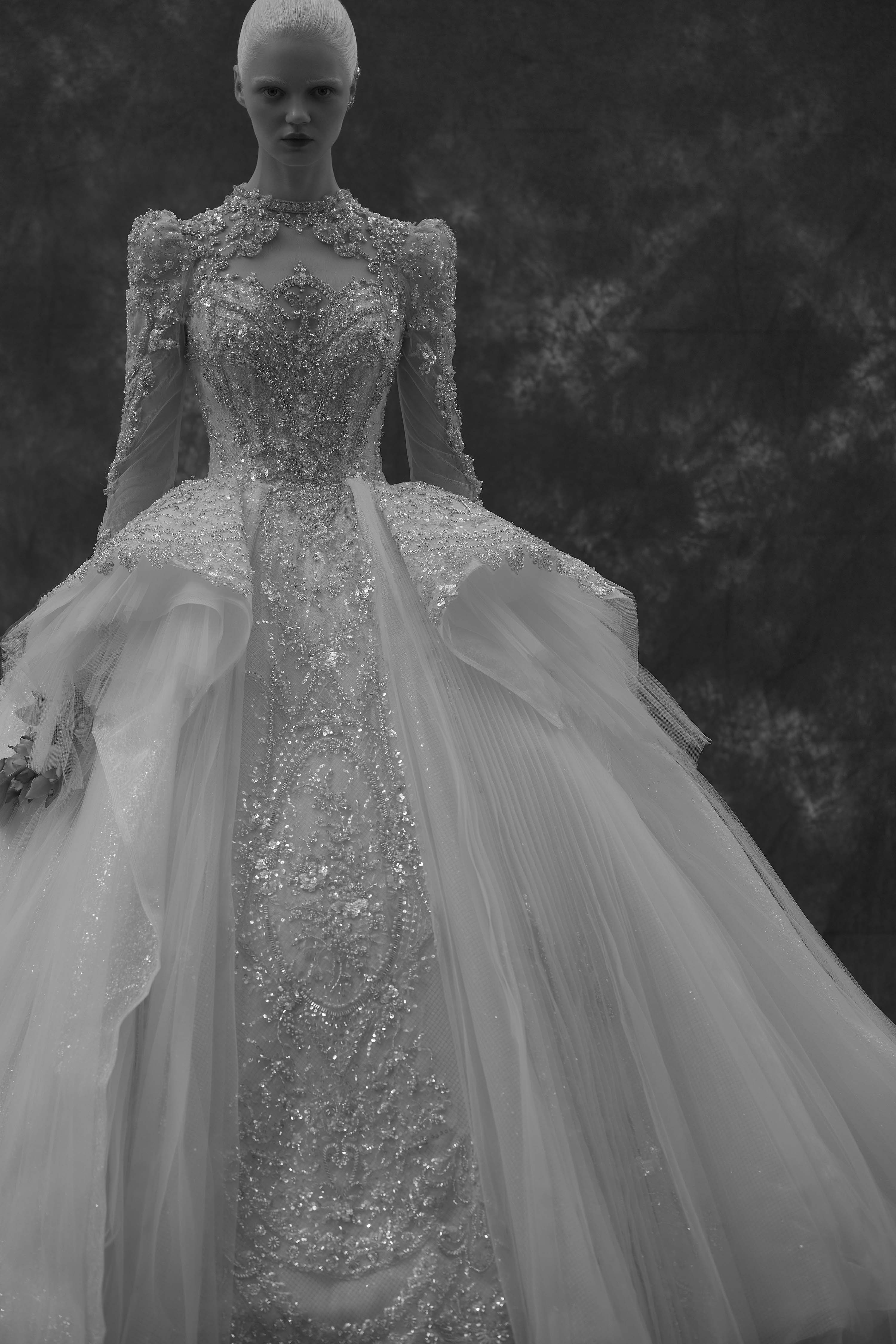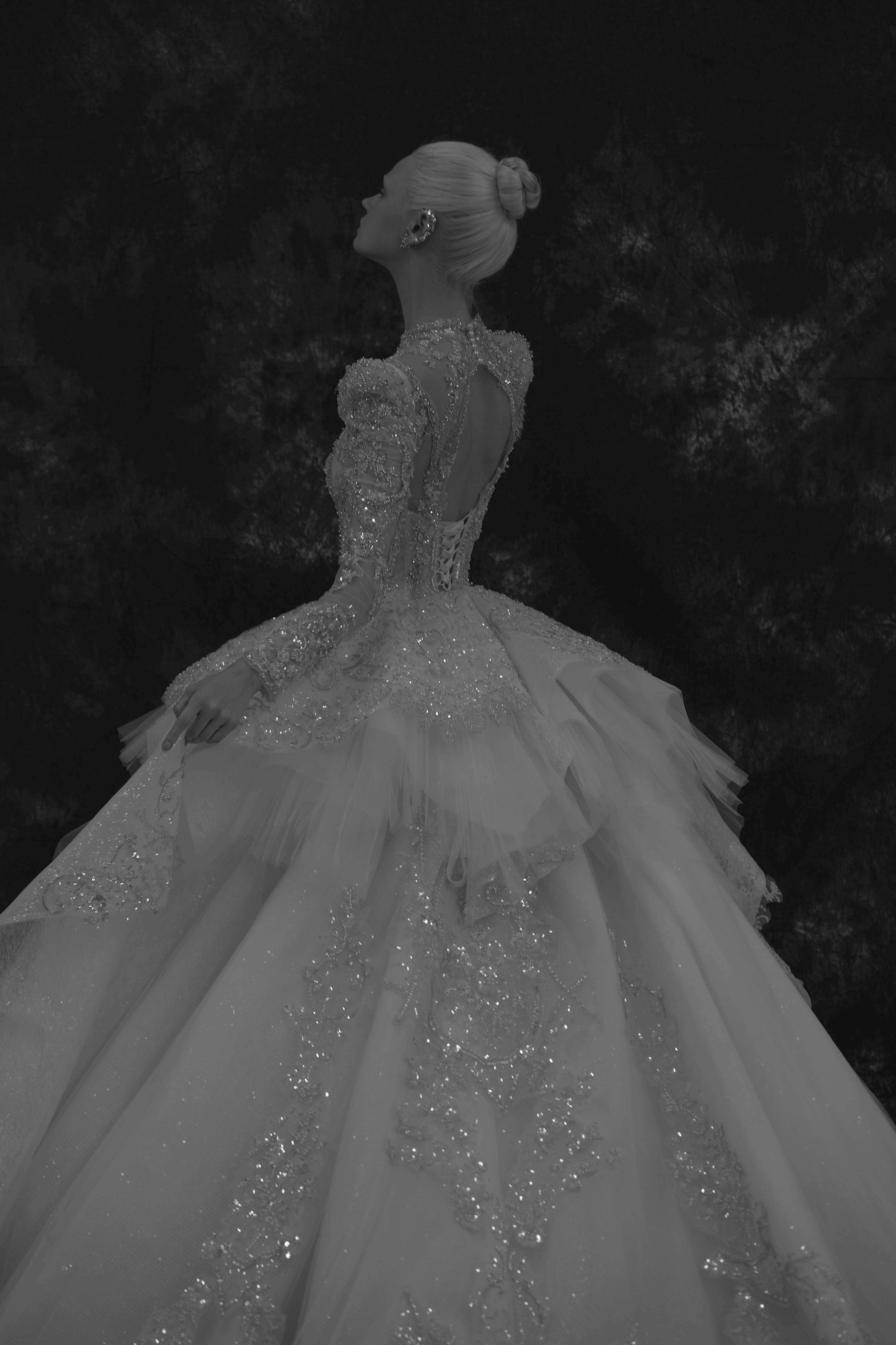 银白调宫廷风婚纱