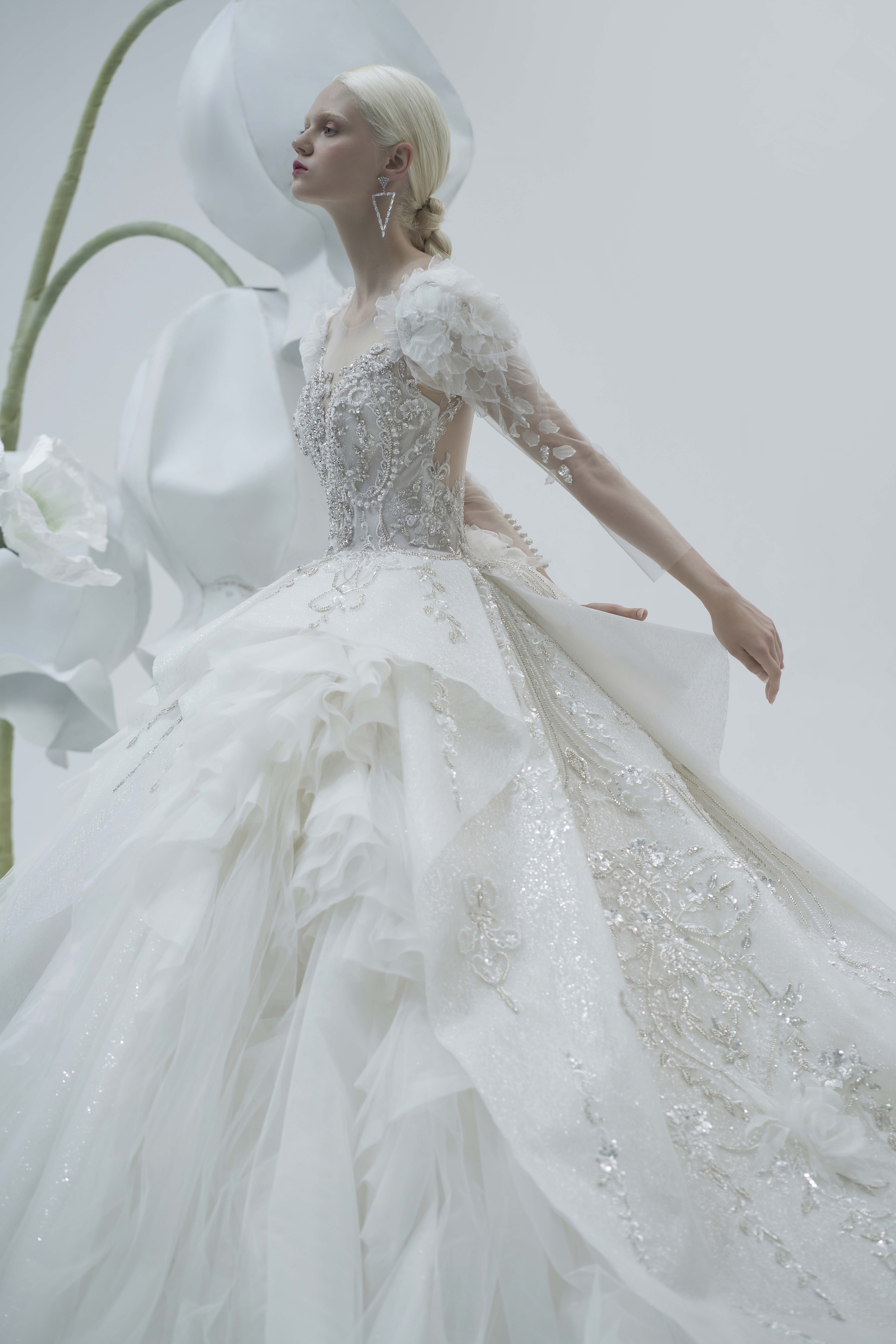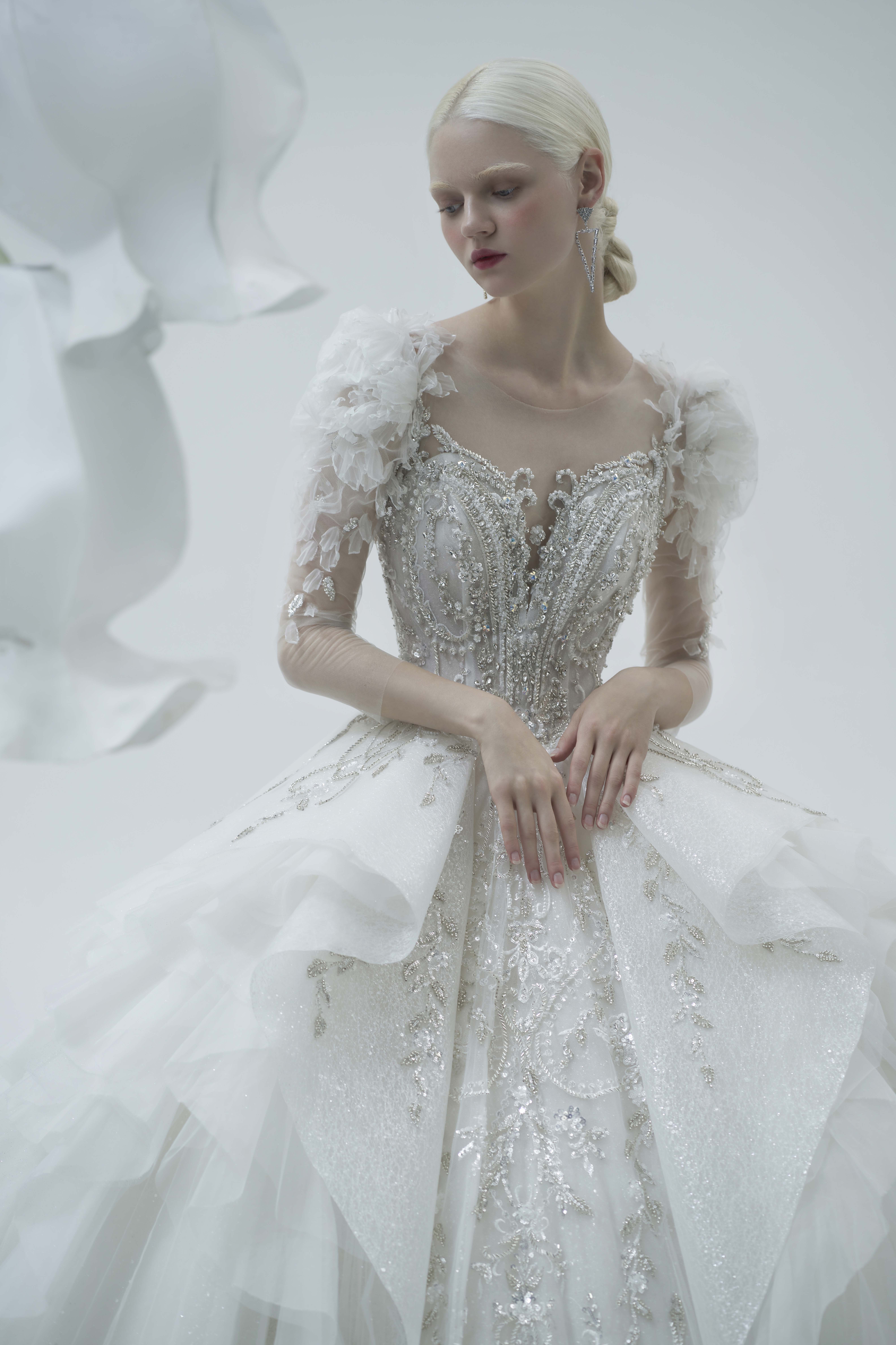 银白调宫廷风婚纱