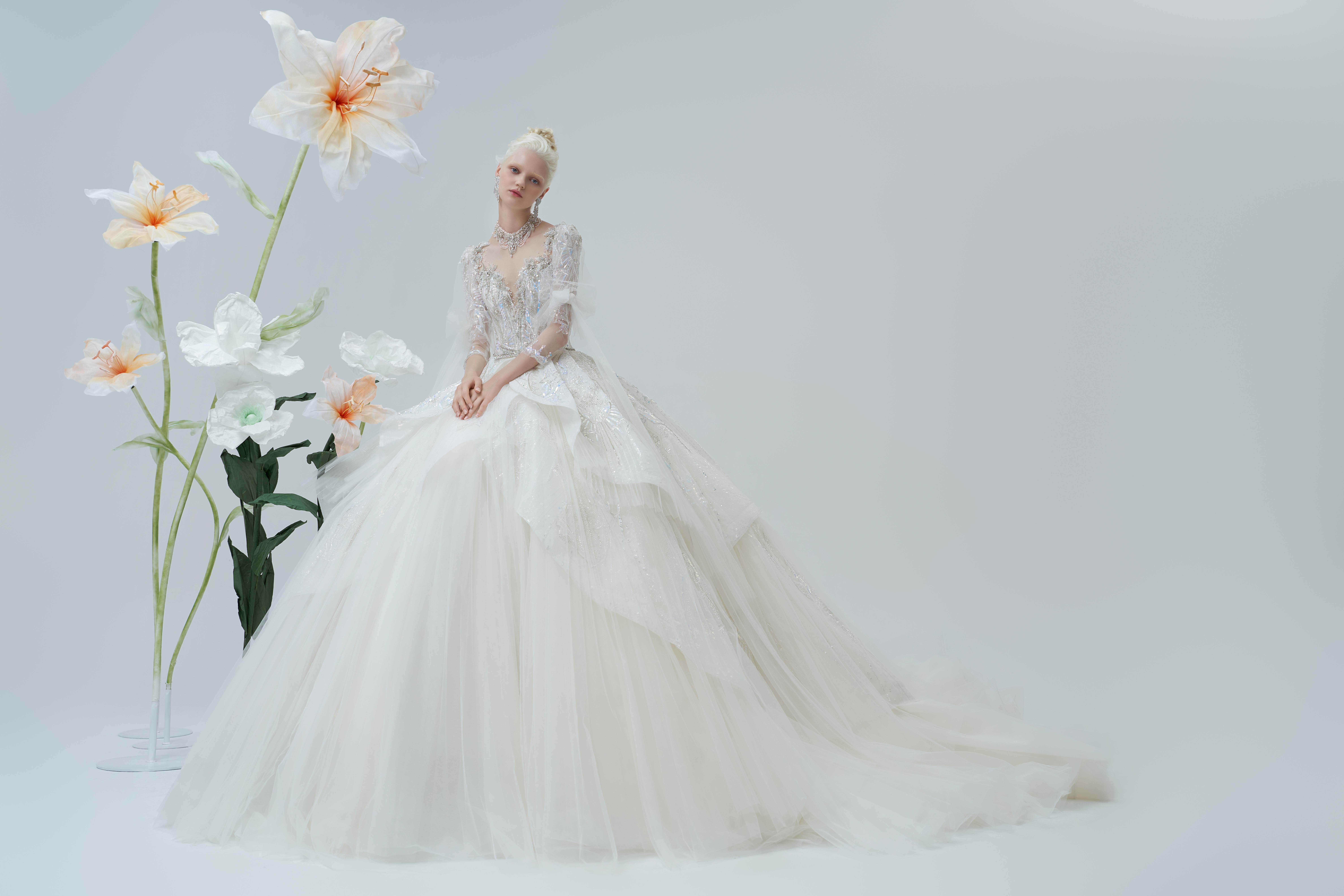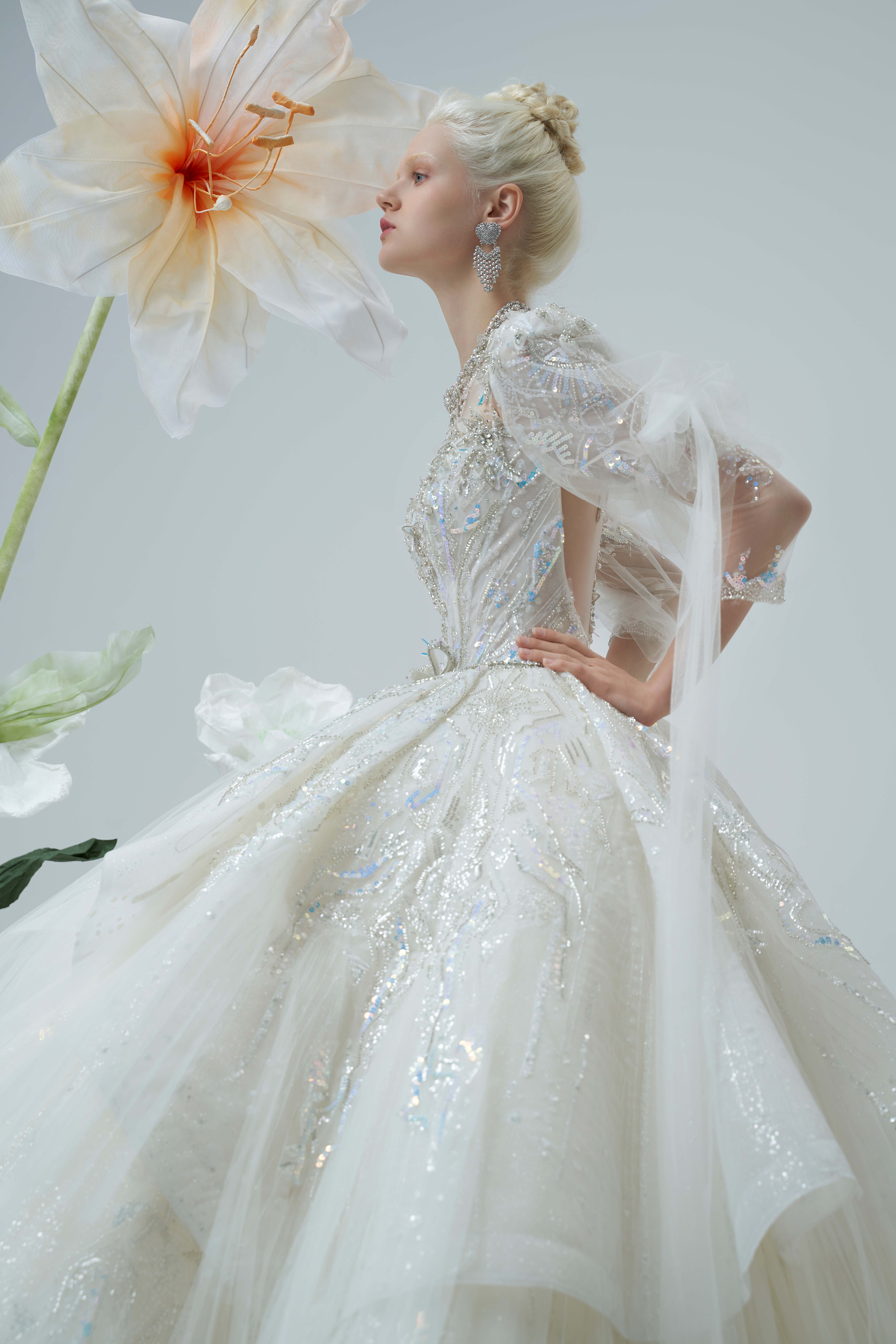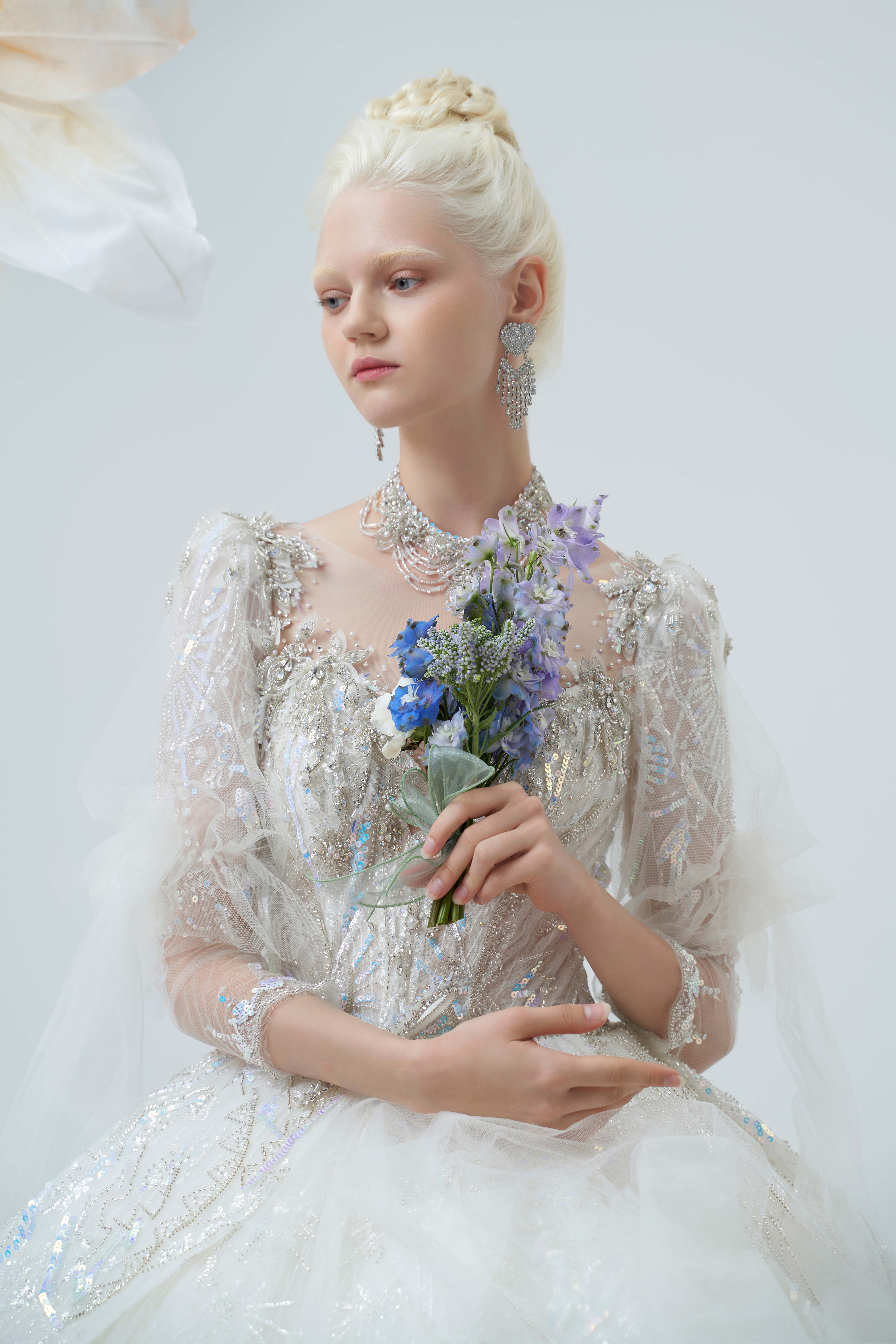 银白调宫廷风婚纱