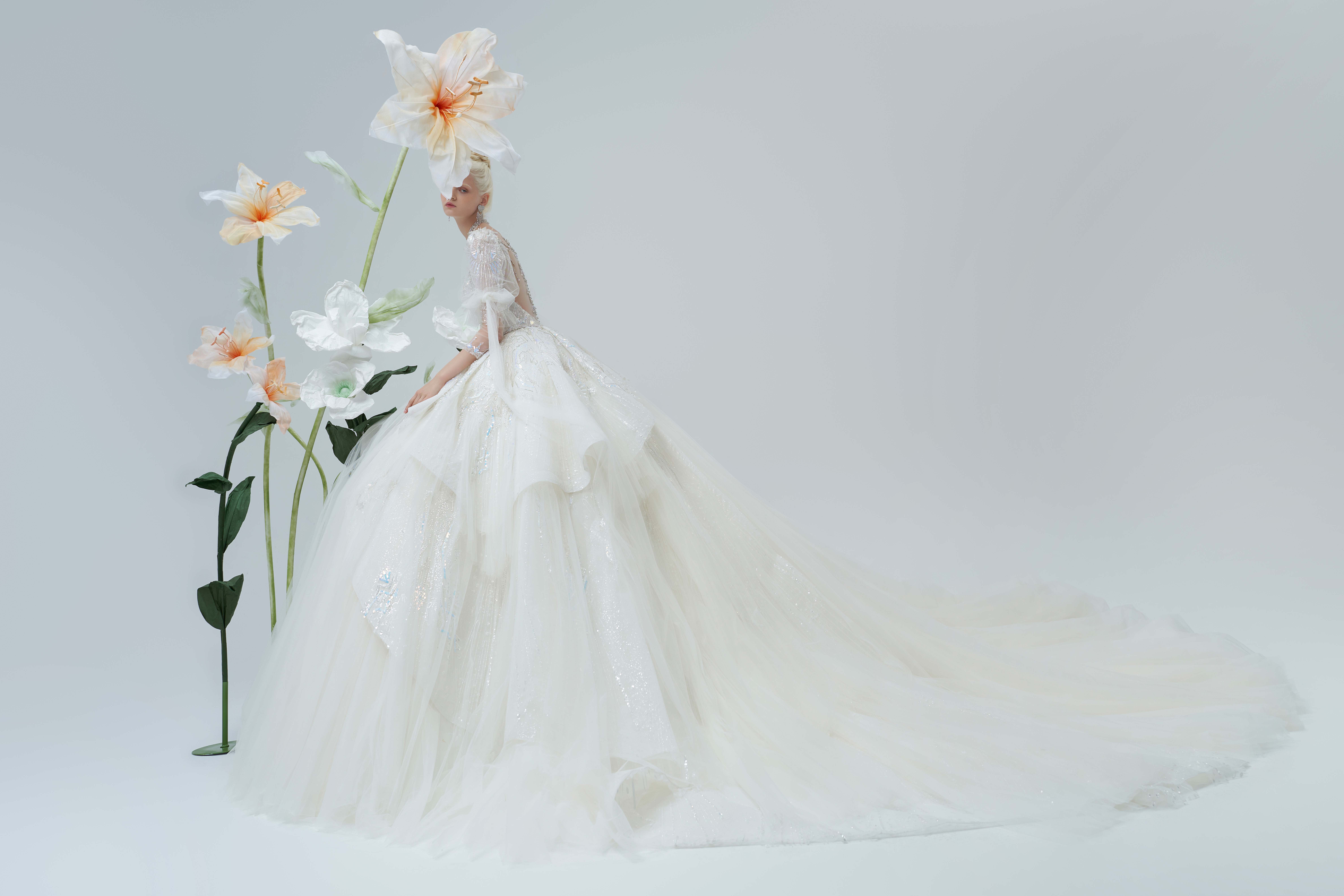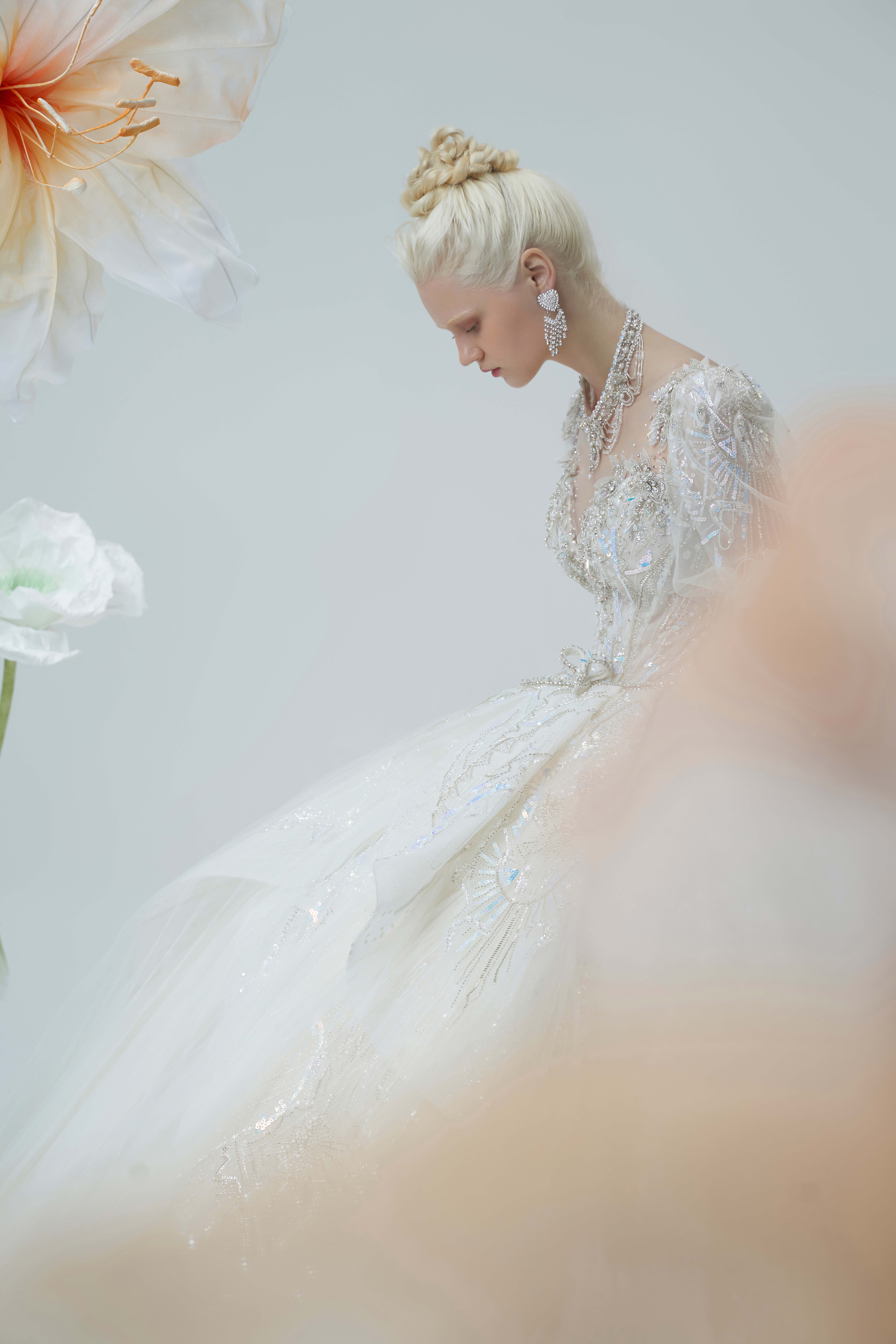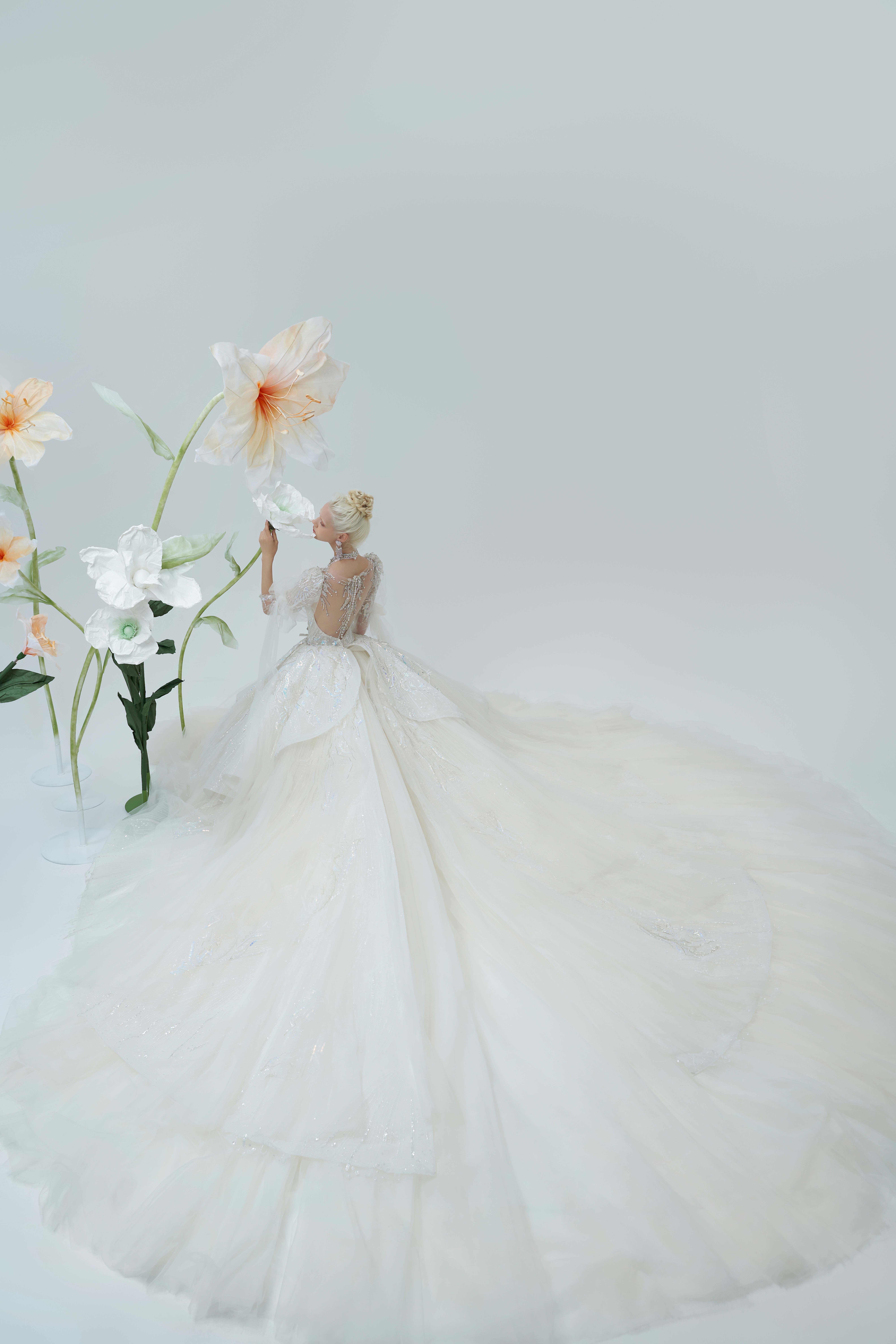 银白调宫廷风婚纱