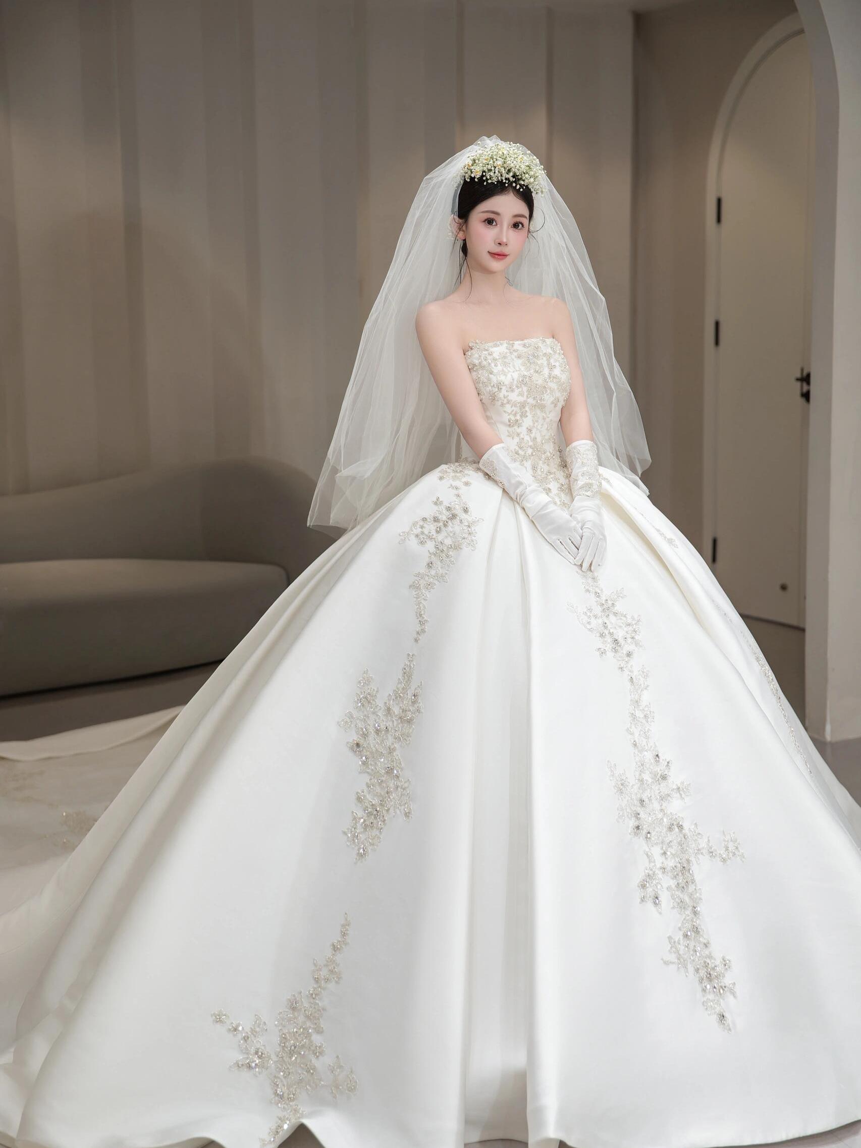 【麦芽糖】钻石缎面婚纱 璀璨夺目