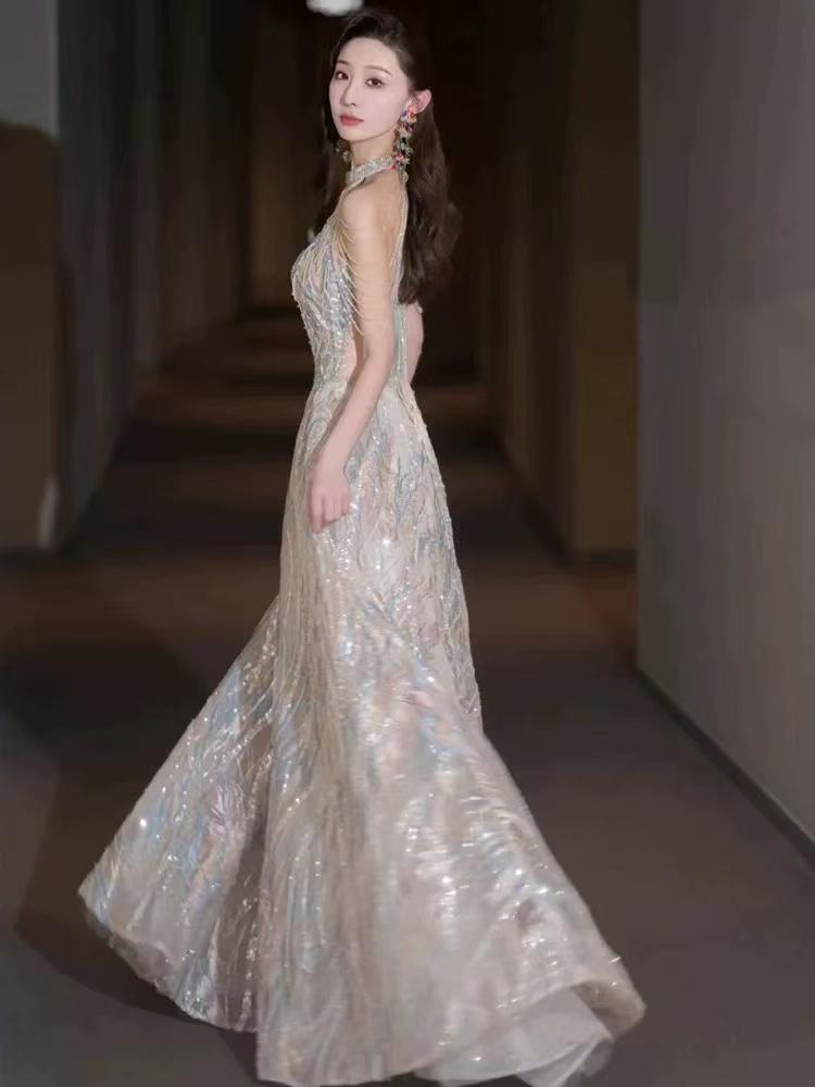 极光幻纱挂脖长裙